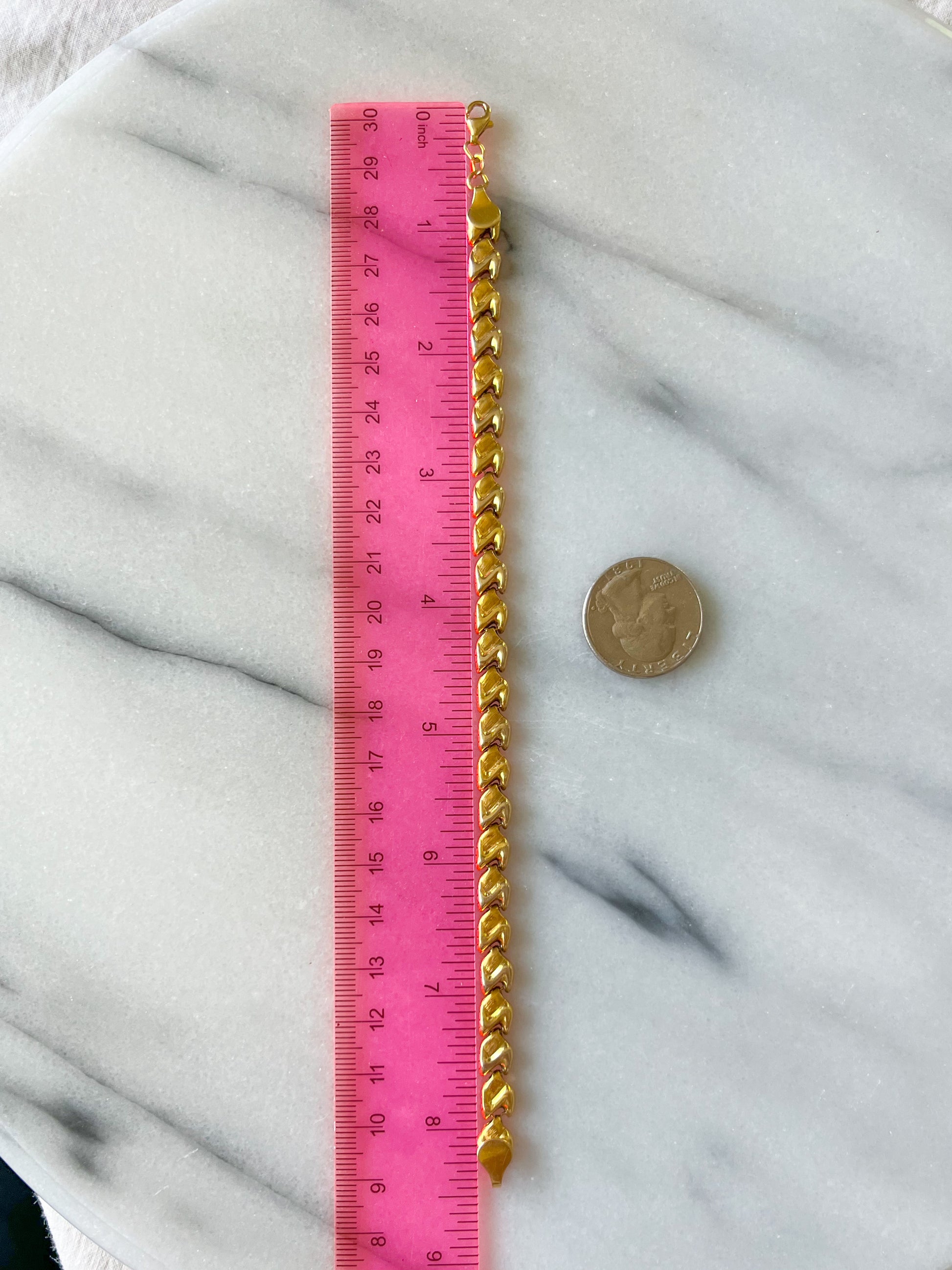 Beautiful, 14k yellow gold link bracelet. 8 1/2 inches long and weighs over 8 grams.