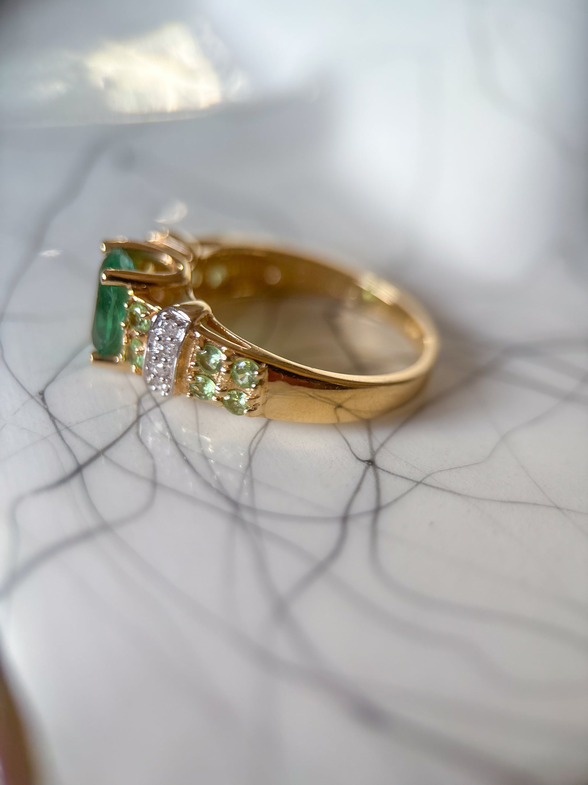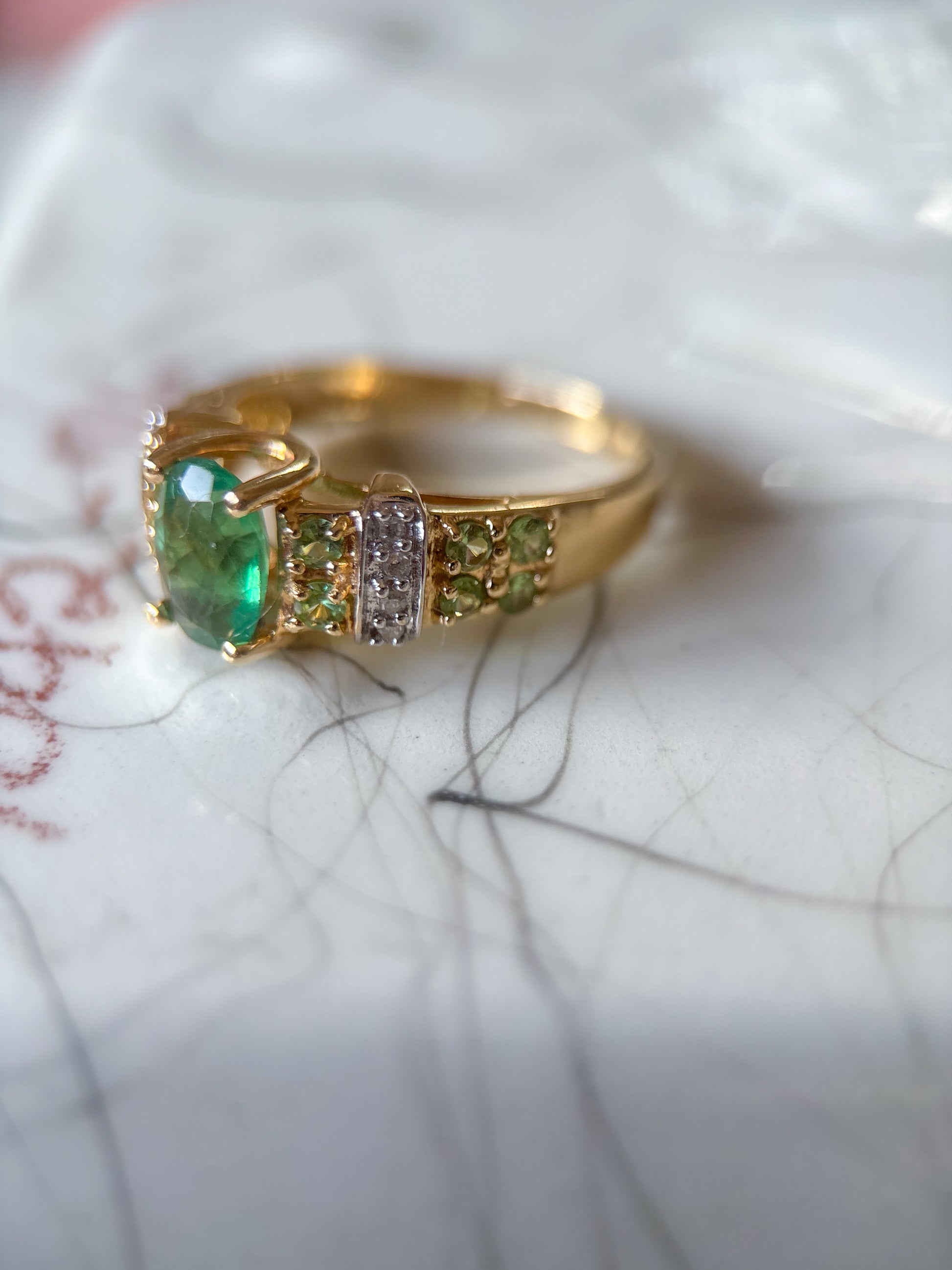 Vintage 14k Yellow Gold Green Stone and Natural Diamond Ring