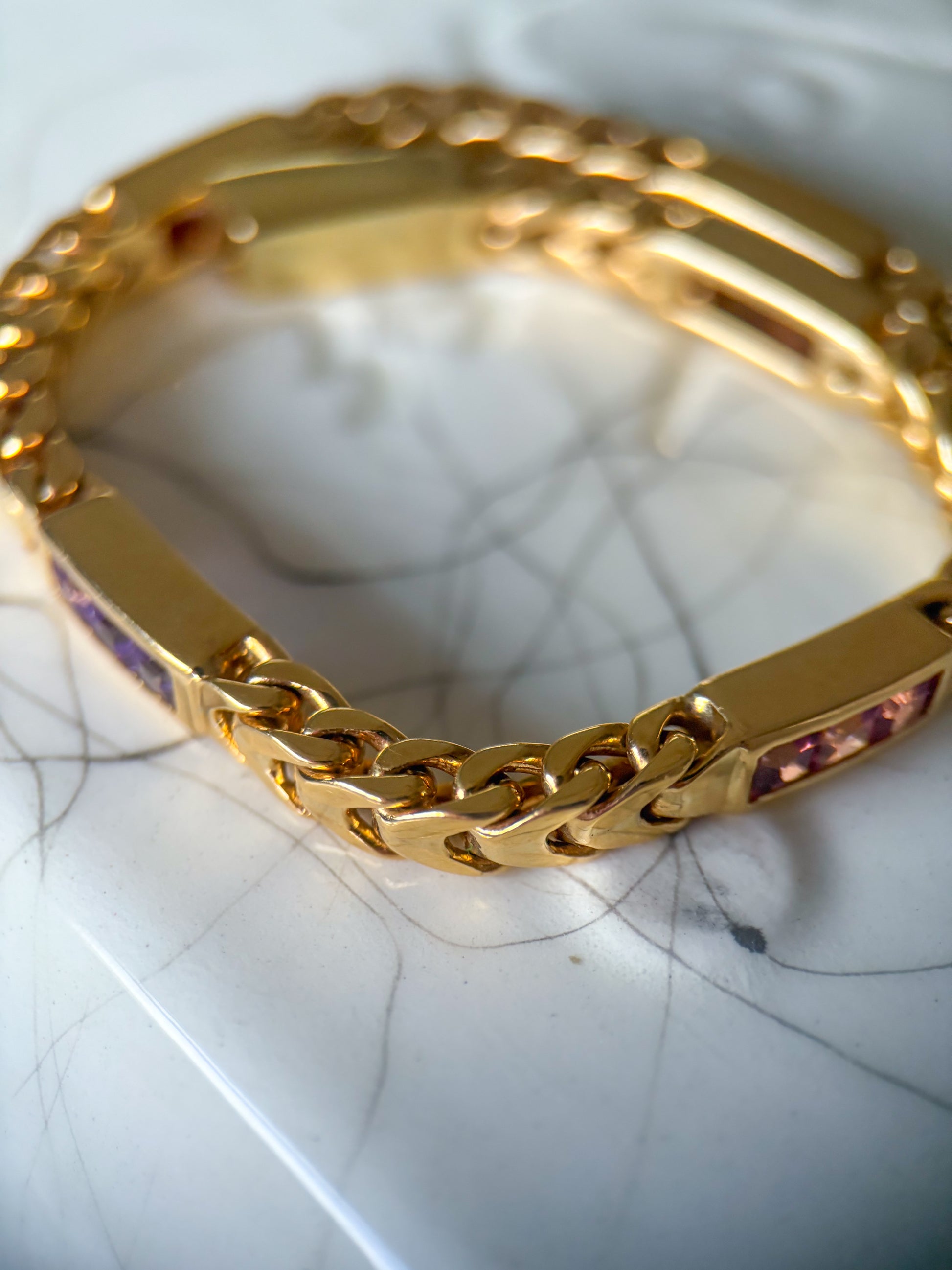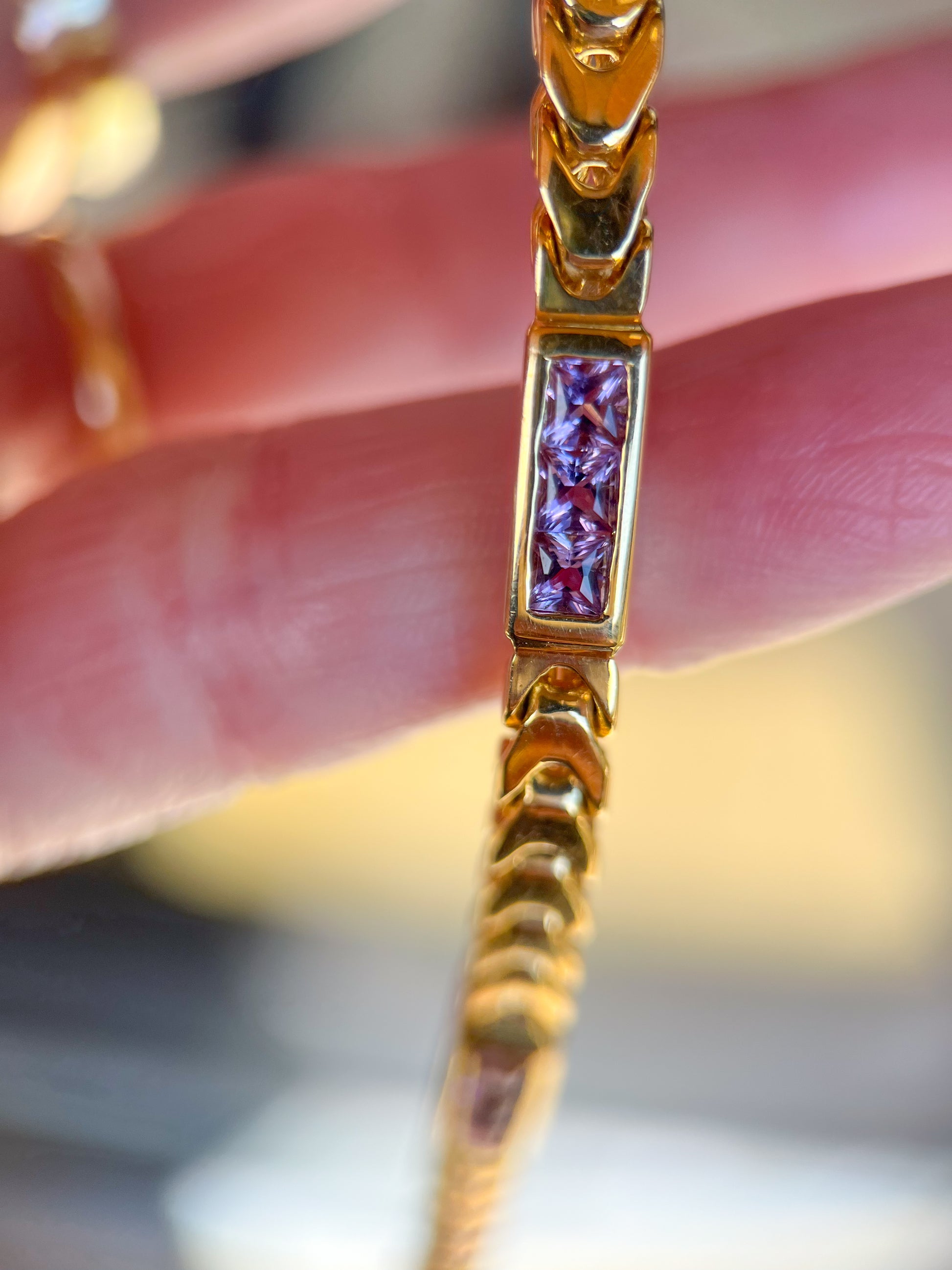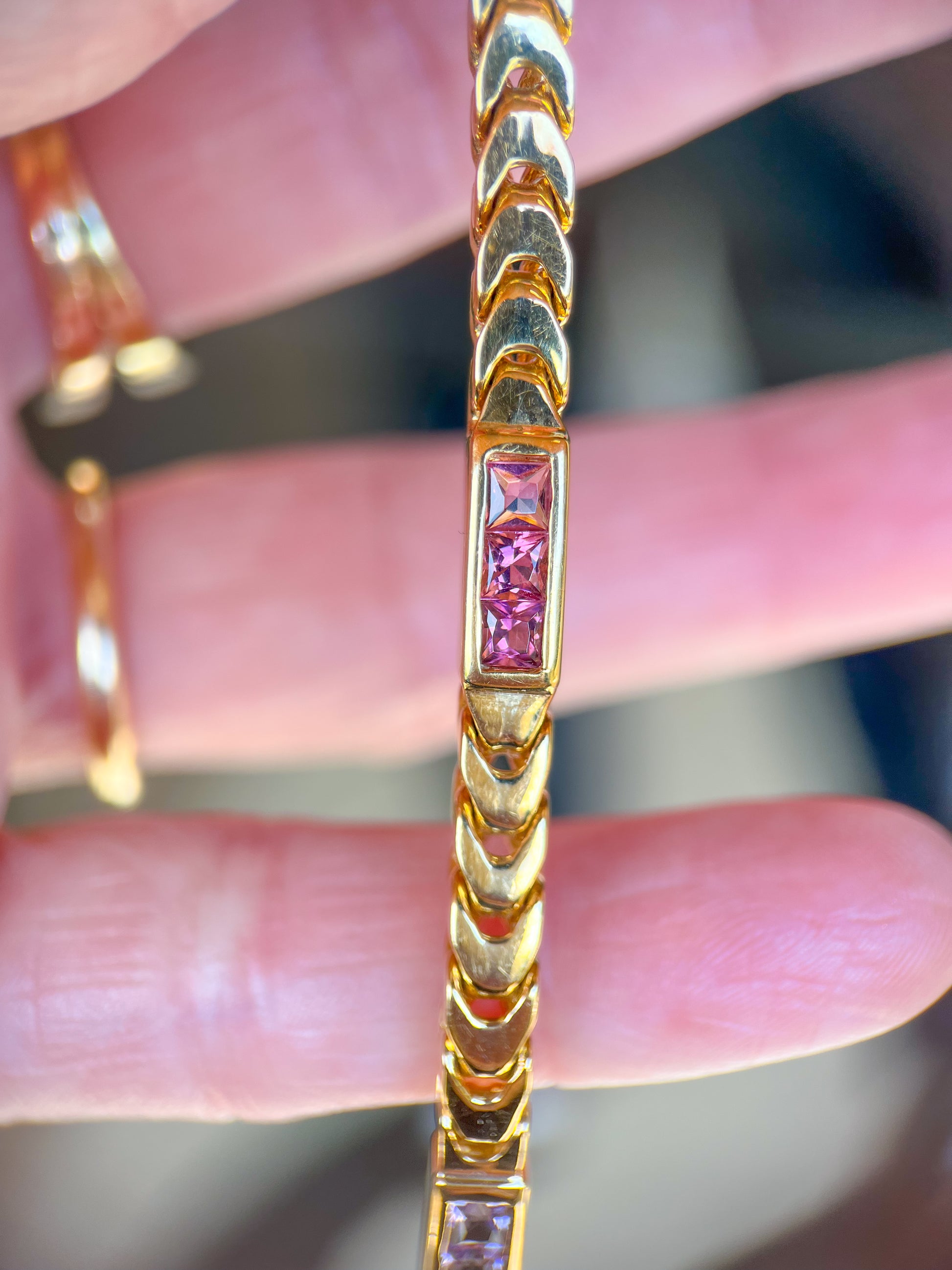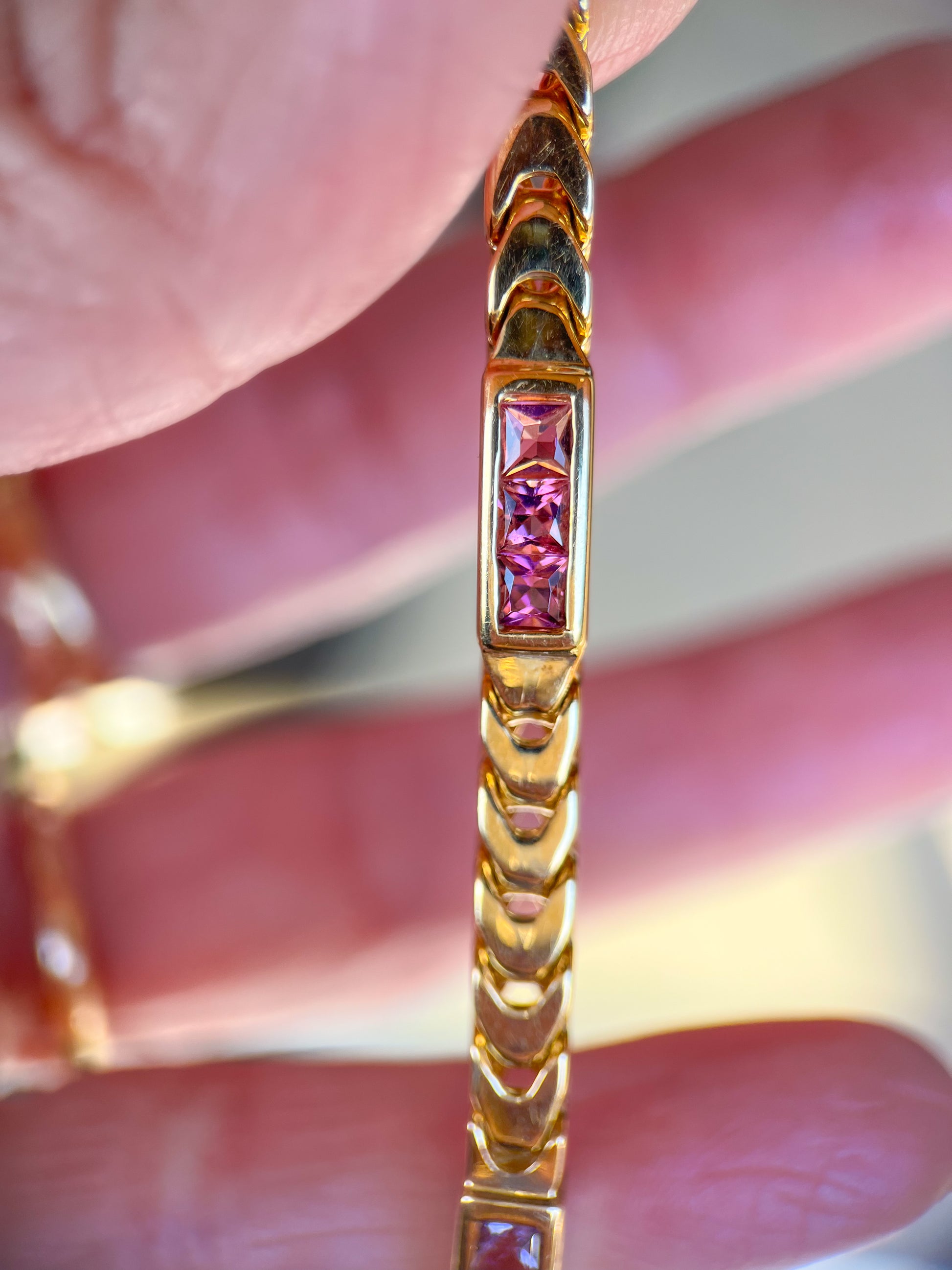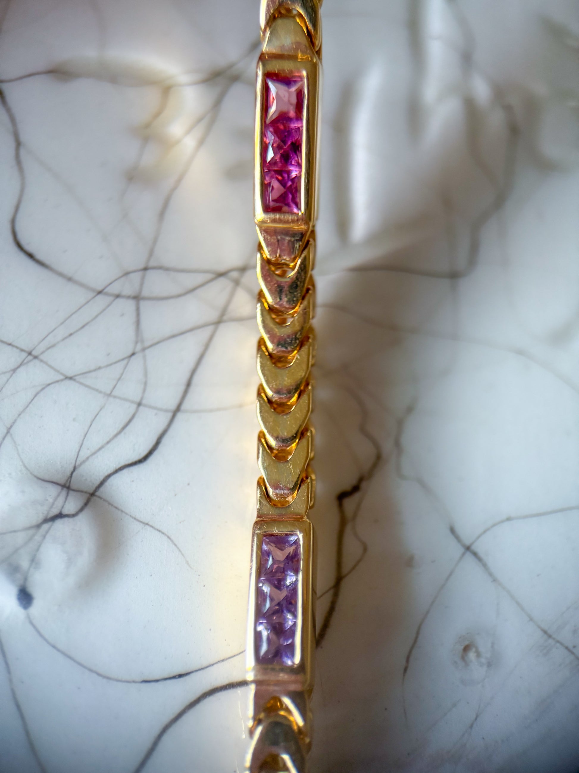 Vintage 18k Yellow Gold Pink and Purple Amethyst 7.5 Inch Bracelet