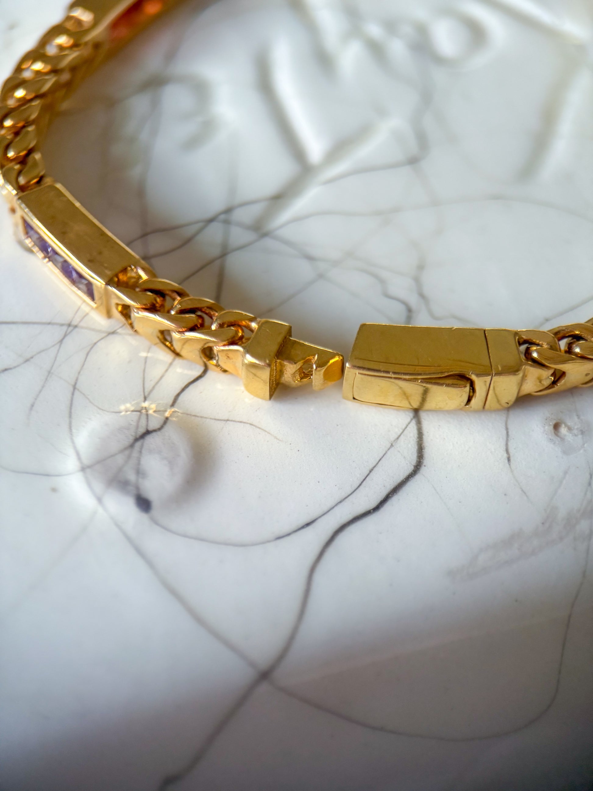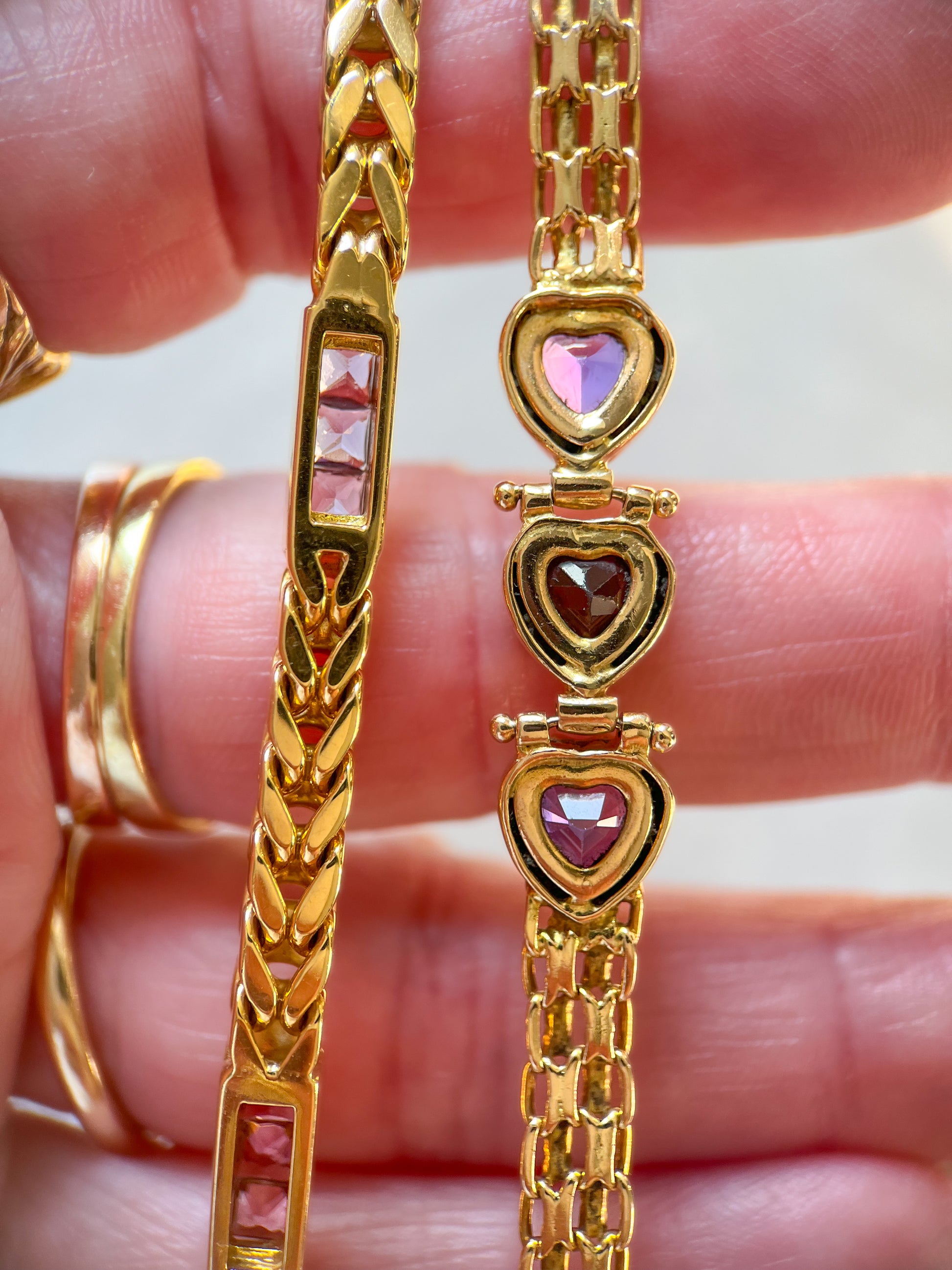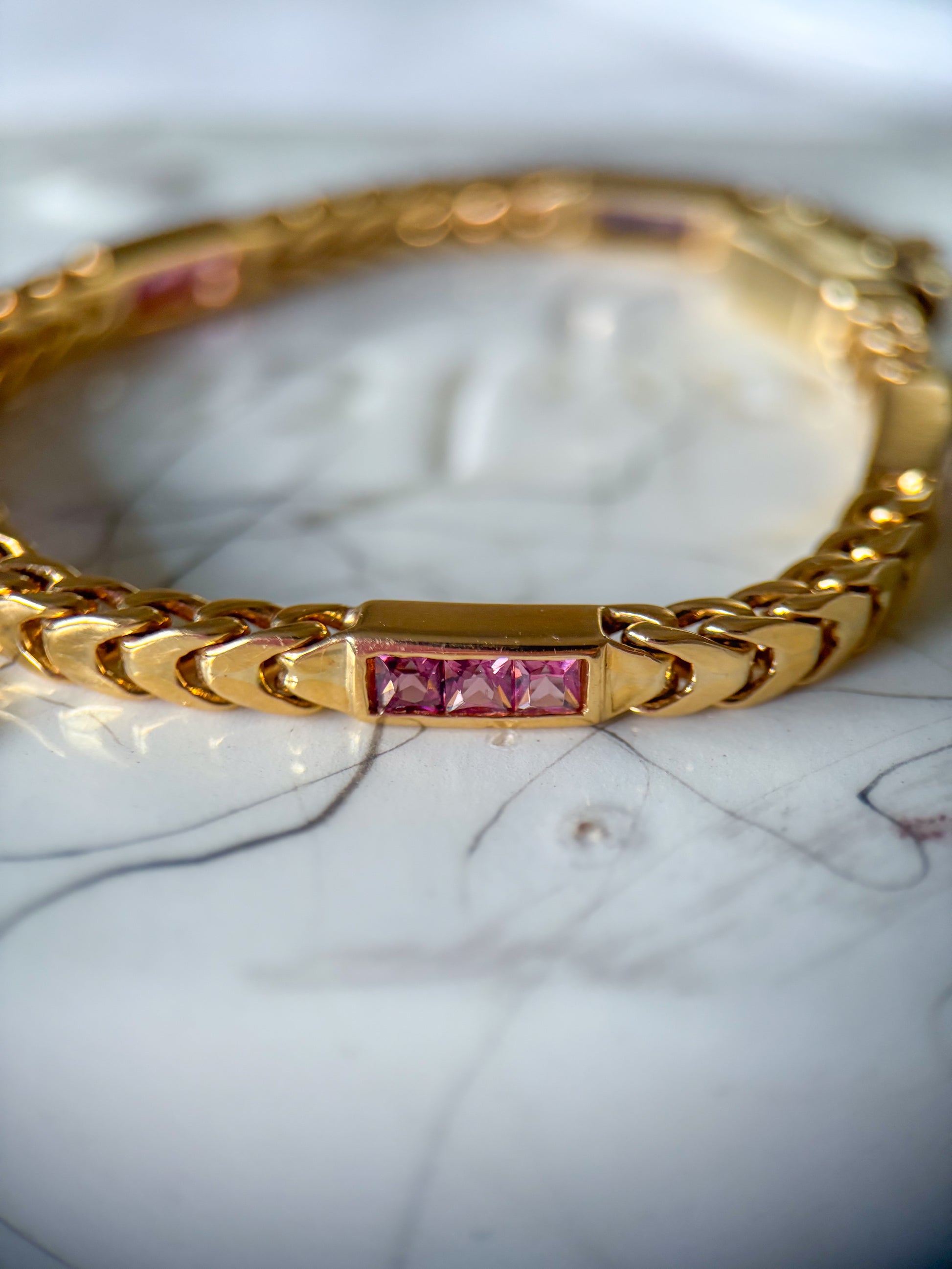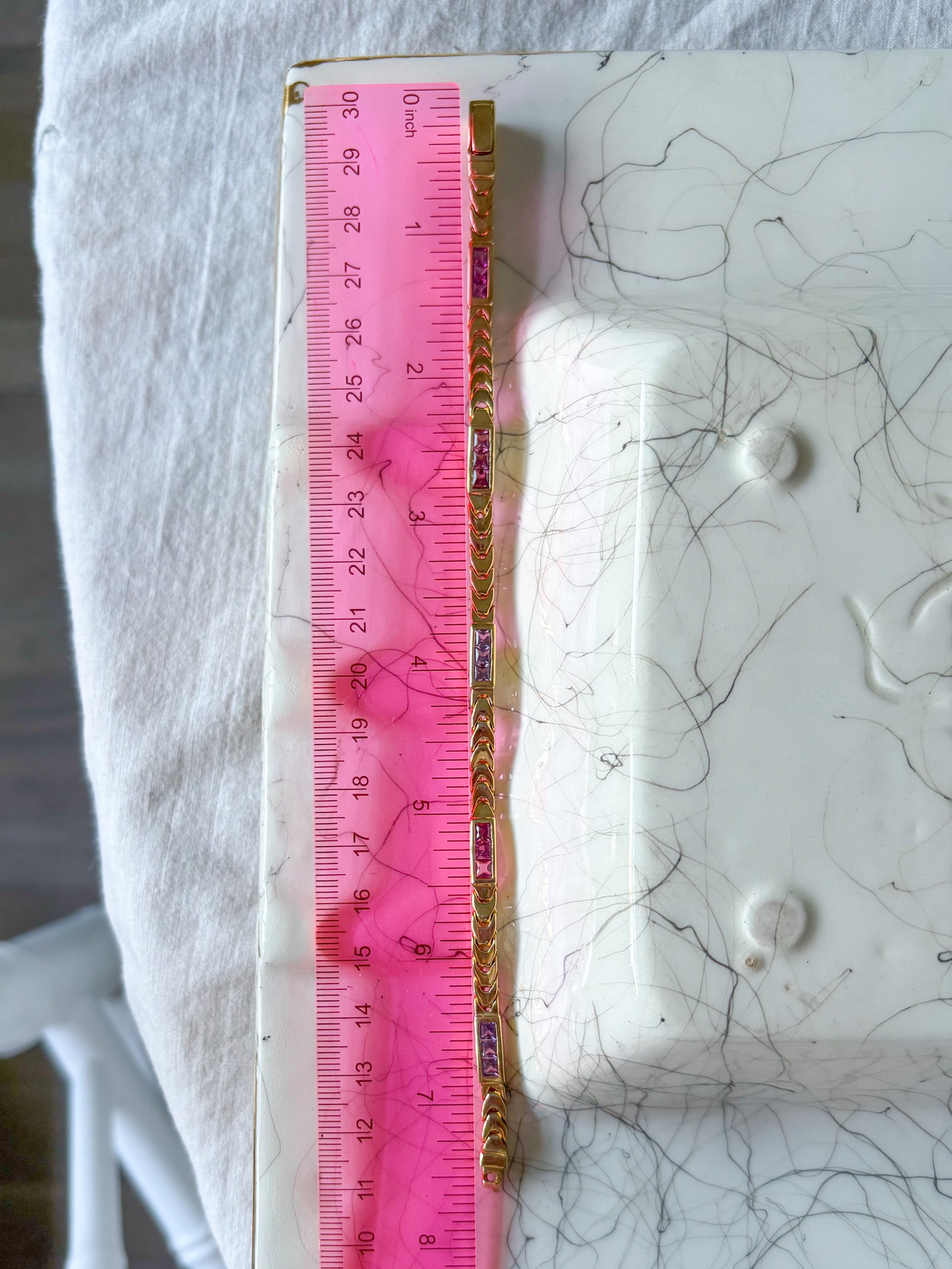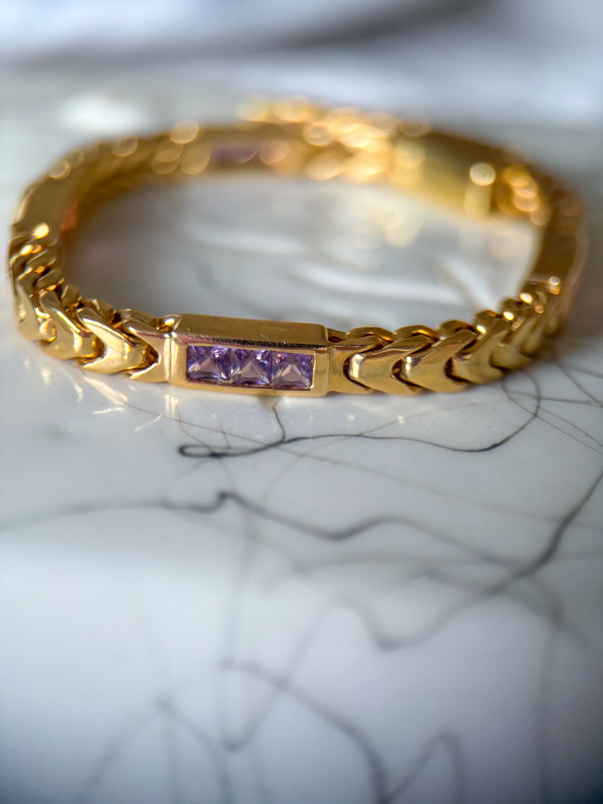 Vintage 18k Yellow Gold Pink and Purple Amethyst 7.5 Inch Bracelet