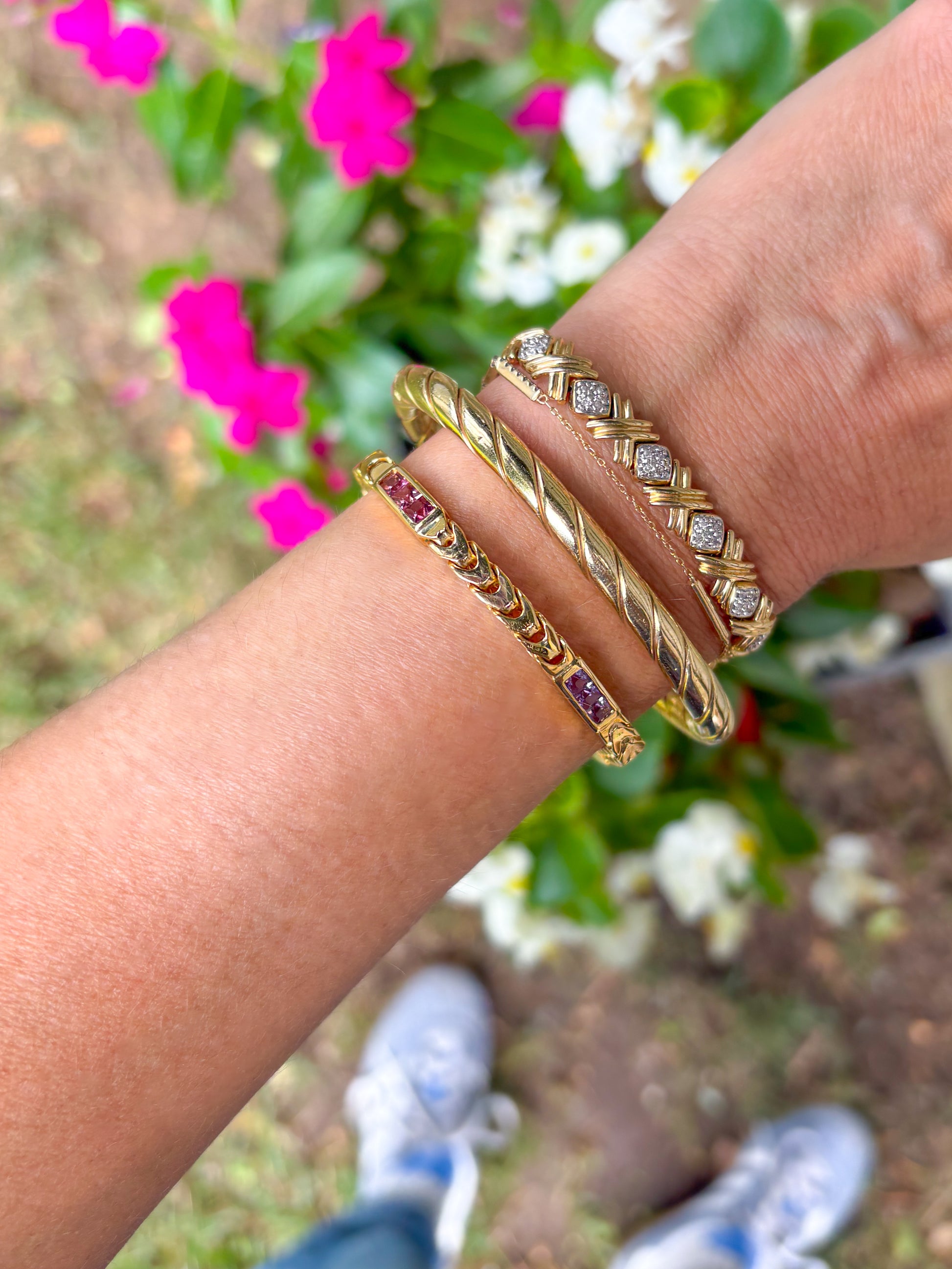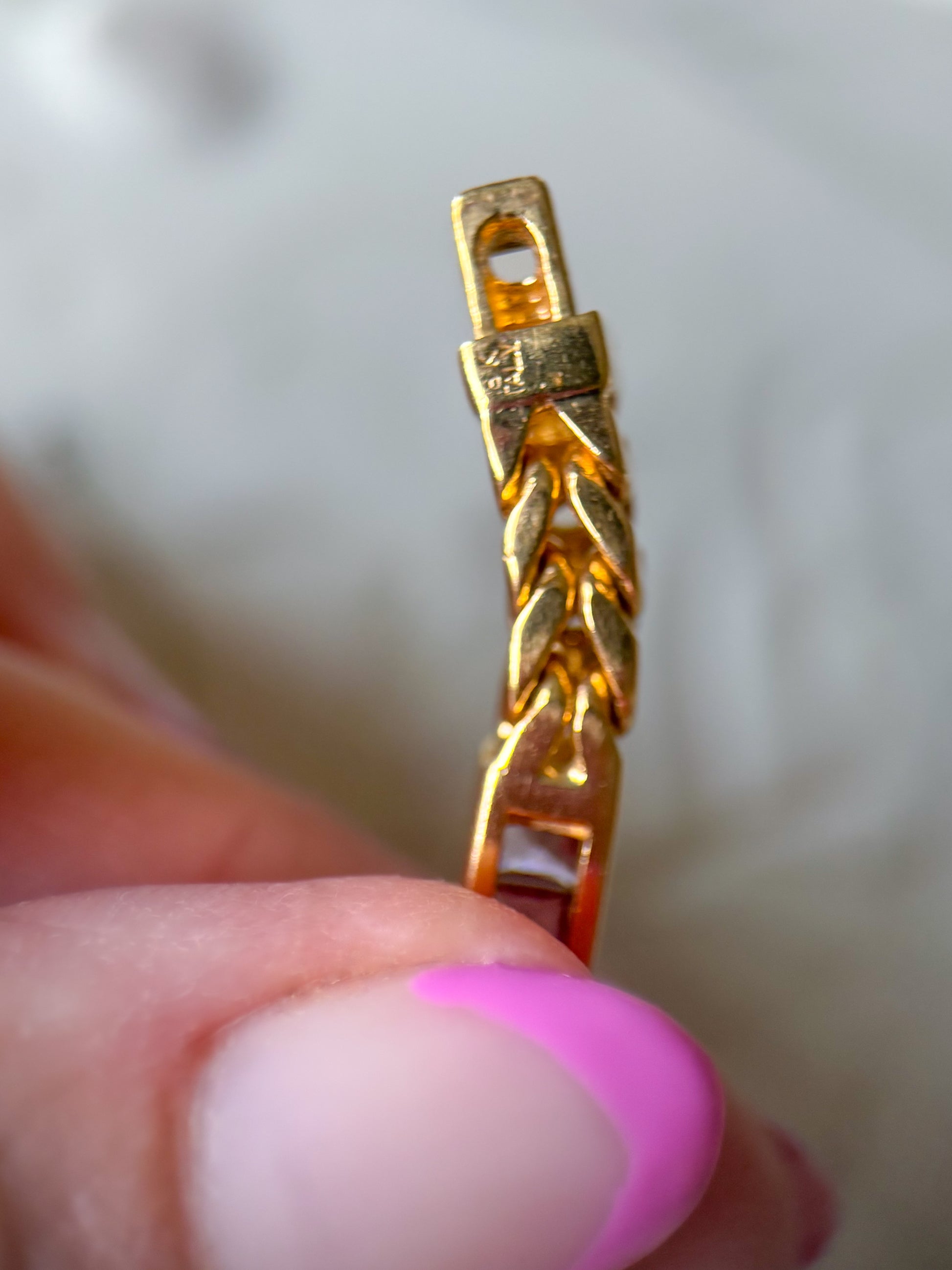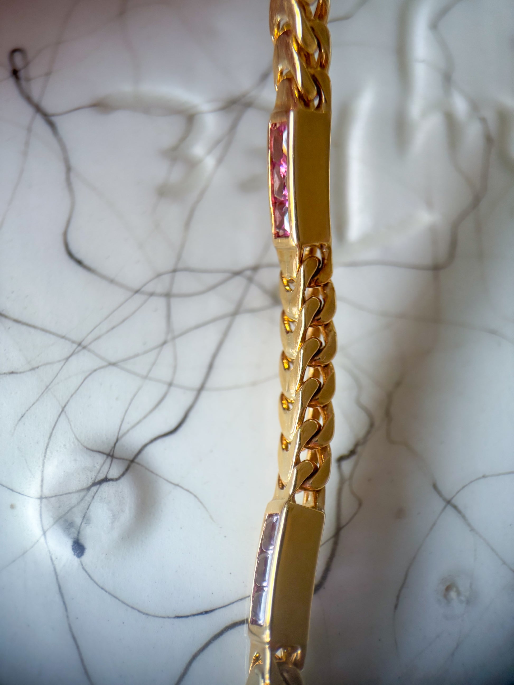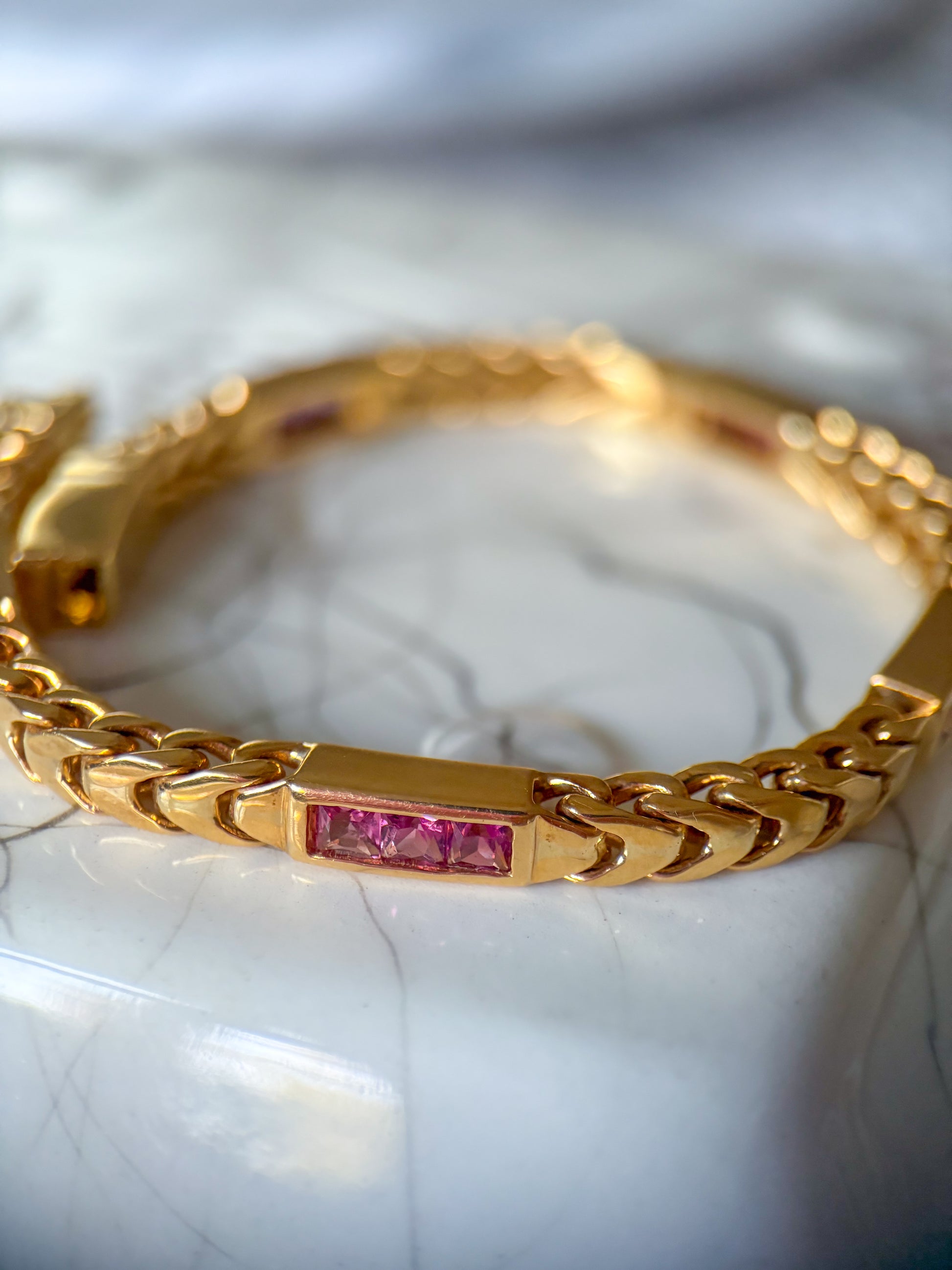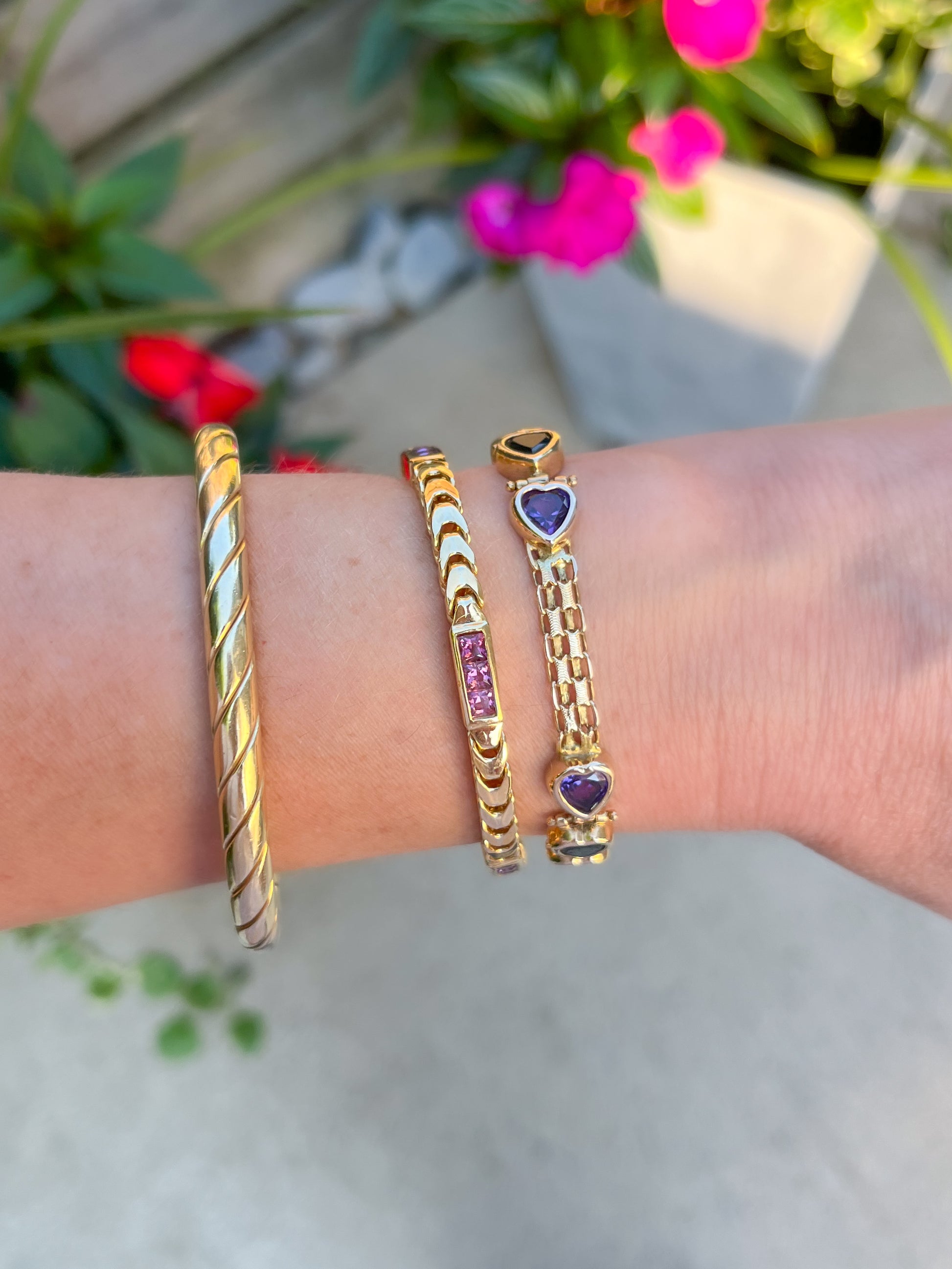 Vintage 18k Yellow Gold Pink and Purple Amethyst 7.5 Inch Bracelet