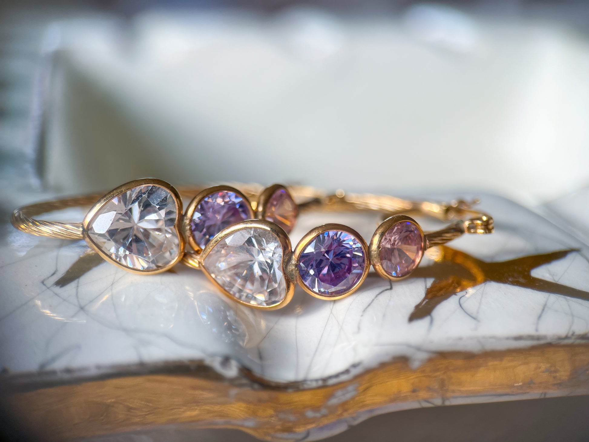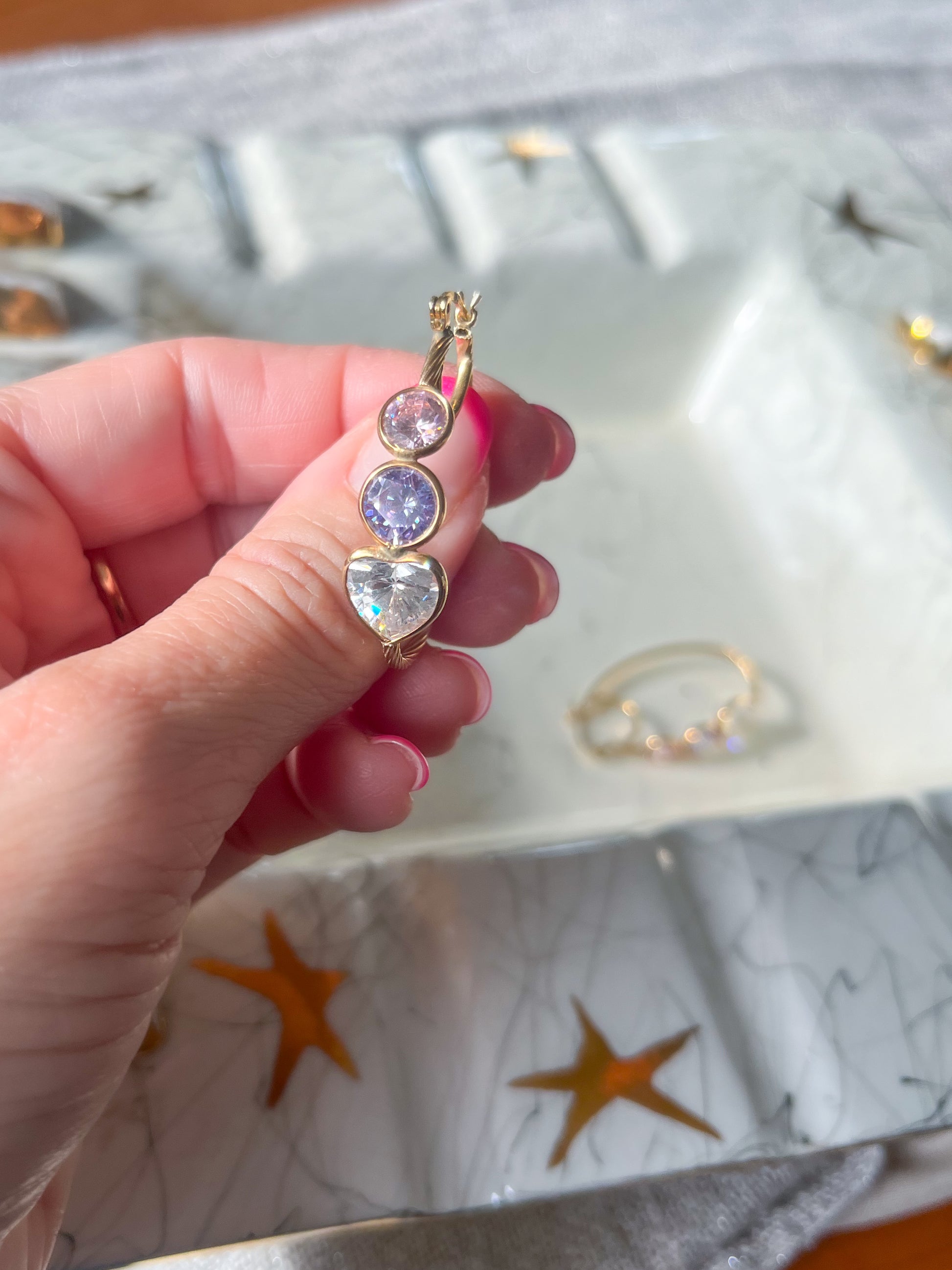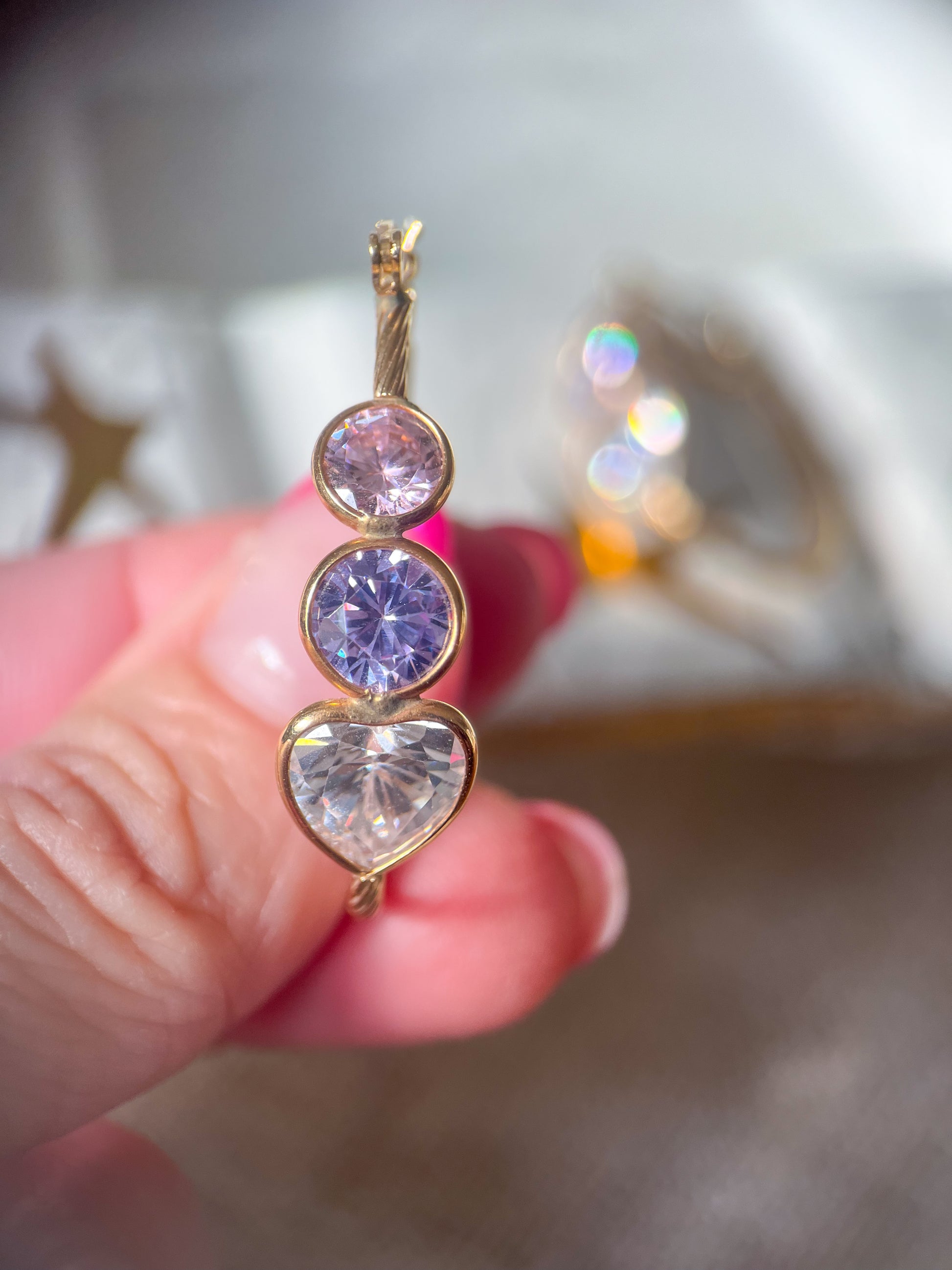 Stones: 3 CZs - 1 clear heart, 2 rounds pink and purple