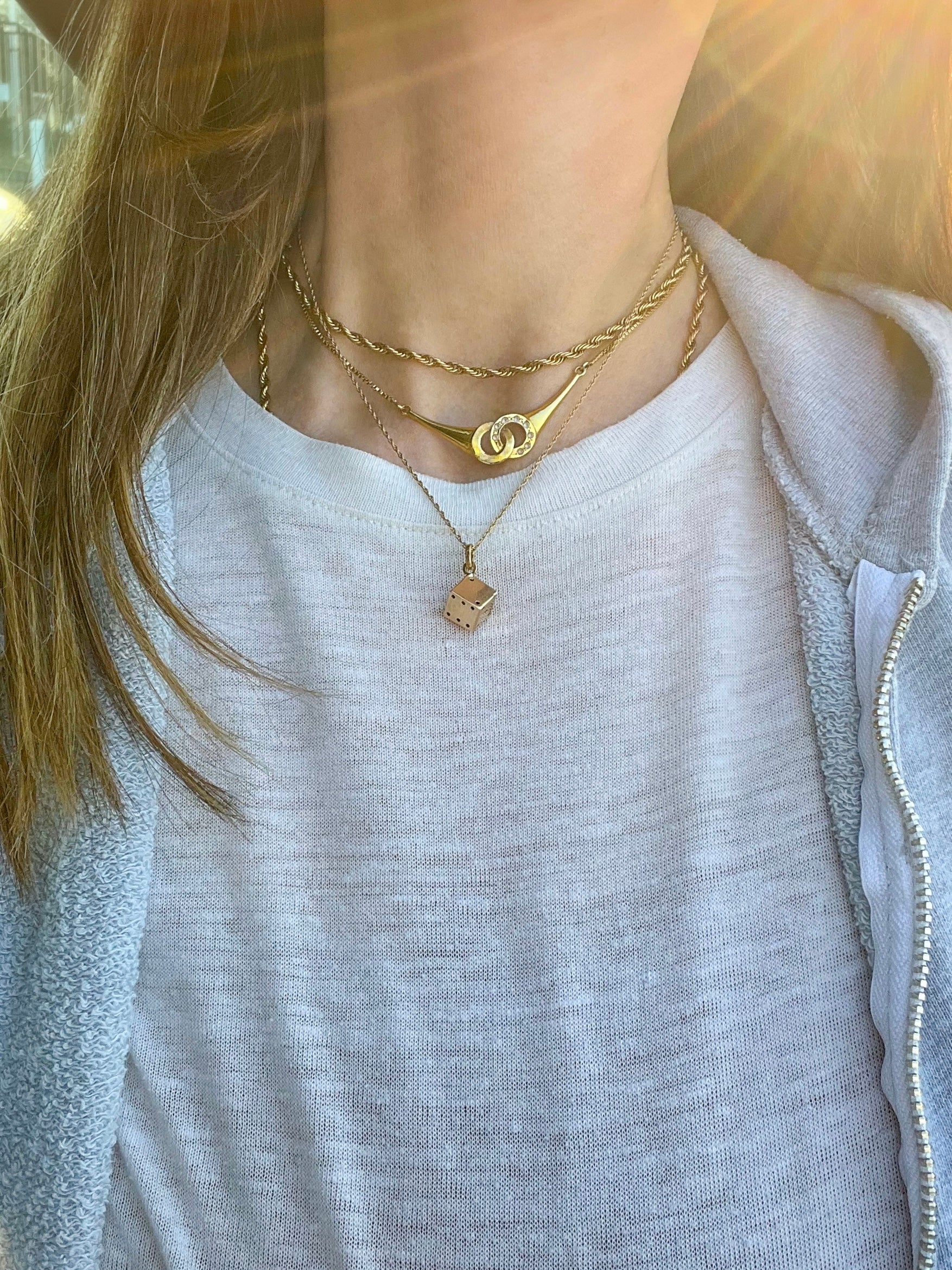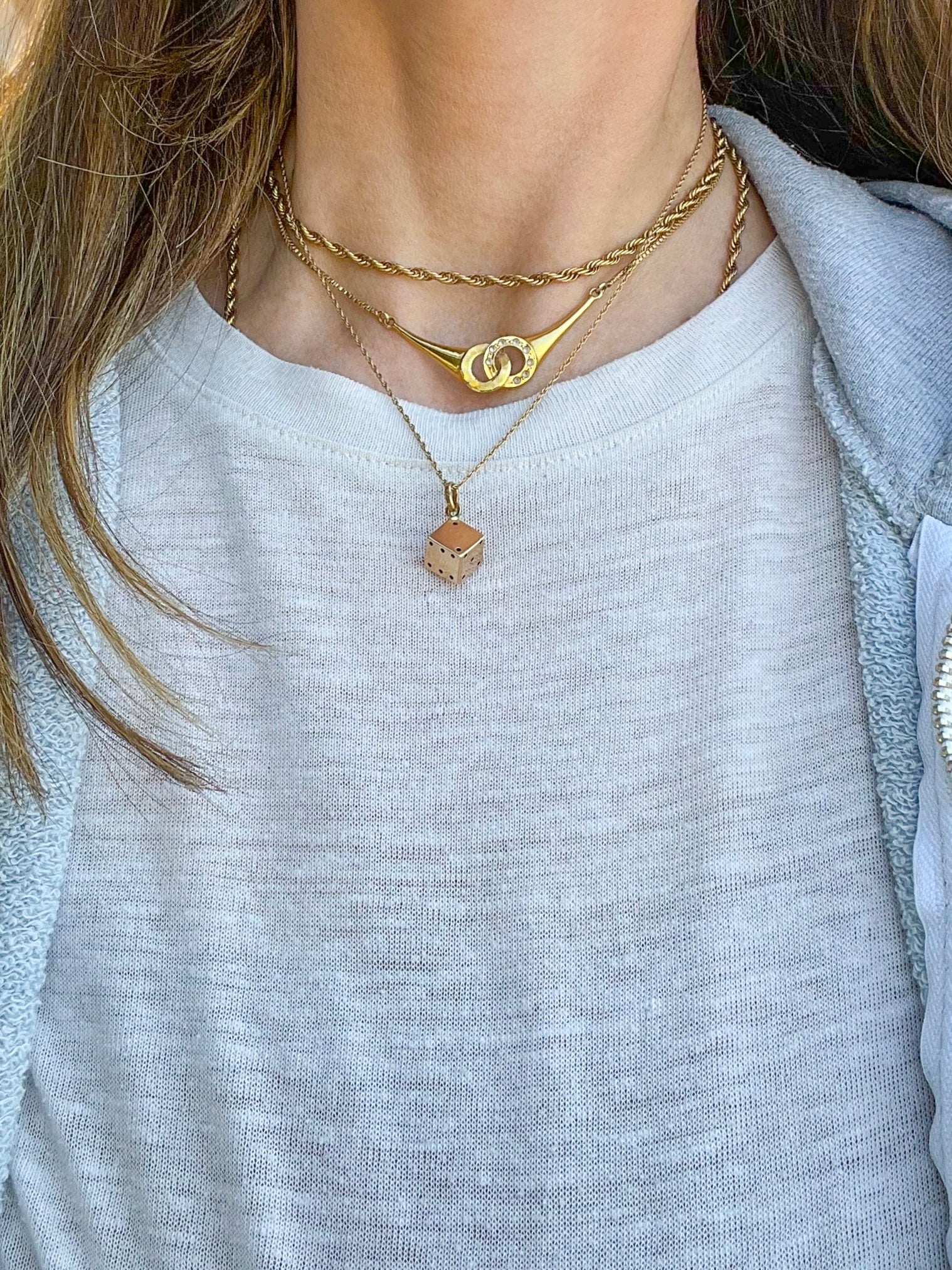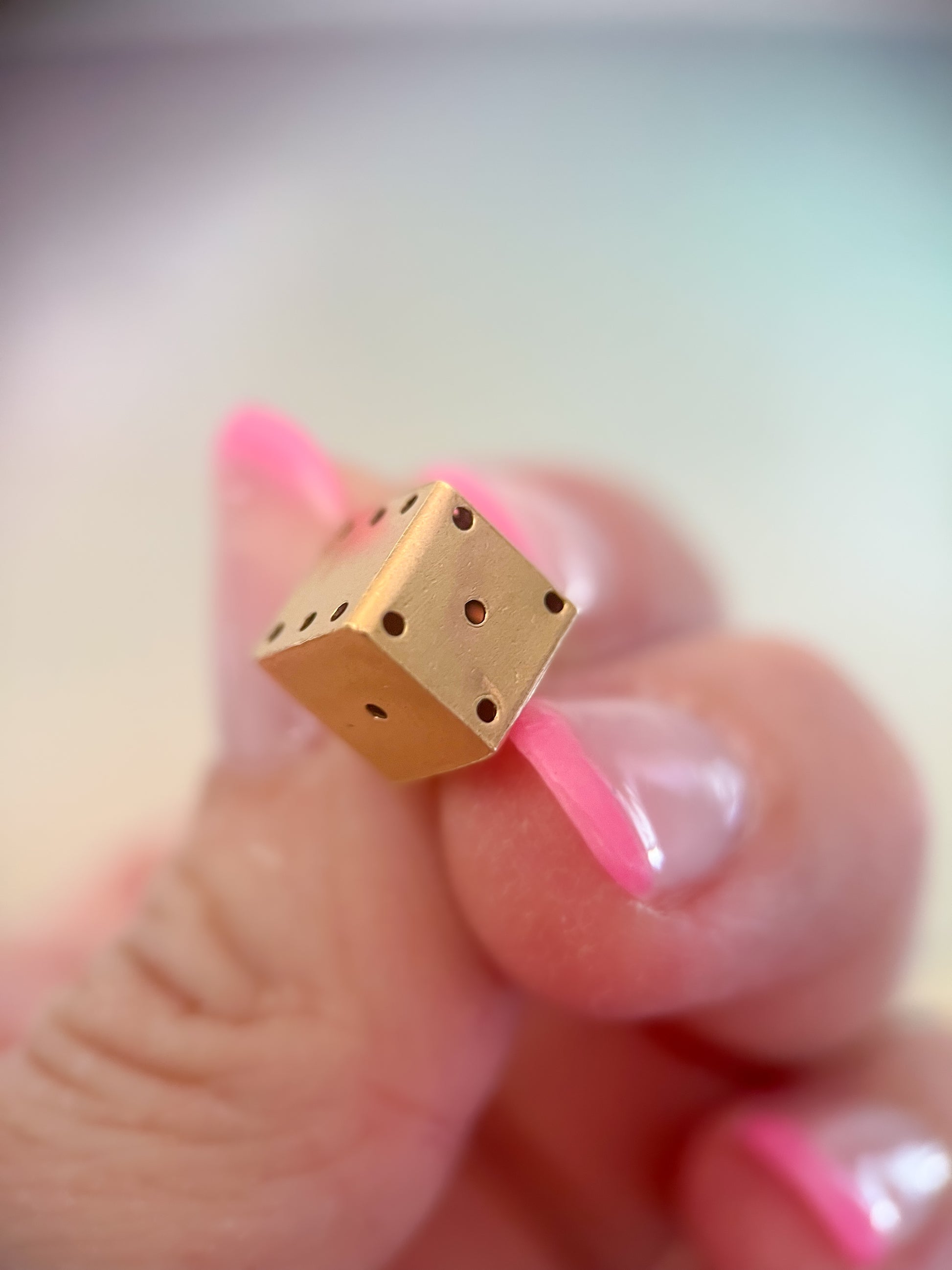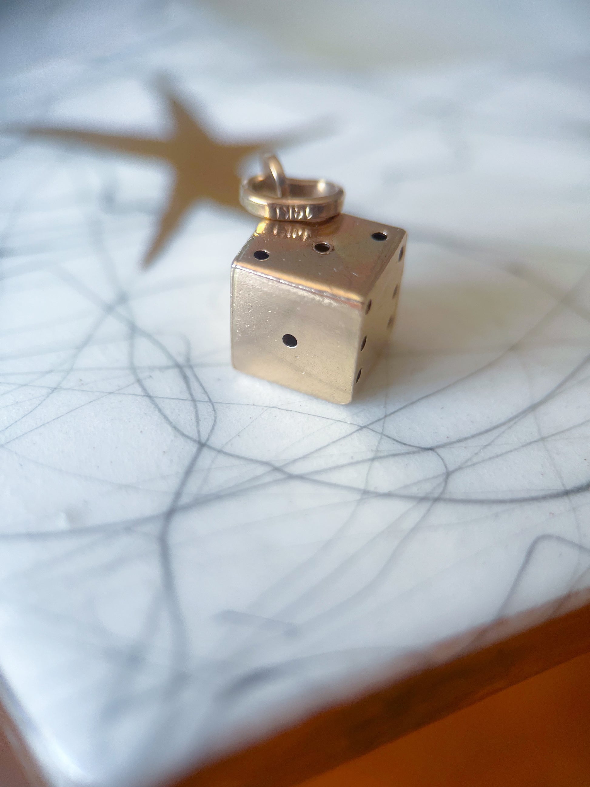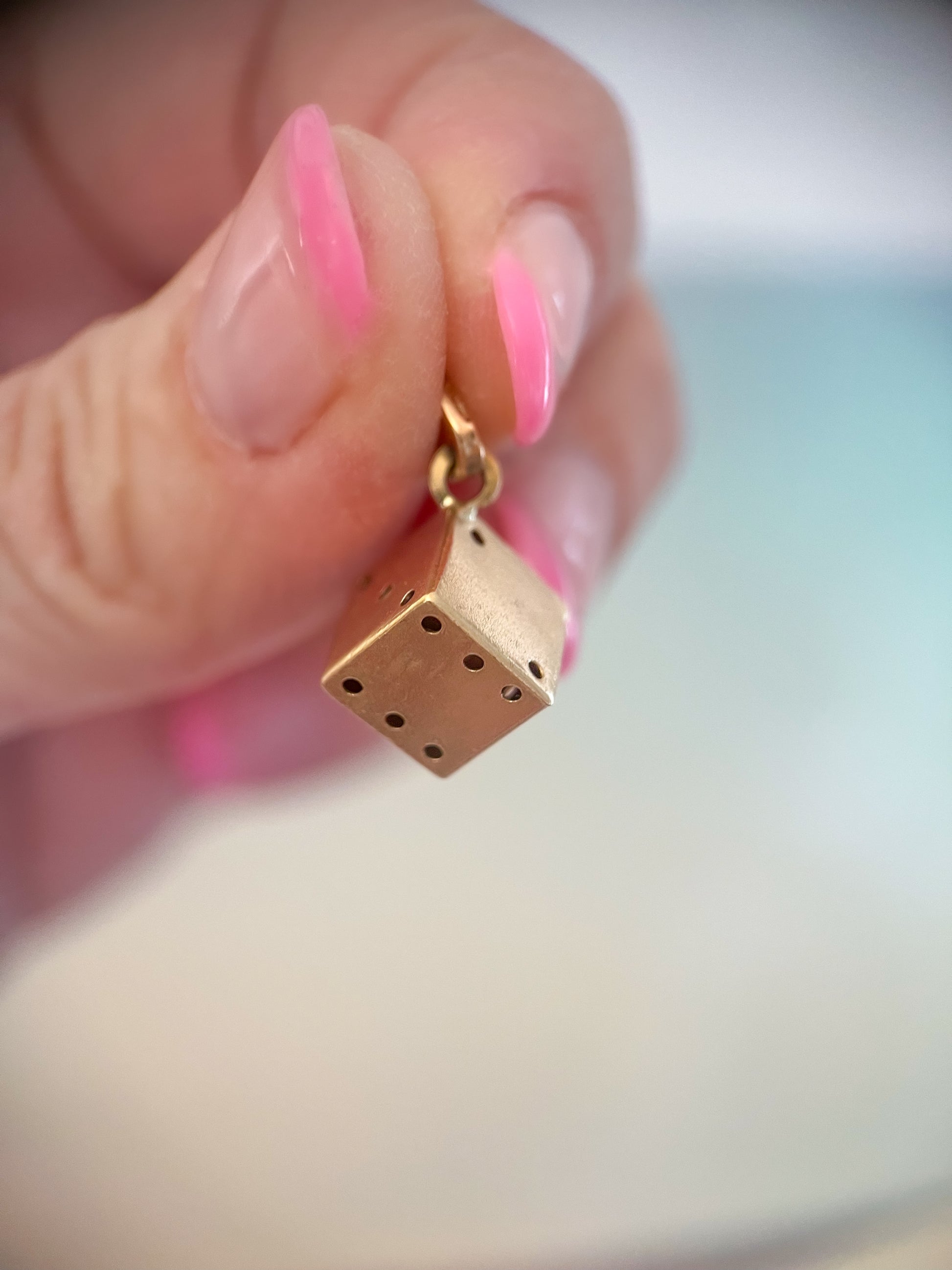 This vintage, 14k yellow gold 3D dice charm is awesome - substantial, beautiful and unique. Perfect for a necklace or charm bracelet. Chain not included.