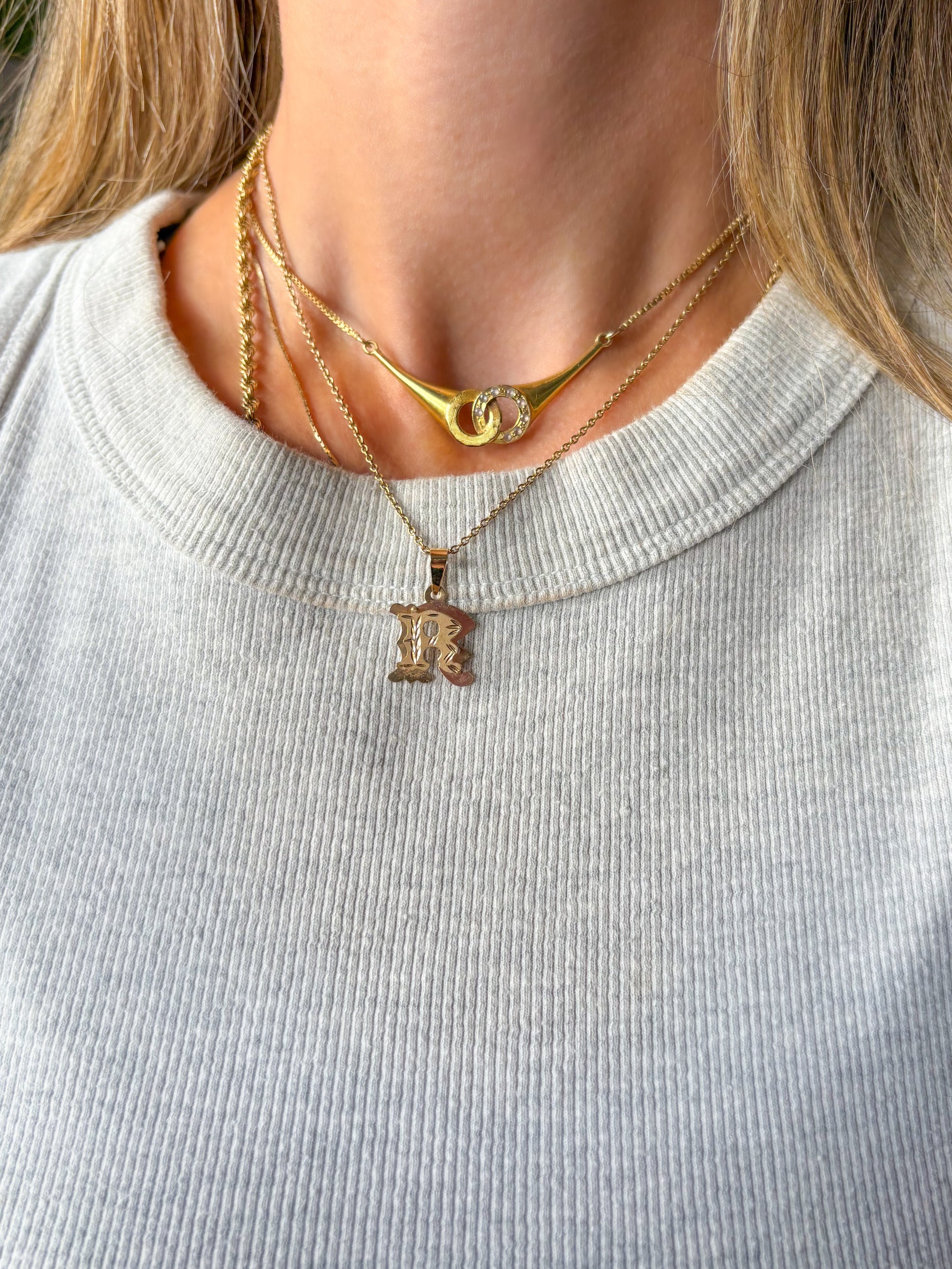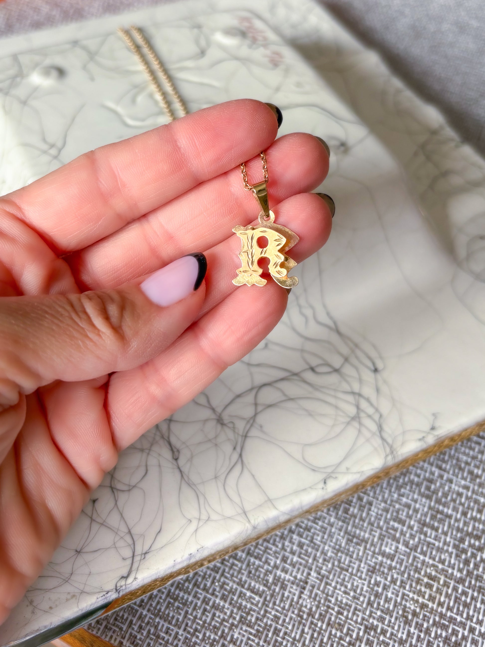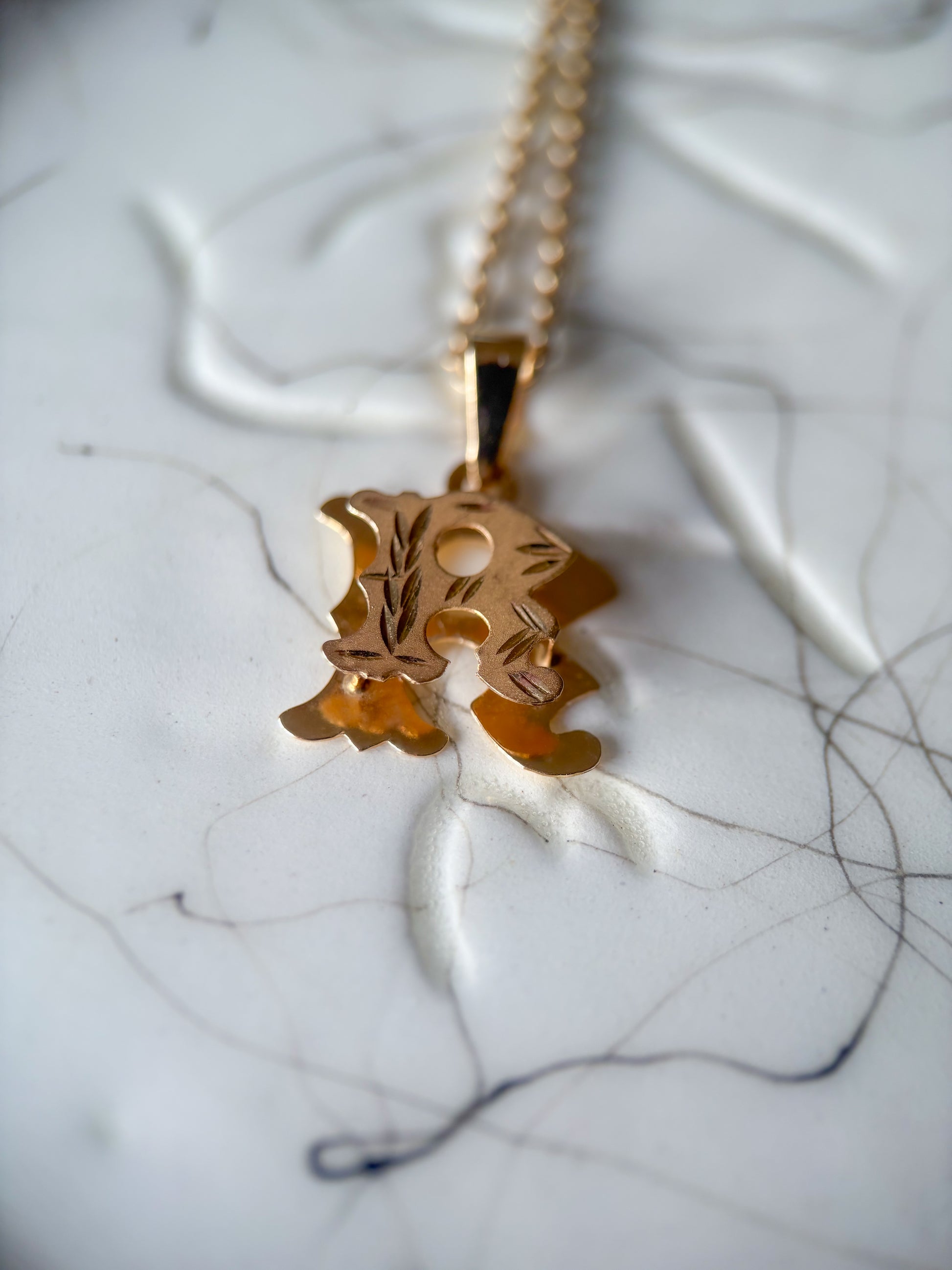 Vintage 14k yellow gold 3D "R" charm. Chain not included.