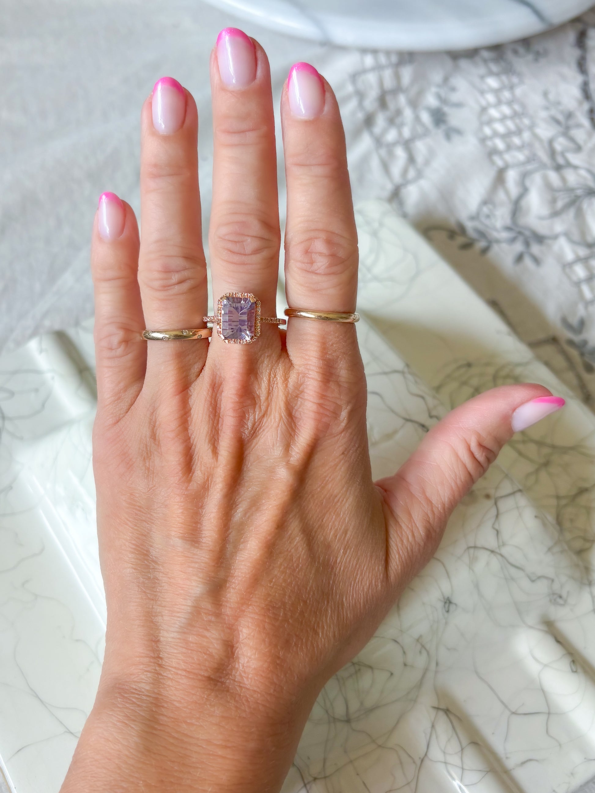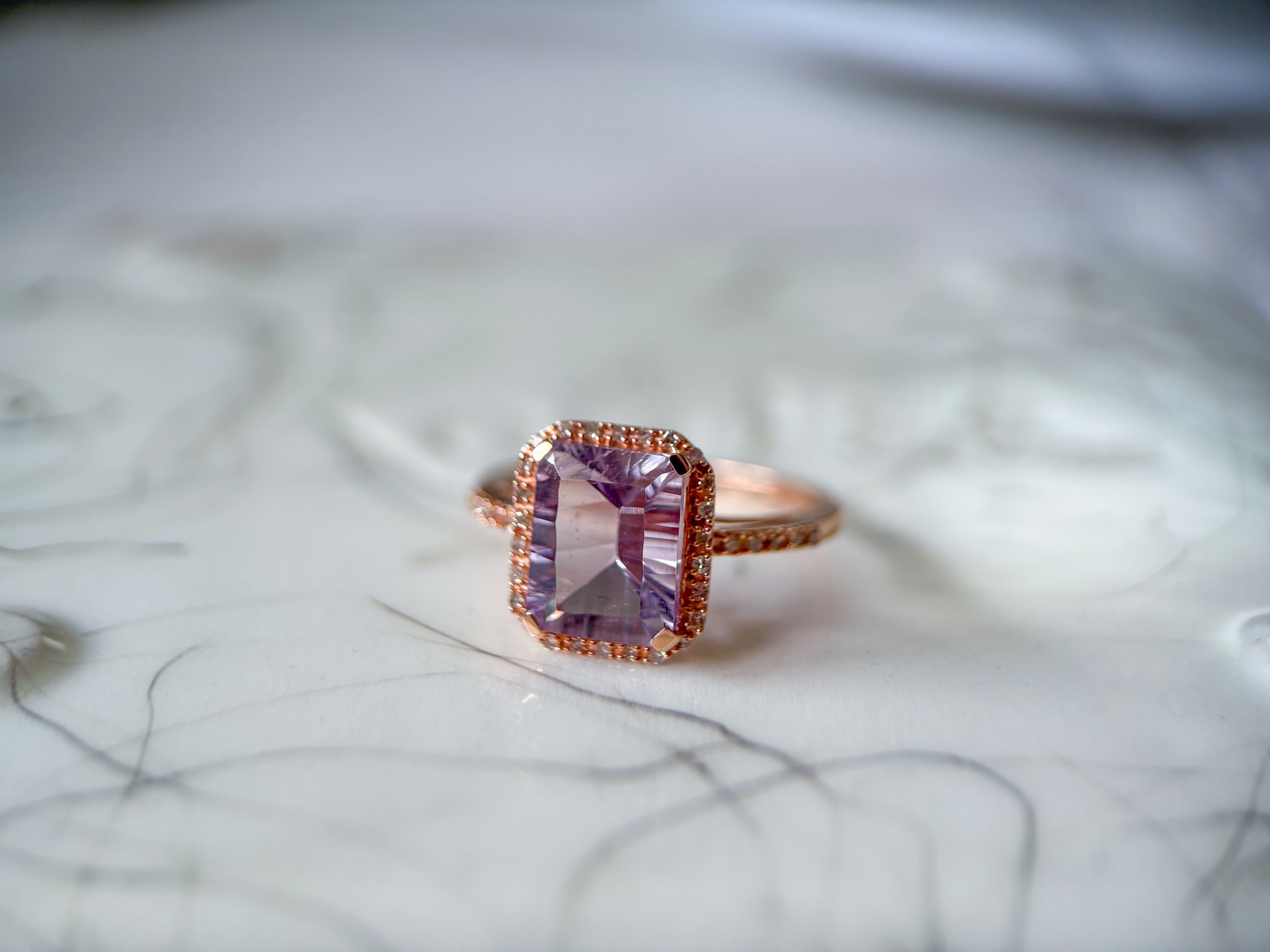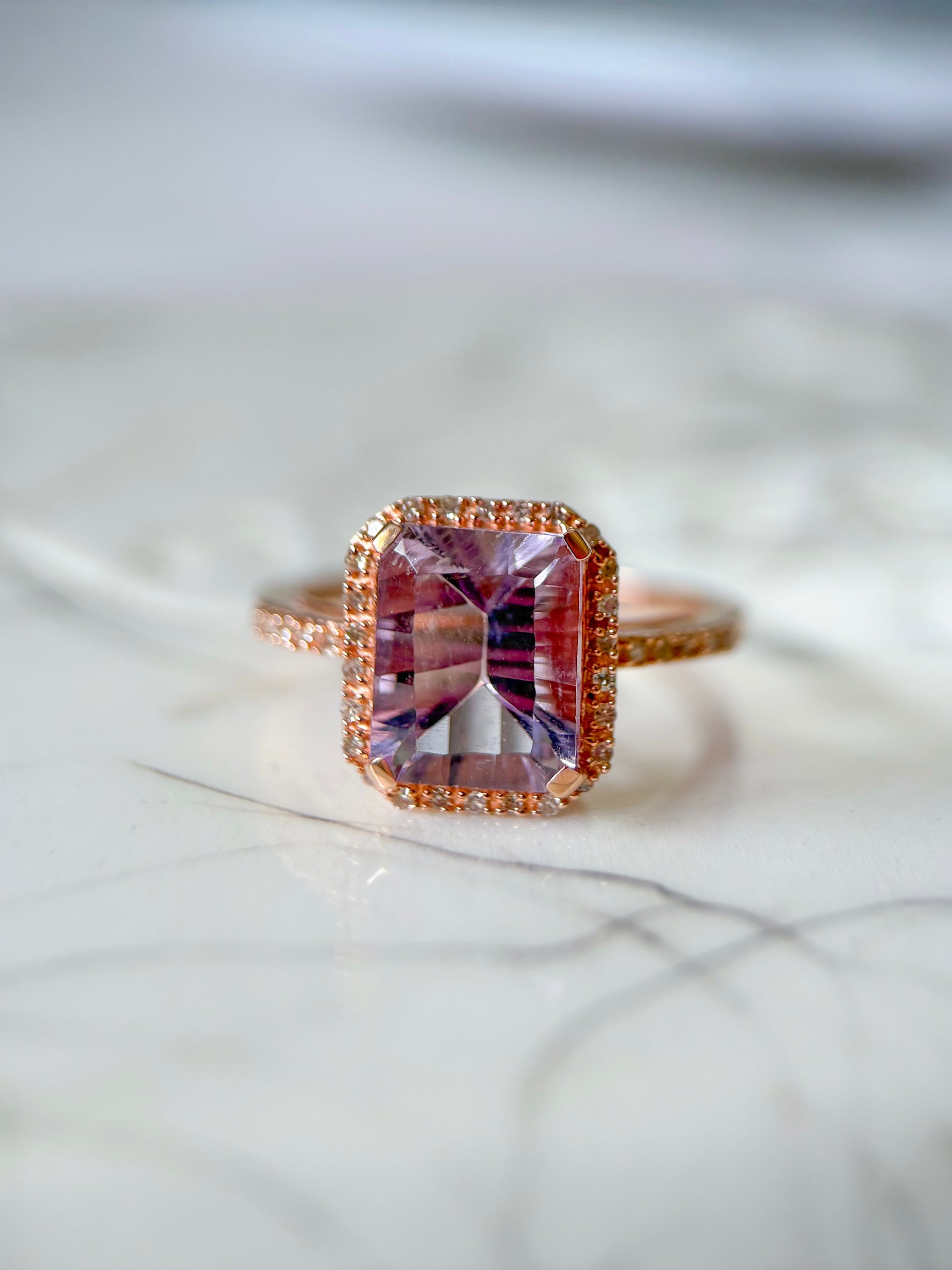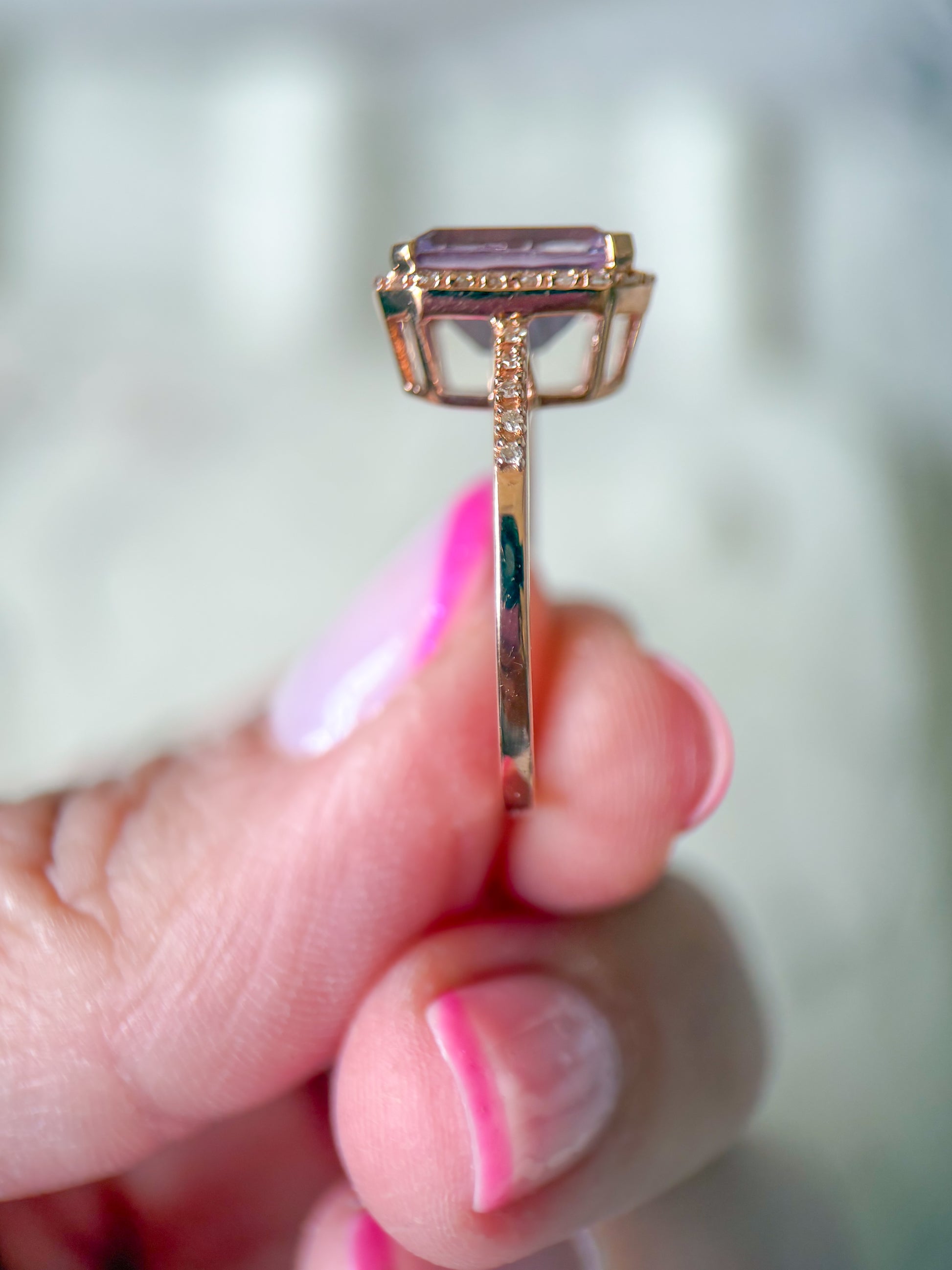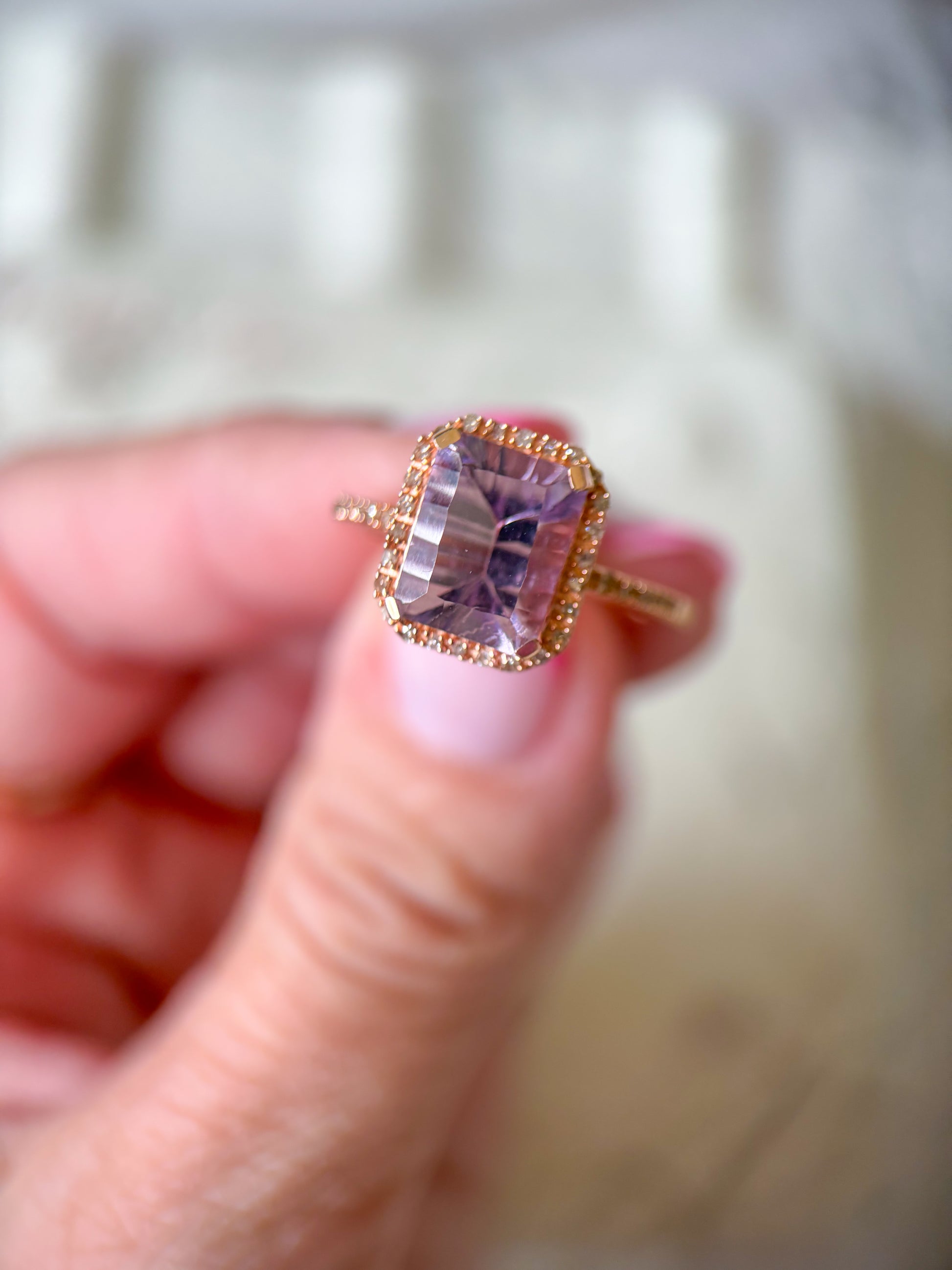 Really pretty, vintage, 10k rose gold with amethyst and natural diamonds.