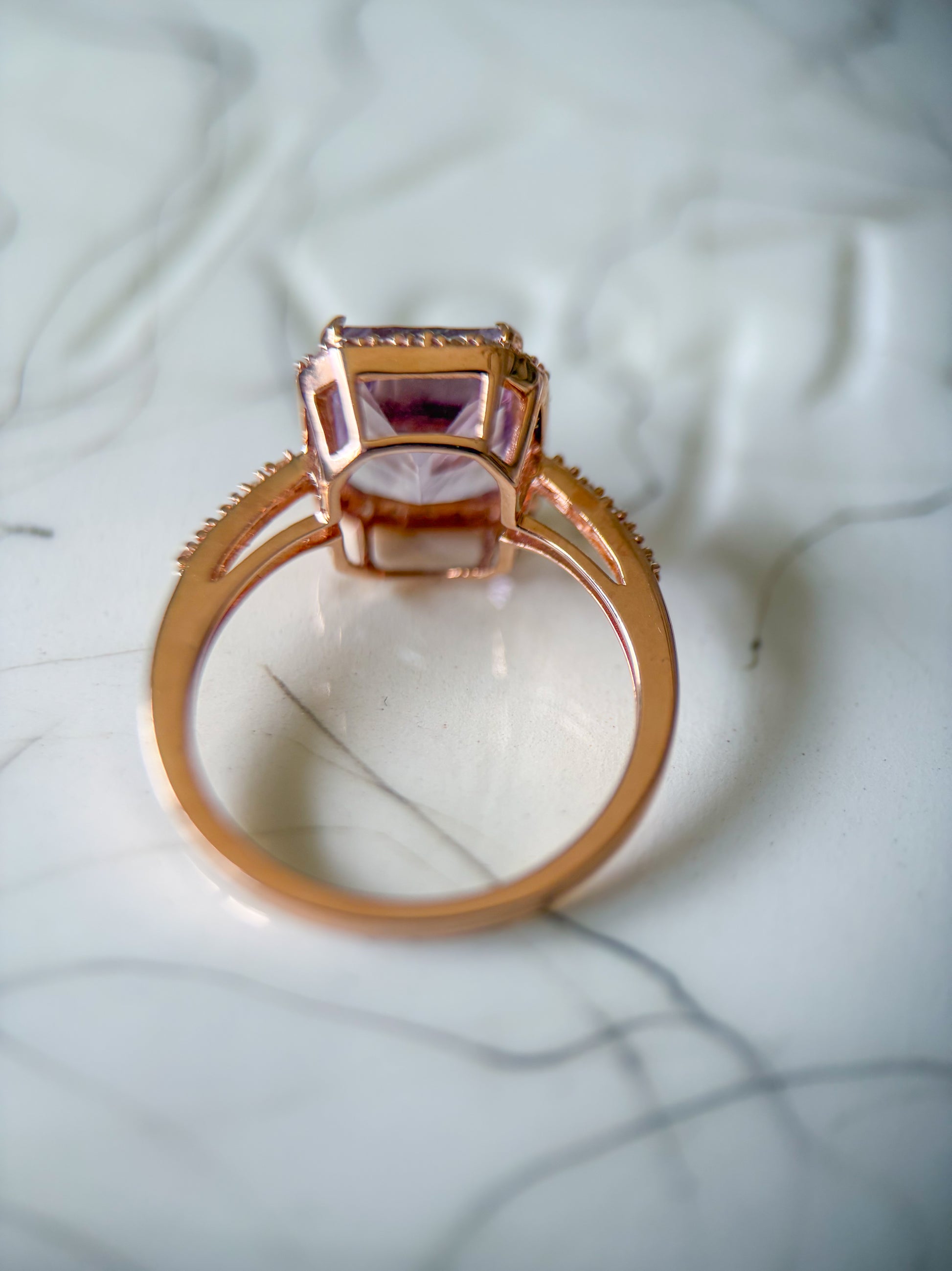 Vintage Amethyst and Natural Diamond 10k Rose Gold Ring