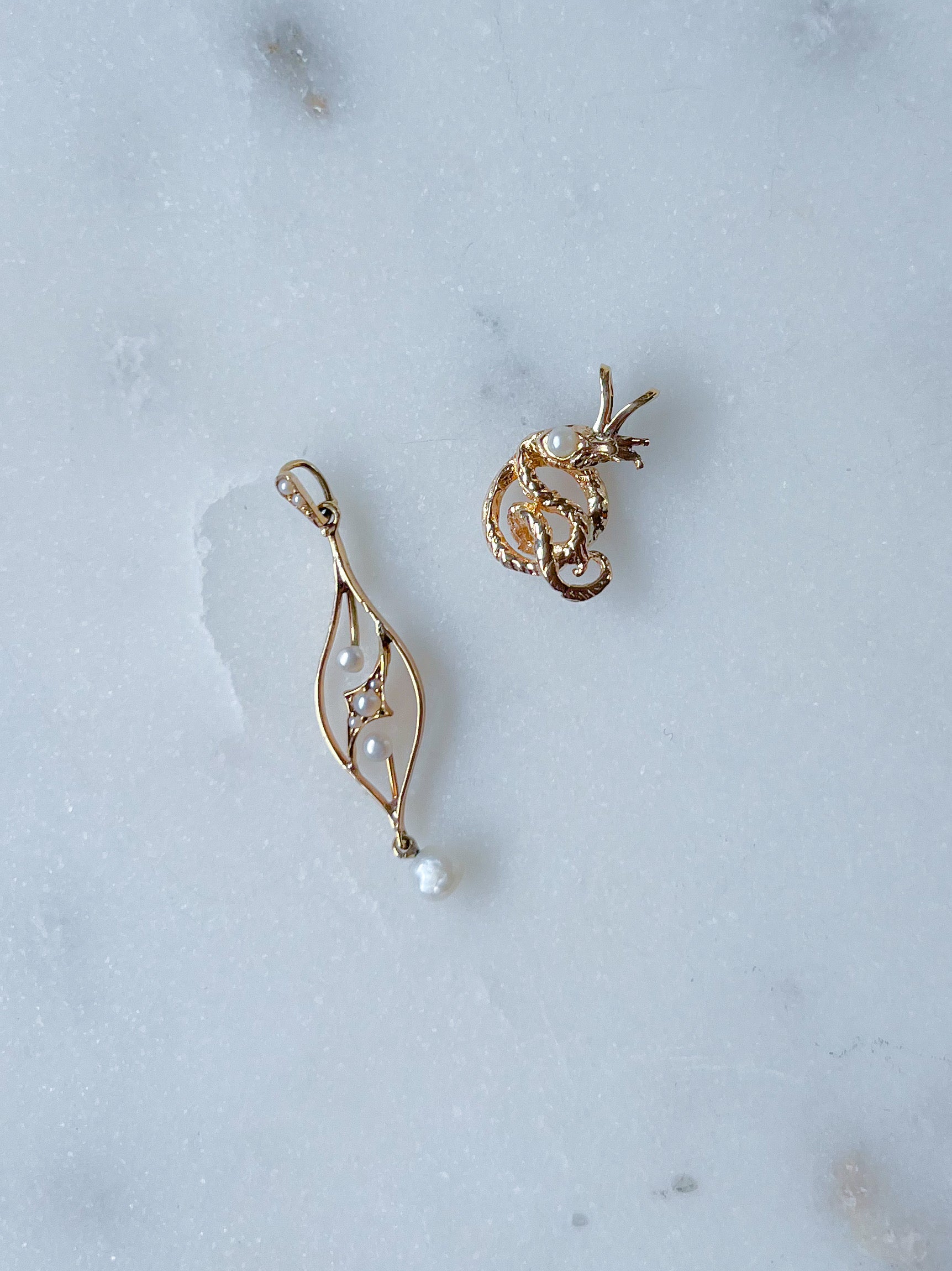 Vintage Art Nouveau Pearl 15k Yellow Gold Pendant
