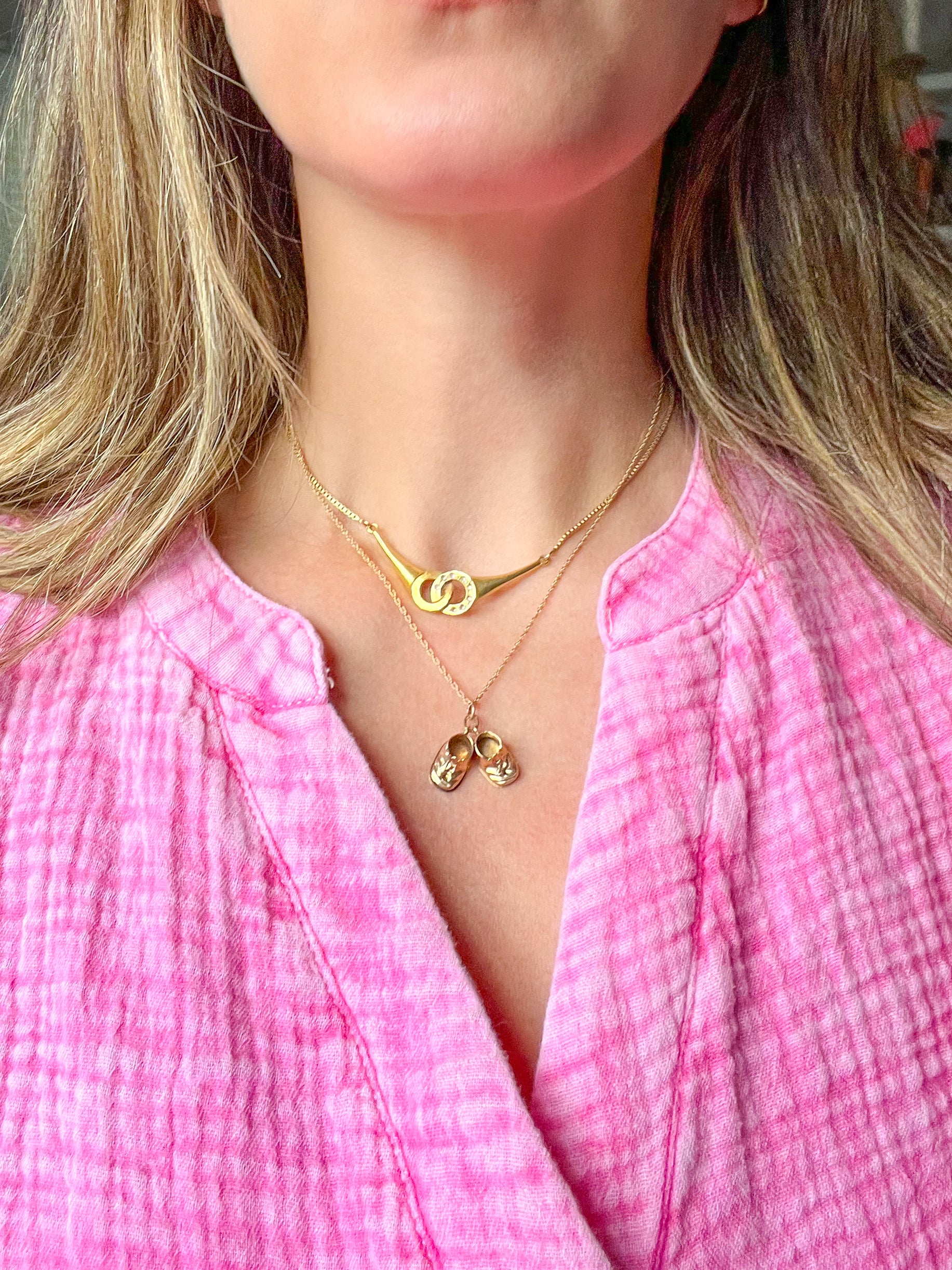 Sweet, adorable baby shoes charm. Made of 14k yellow gold. Chain not included.