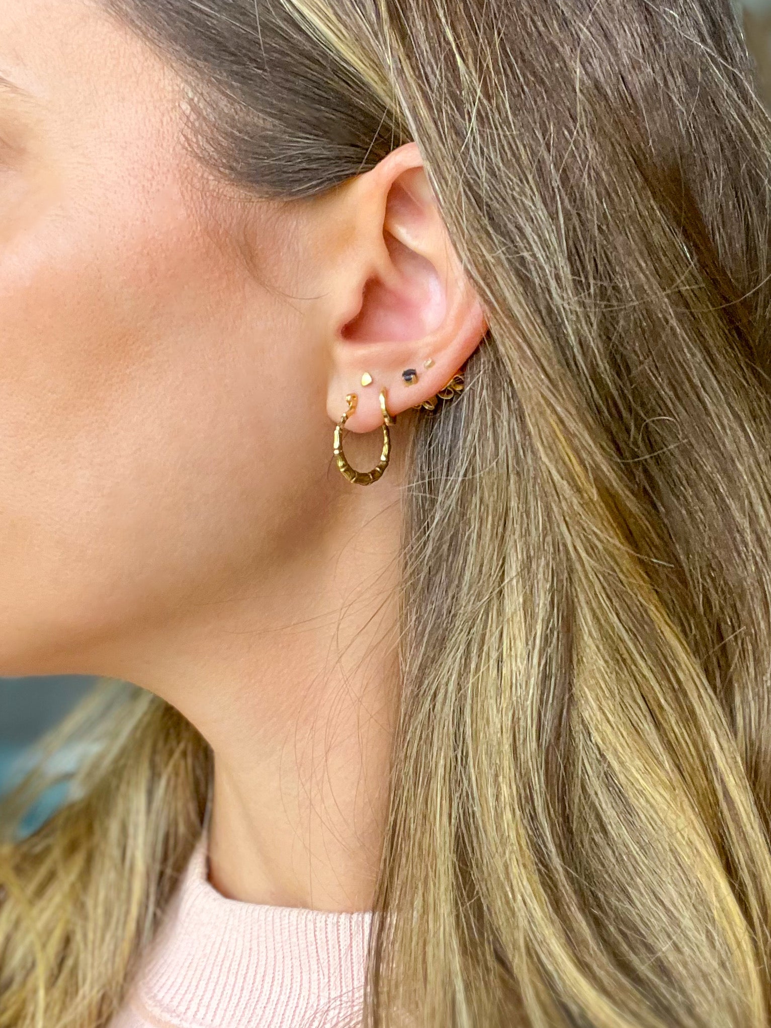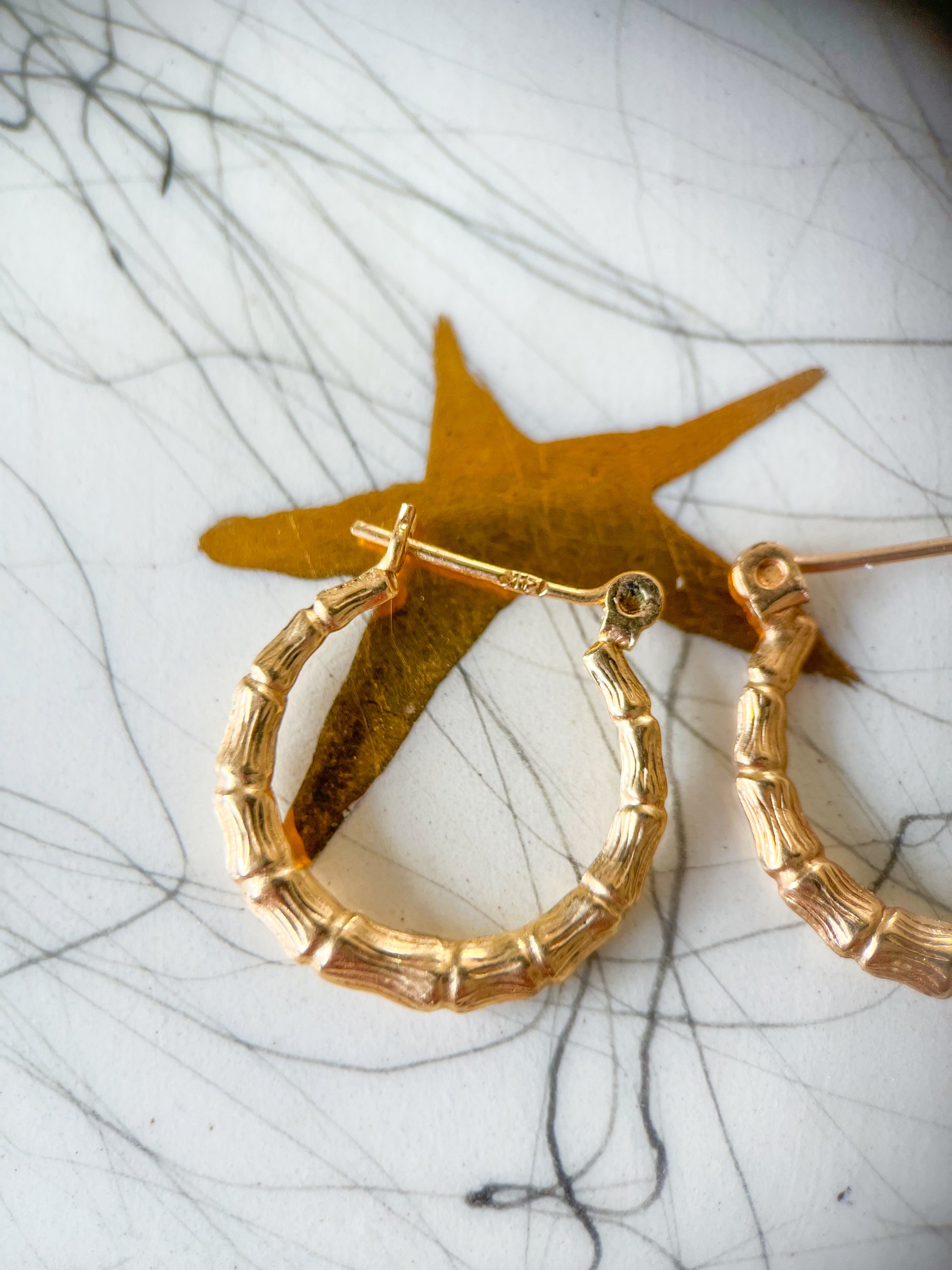 Really cool, small, lightweight, 14k yellow gold, vintage bamboo hoops.