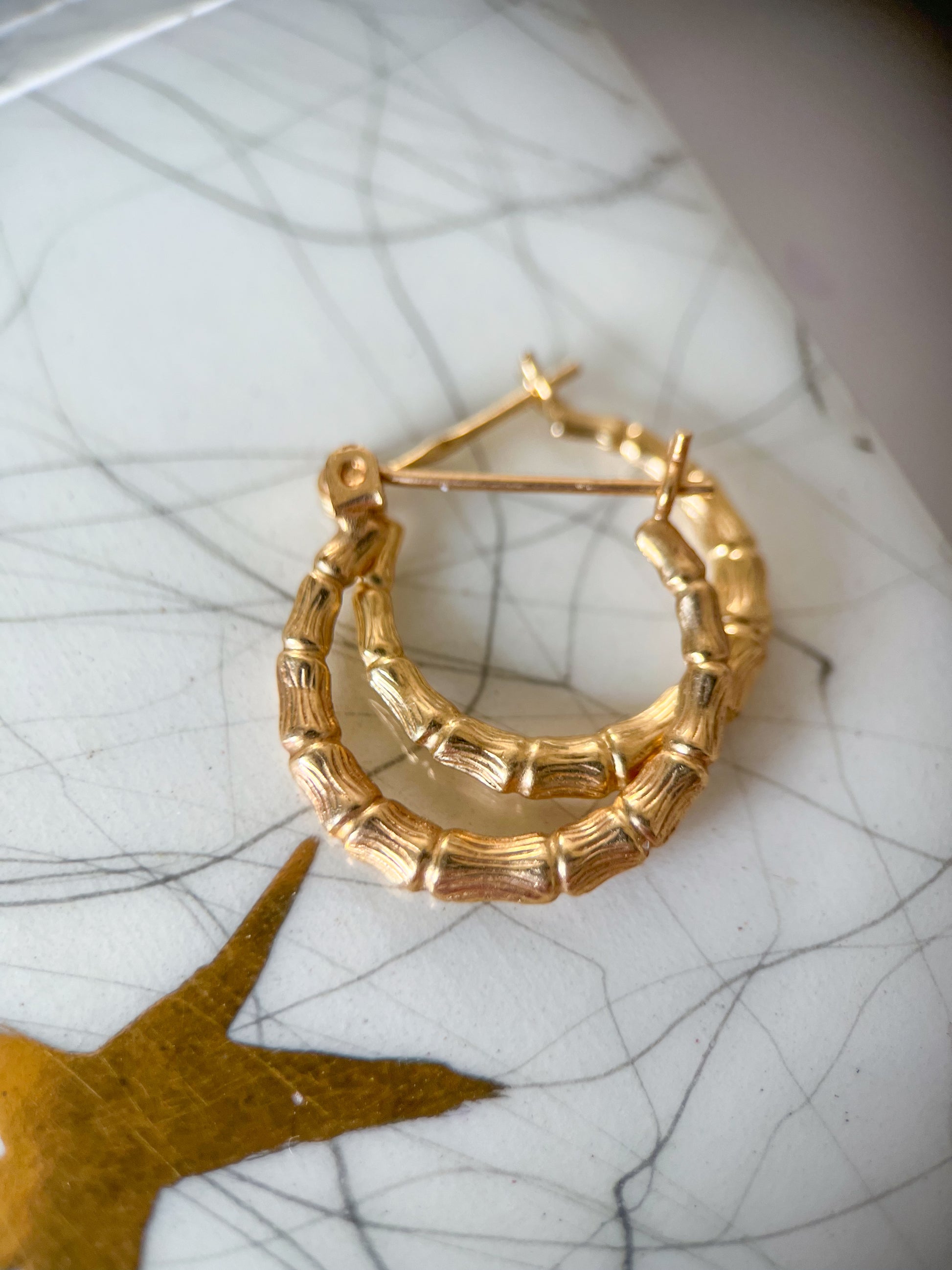 Vintage Bamboo 14k Yellow Gold Hoop Earrings