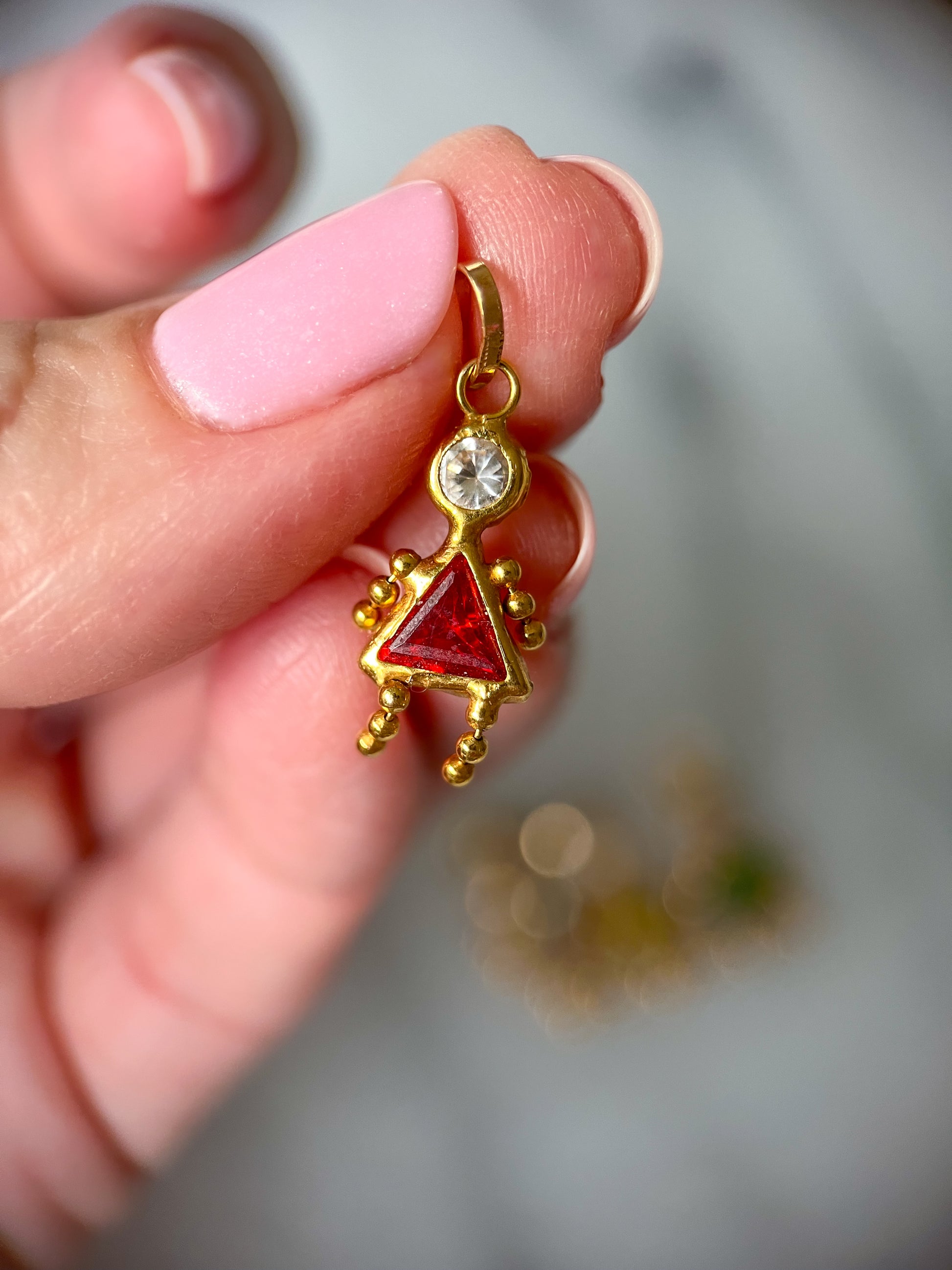 Adorable, vintage red girl charm! Charm is made of 14k yellow gold and CZ. Chain not included.