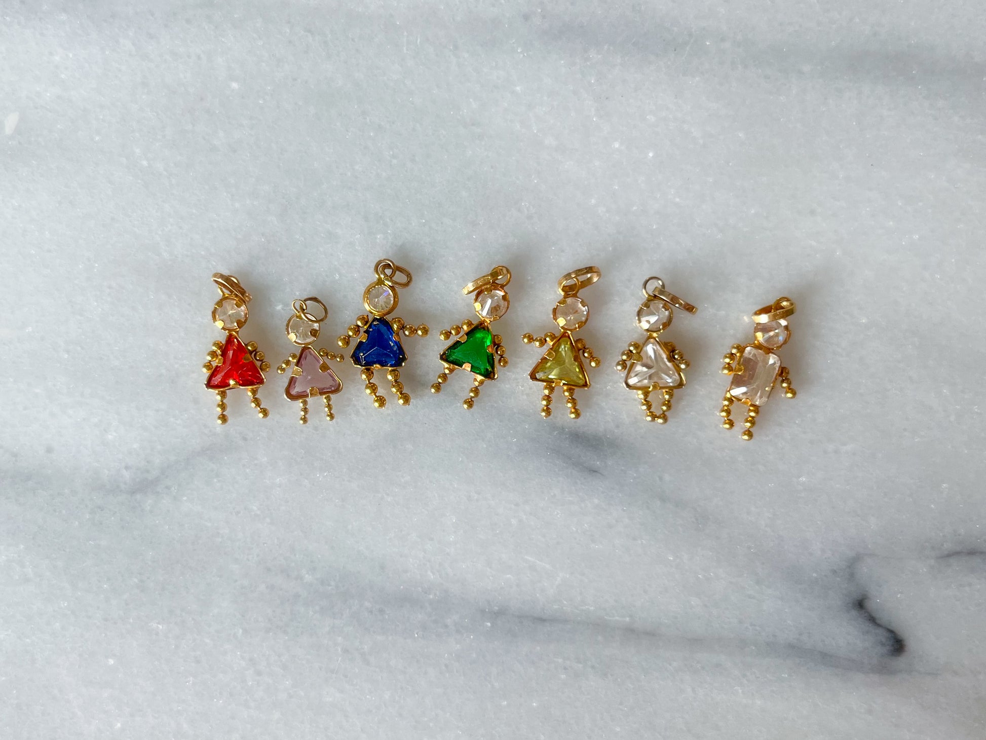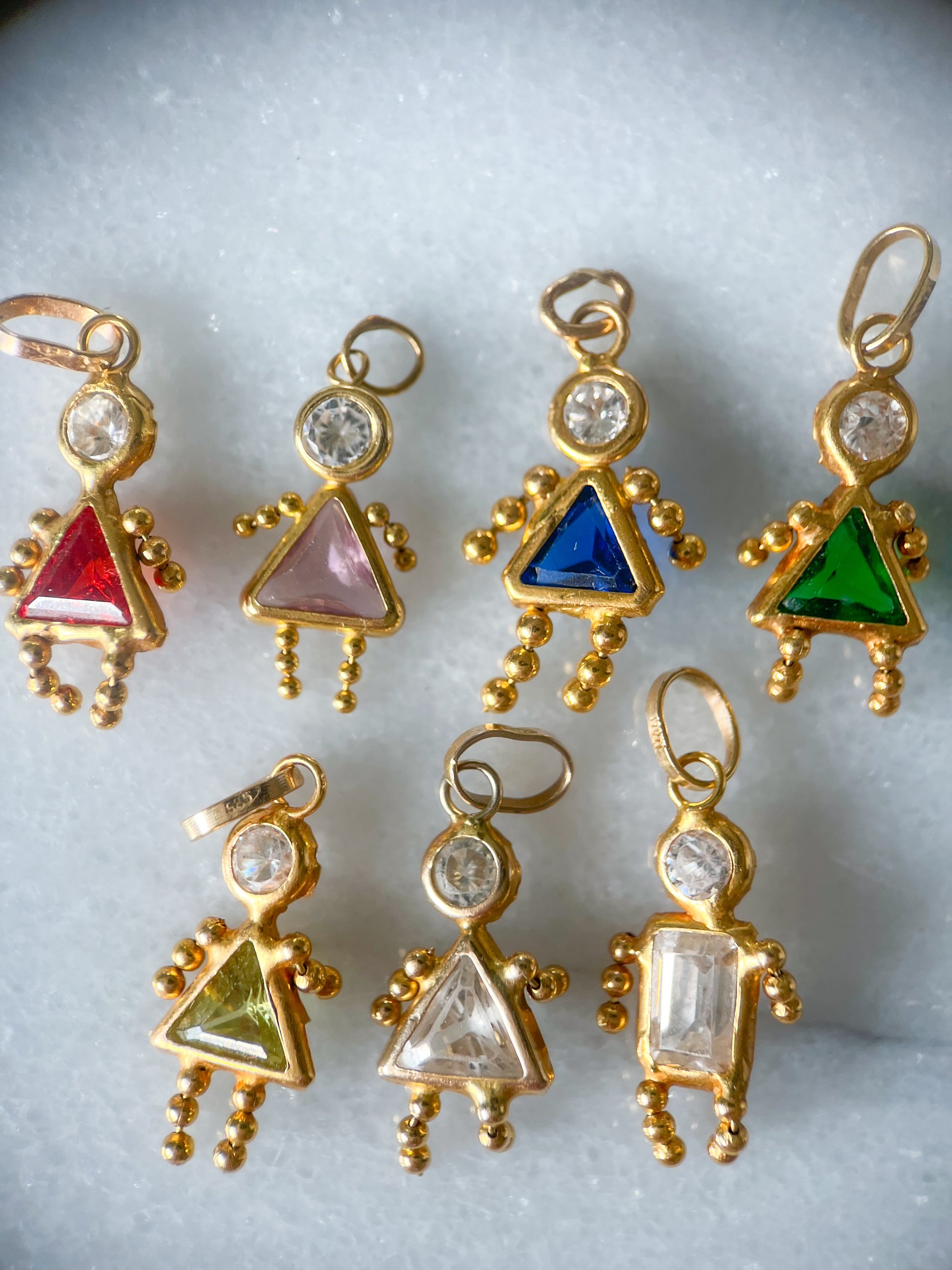 Vintage Red Girl Birthstone 14k Yellow Gold Charm