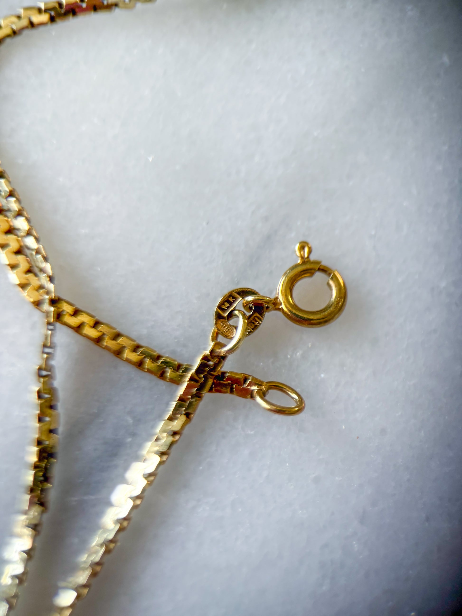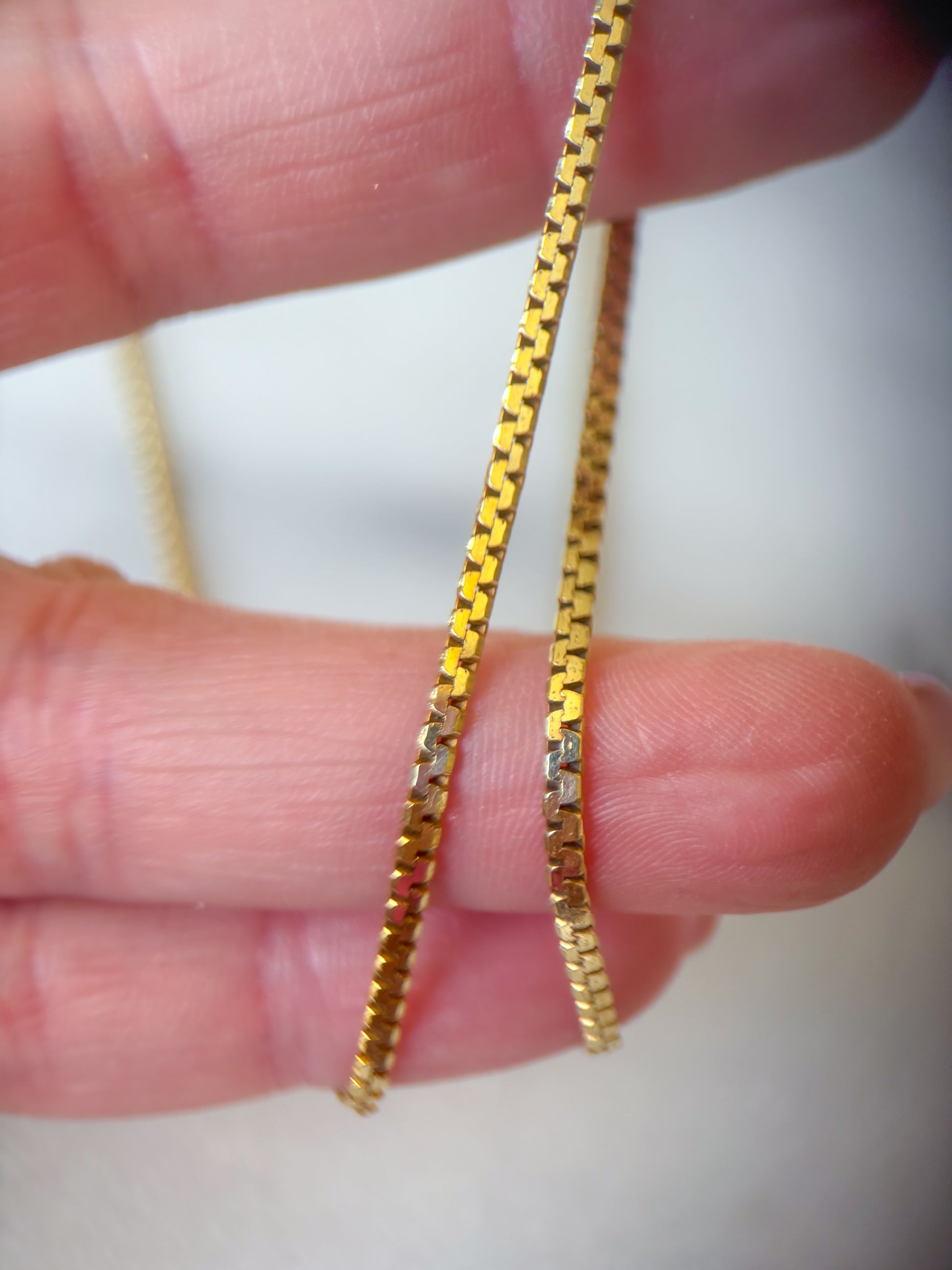 Vintage, 14k yellow gold, Boston link chain. This chain is 18 inches long, 2 mm wide and weighs over 6 grams.