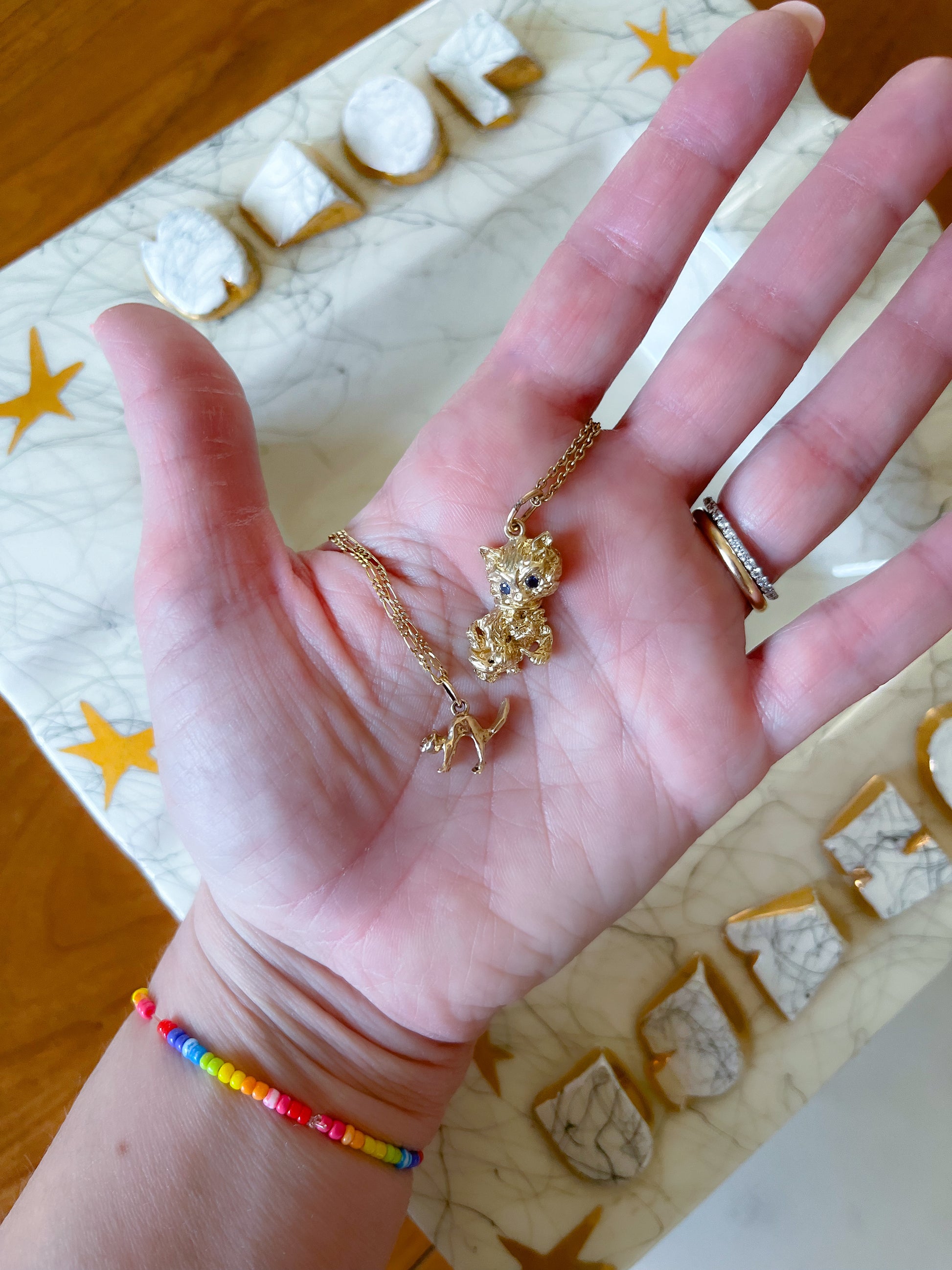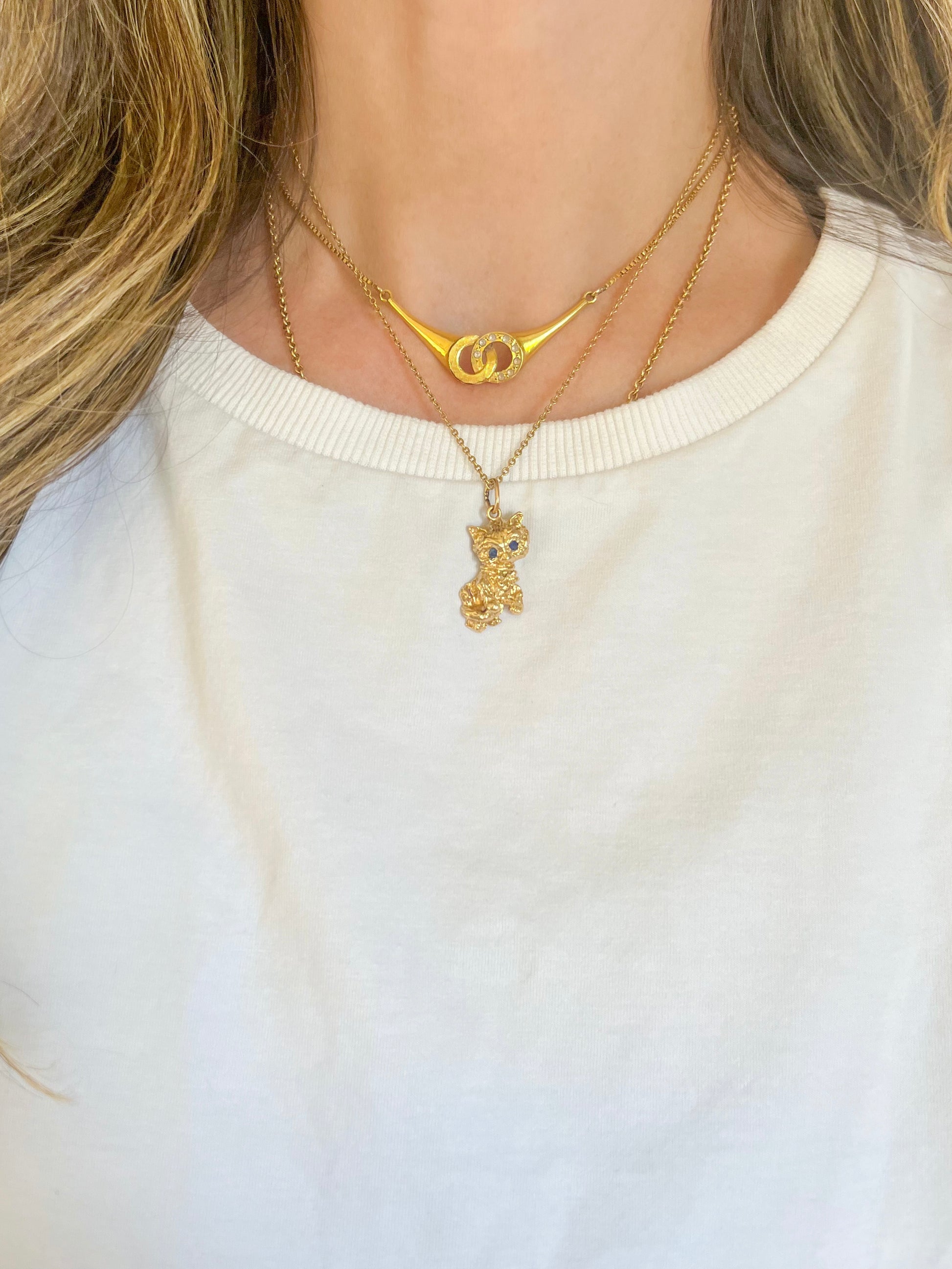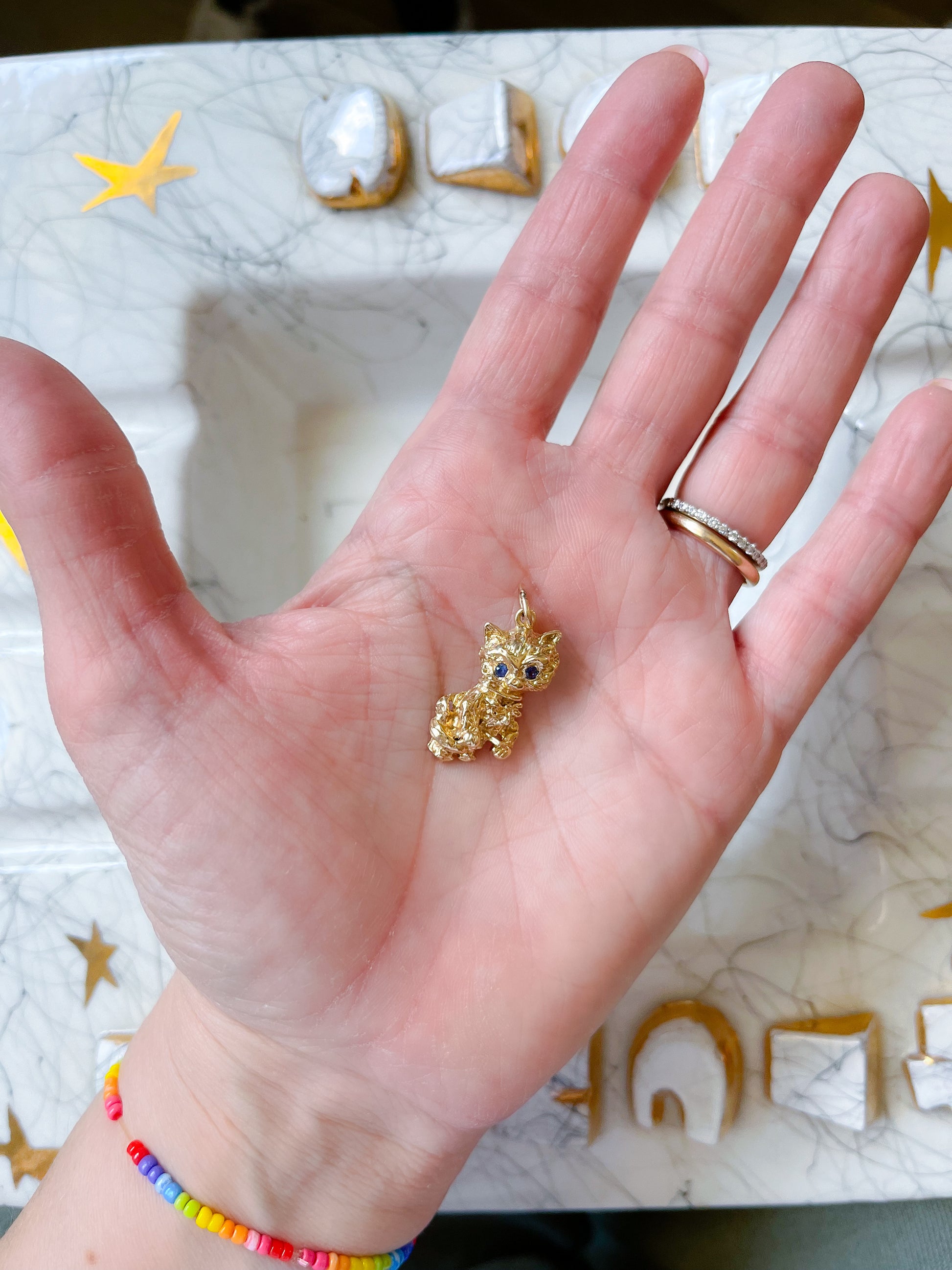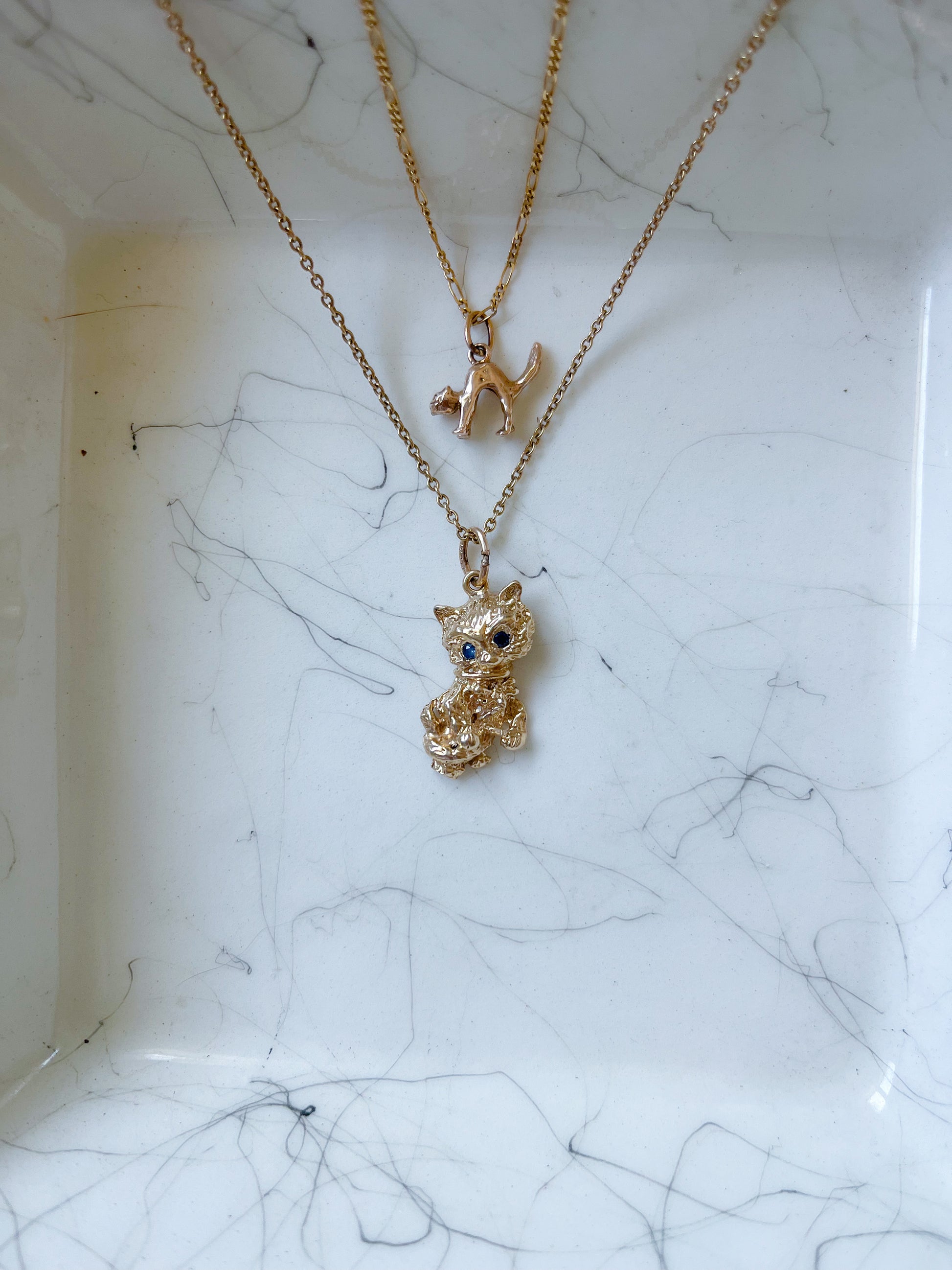 Vintage Cat with Synthetic Sapphire Eyes in 14k Yellow Gold Charm