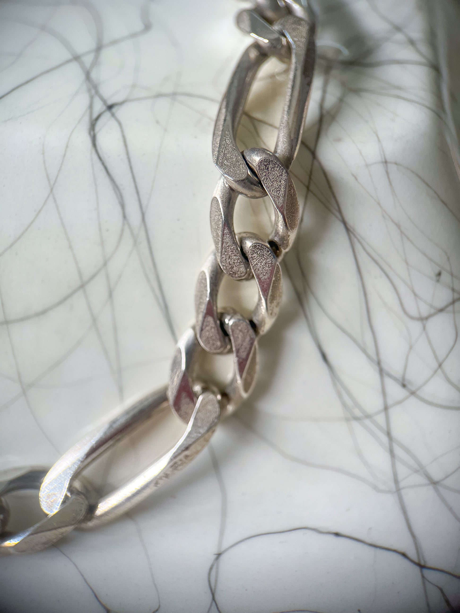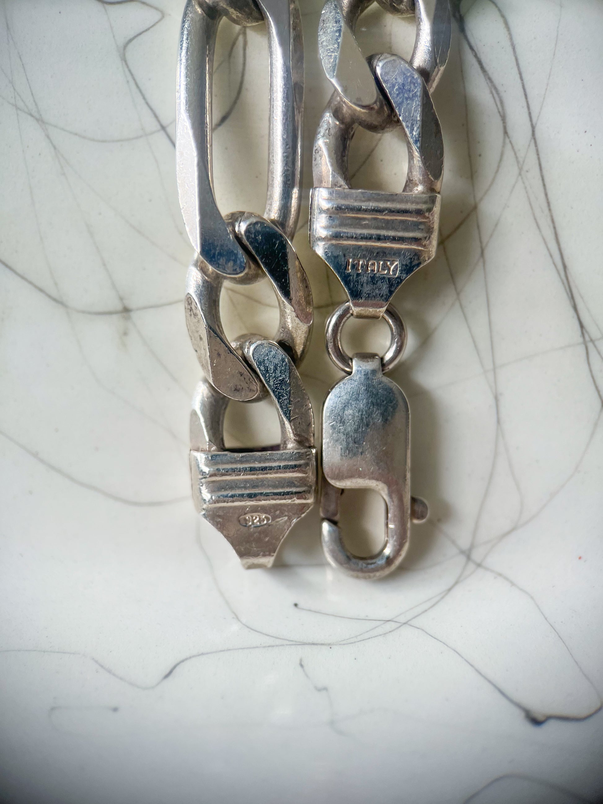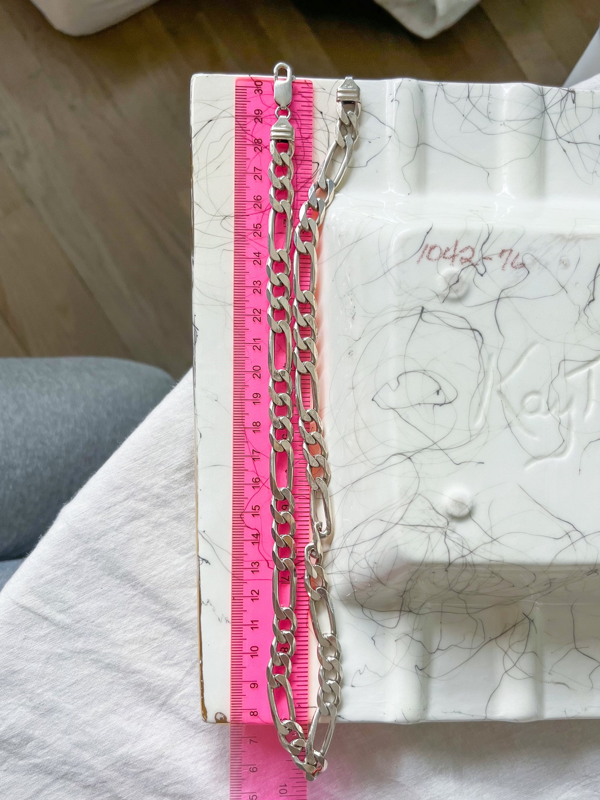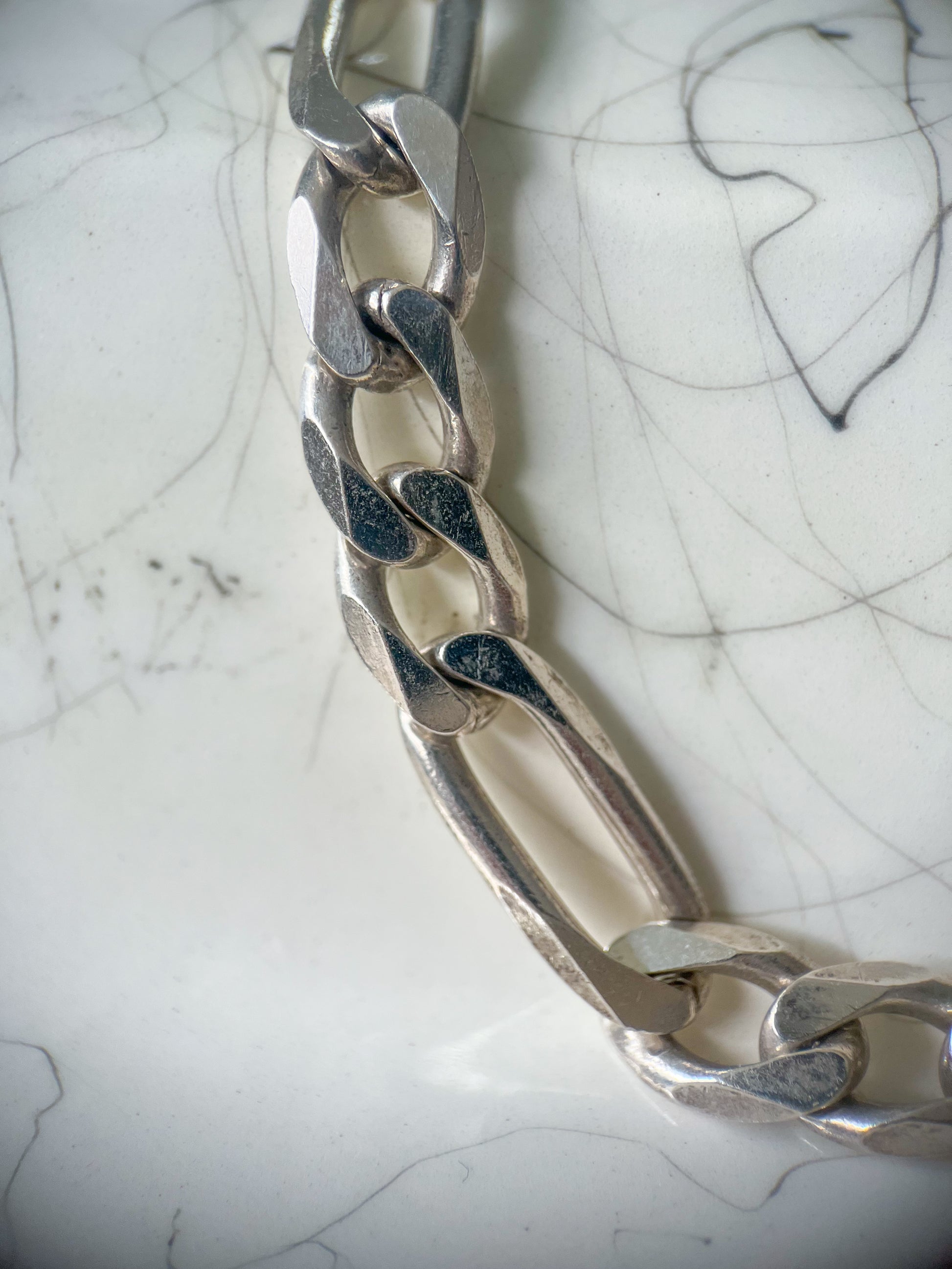Perfect, vintage, chunky figaro chain! This sterling silver chain is 20 inches long and weighs over 60 grams. Circa 1990s.