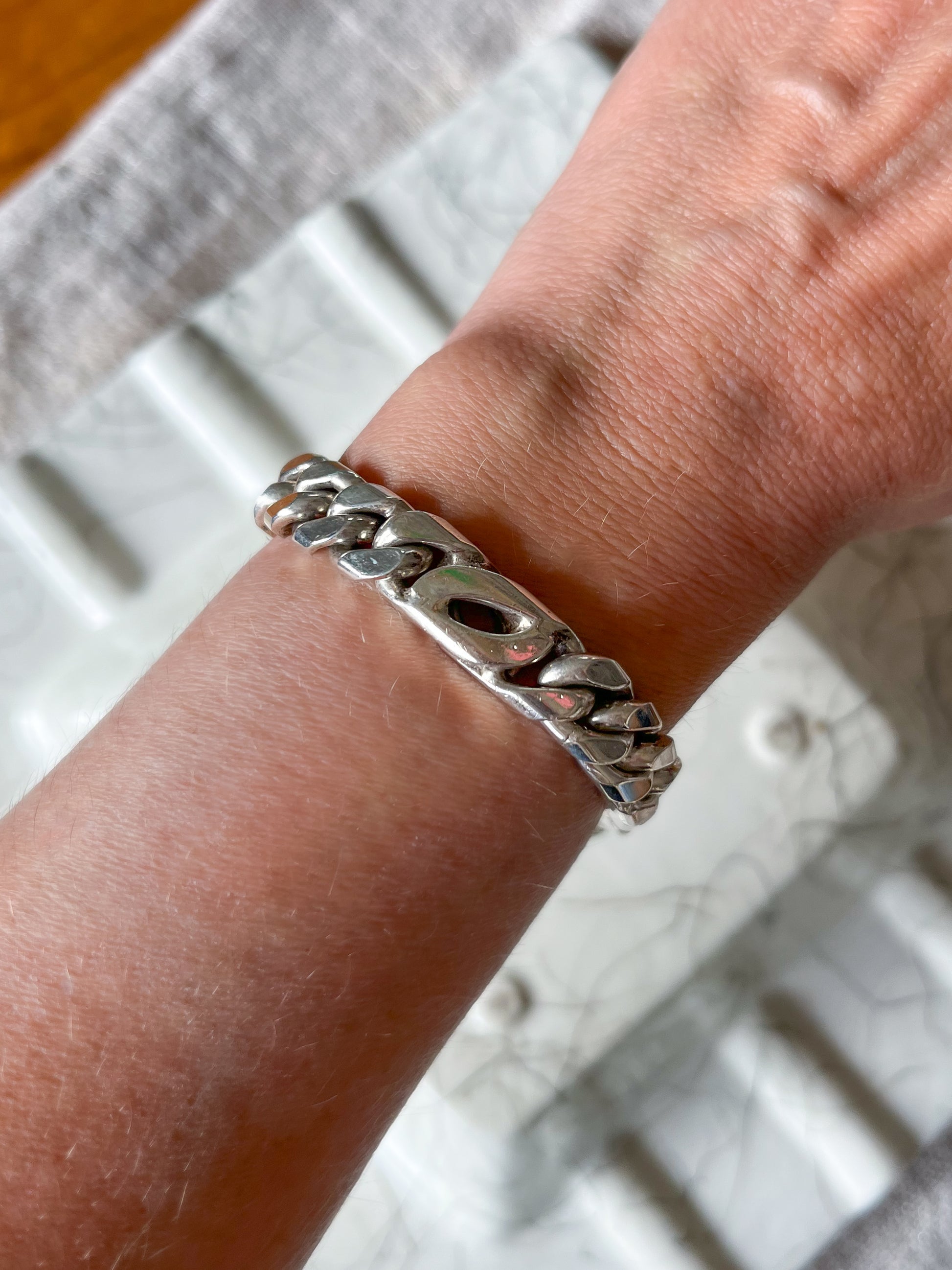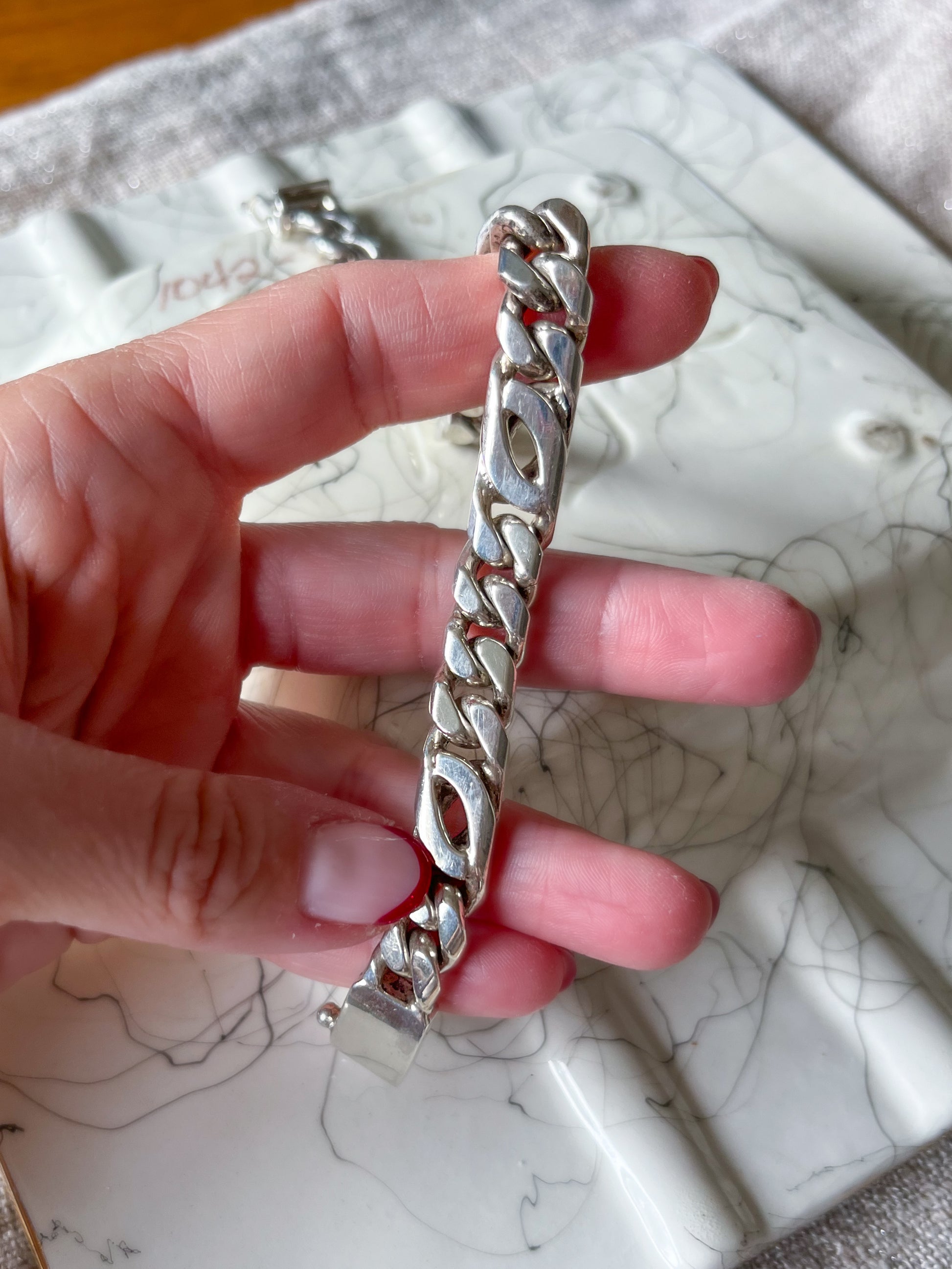Vintage Super Chunky Figaro Chain Sterling Silver 8.5 Inch Bracelet, circa 1990s