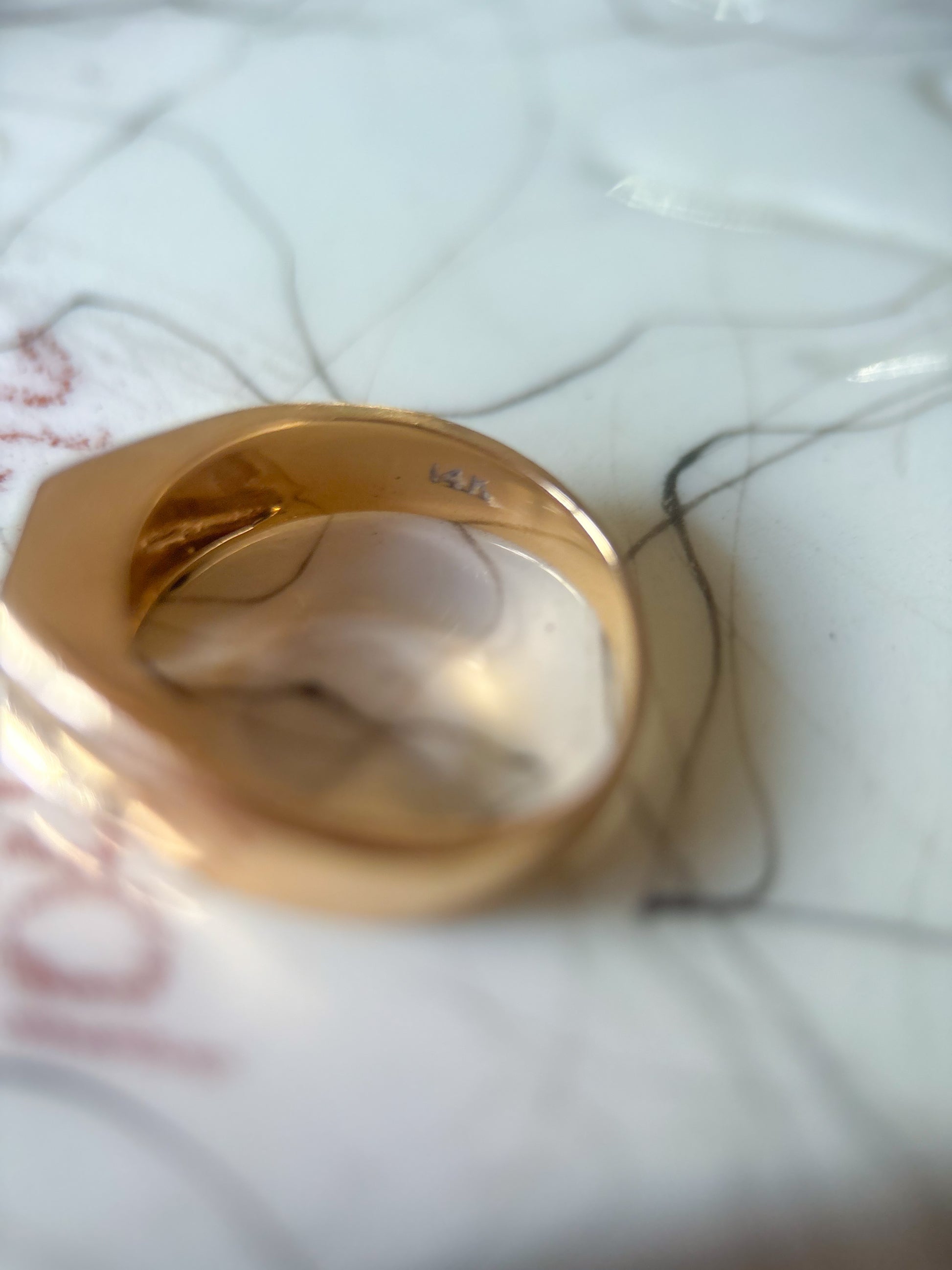 In love with this vintage, 14k yellow gold chunky ring featuring a diamond R. LOVE IT! Ring is a size 6 and can be resized at your local jeweler.