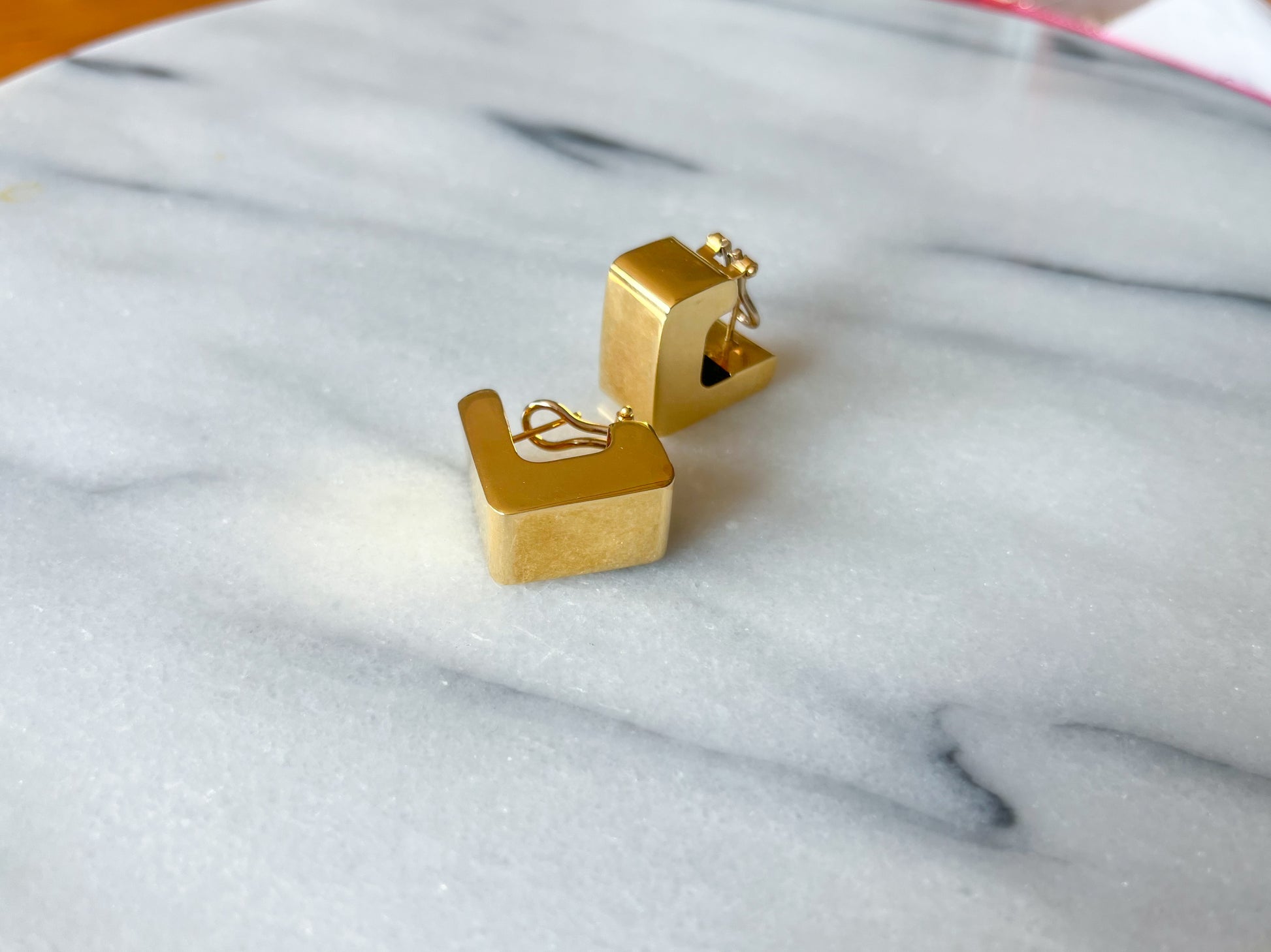 Vintage Chunky Squared 14k Yellow Gold Earrings