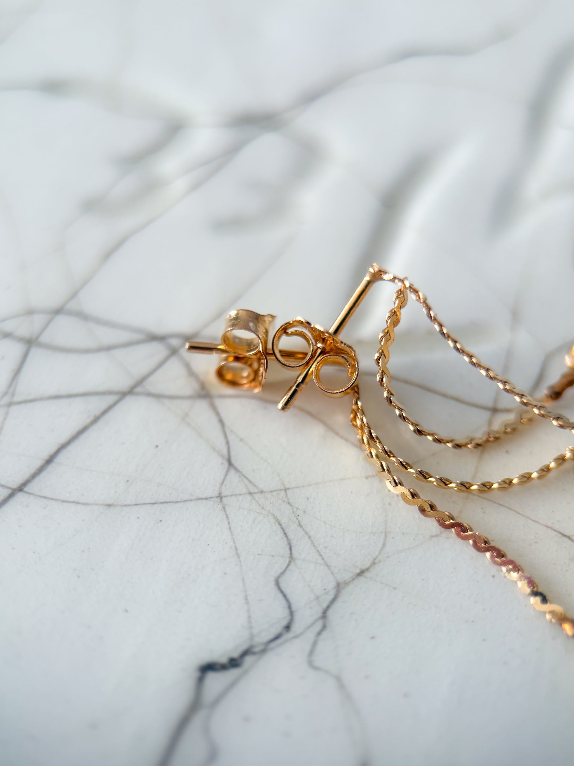OBSESSED! Totally loving these 14k yellow gold, vintage, dangle earrings! Made of serpentine chain attached to rope chain. Simply amazing.