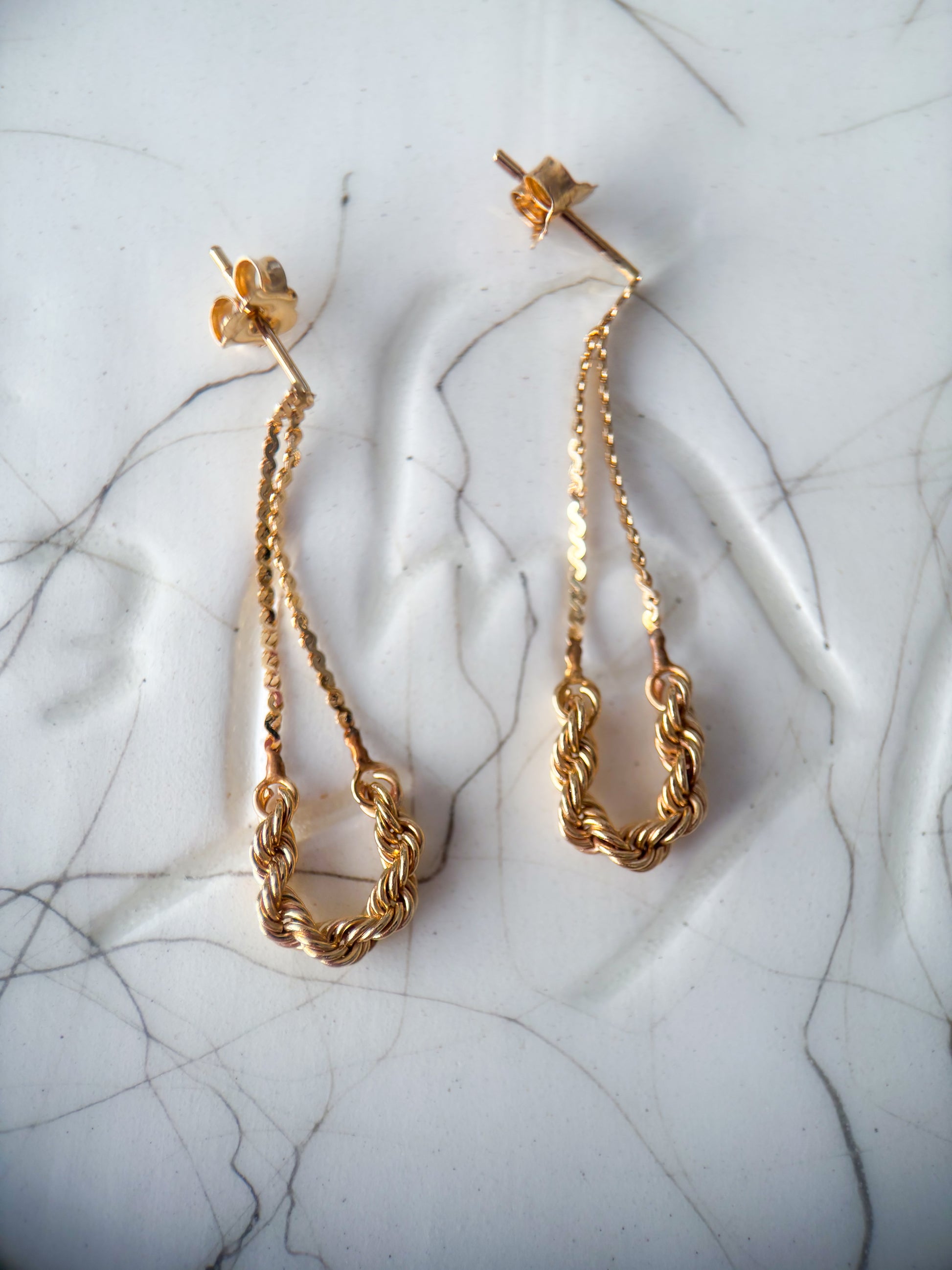 Vintage Dangle Rope 14k Yellow Gold Earrings