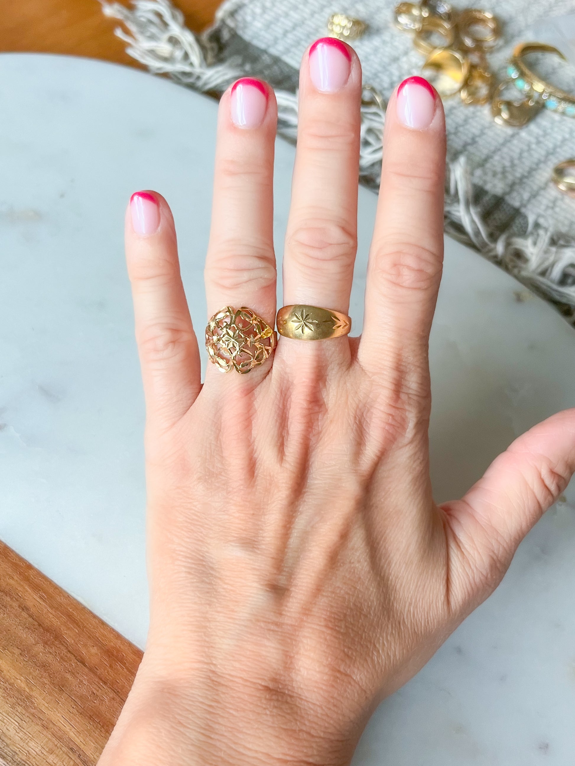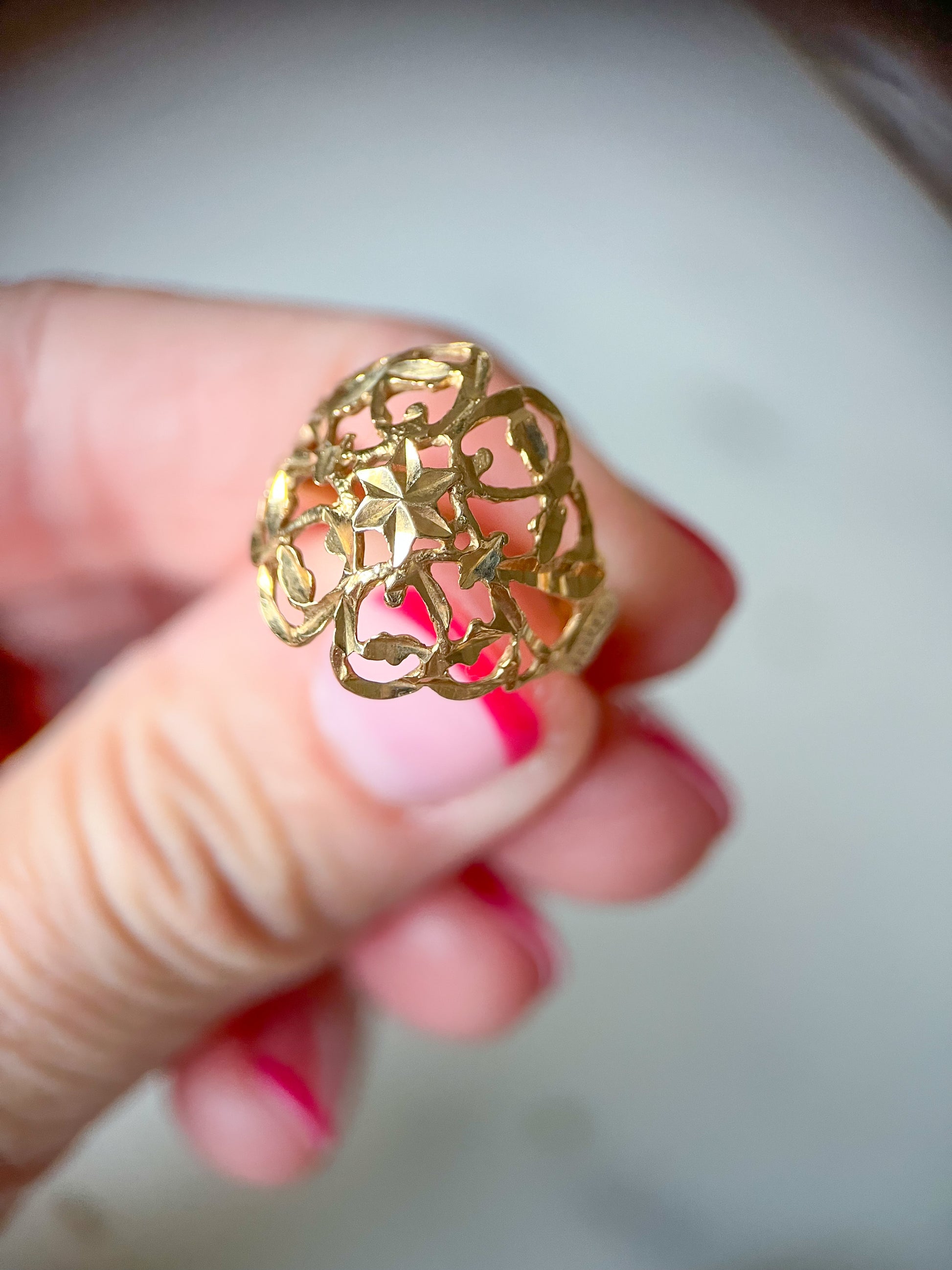 Very cool, vintage, 14k yellow gold large, open dome decorative ring.