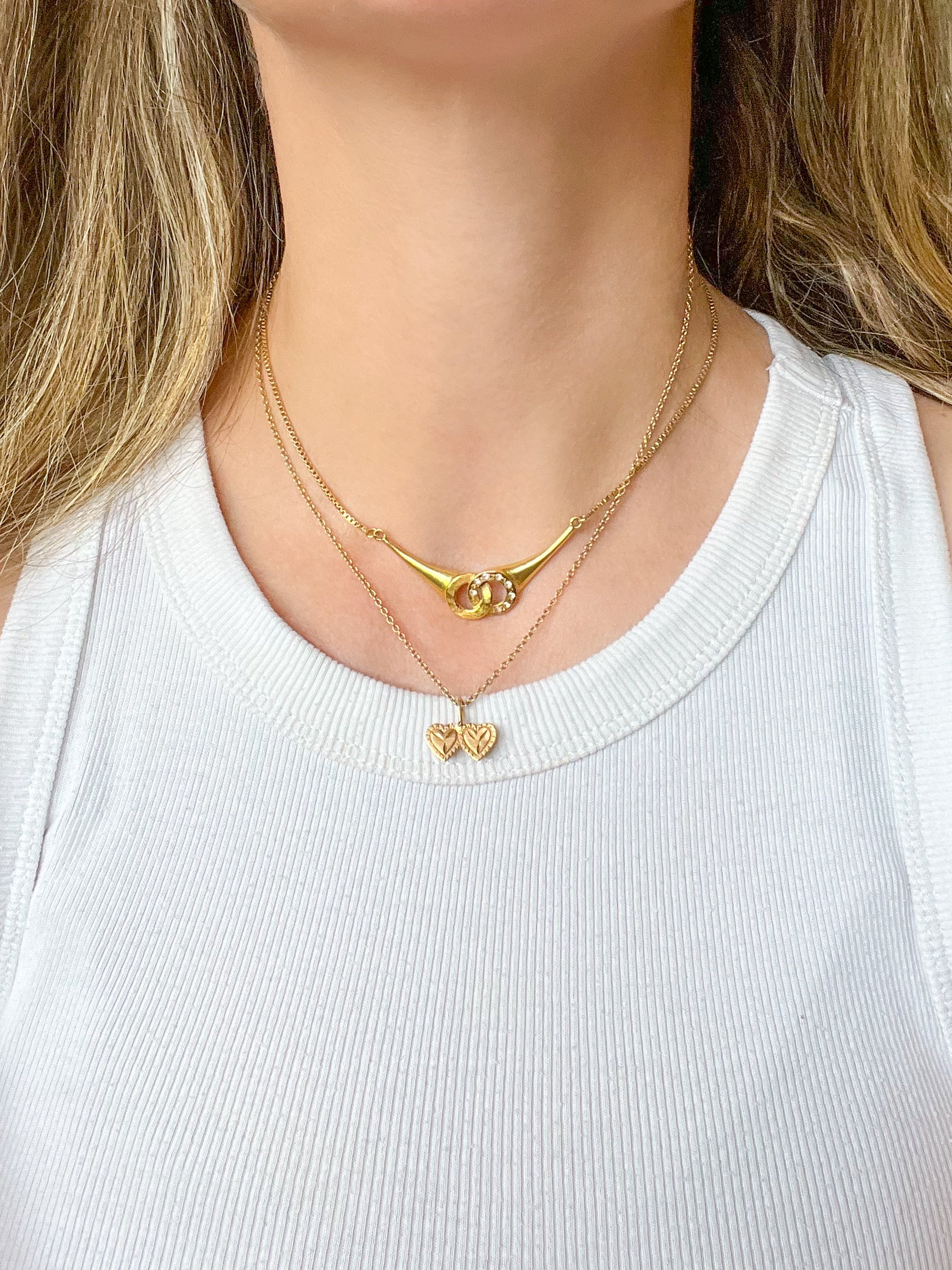 Adorable, vintage, double heart, 14k yellow gold charm! Chain not included.