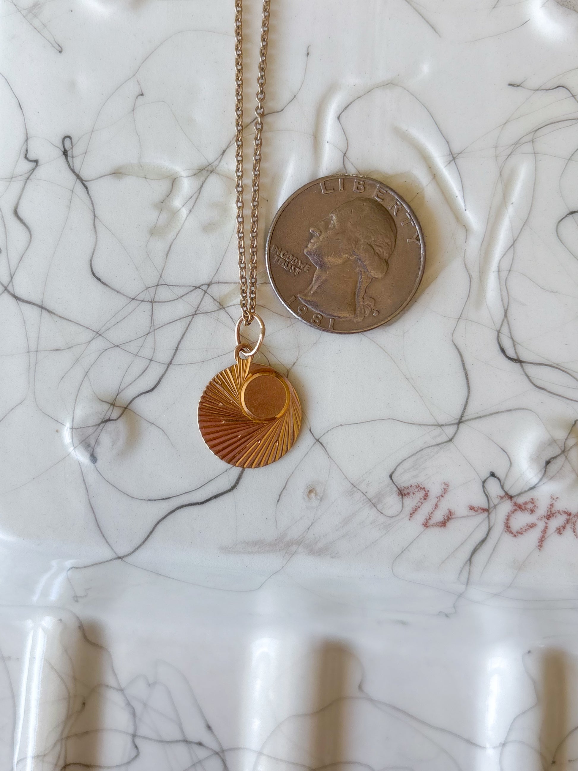 Vintage Engine Turned Circle 14k Yellow Gold Charm