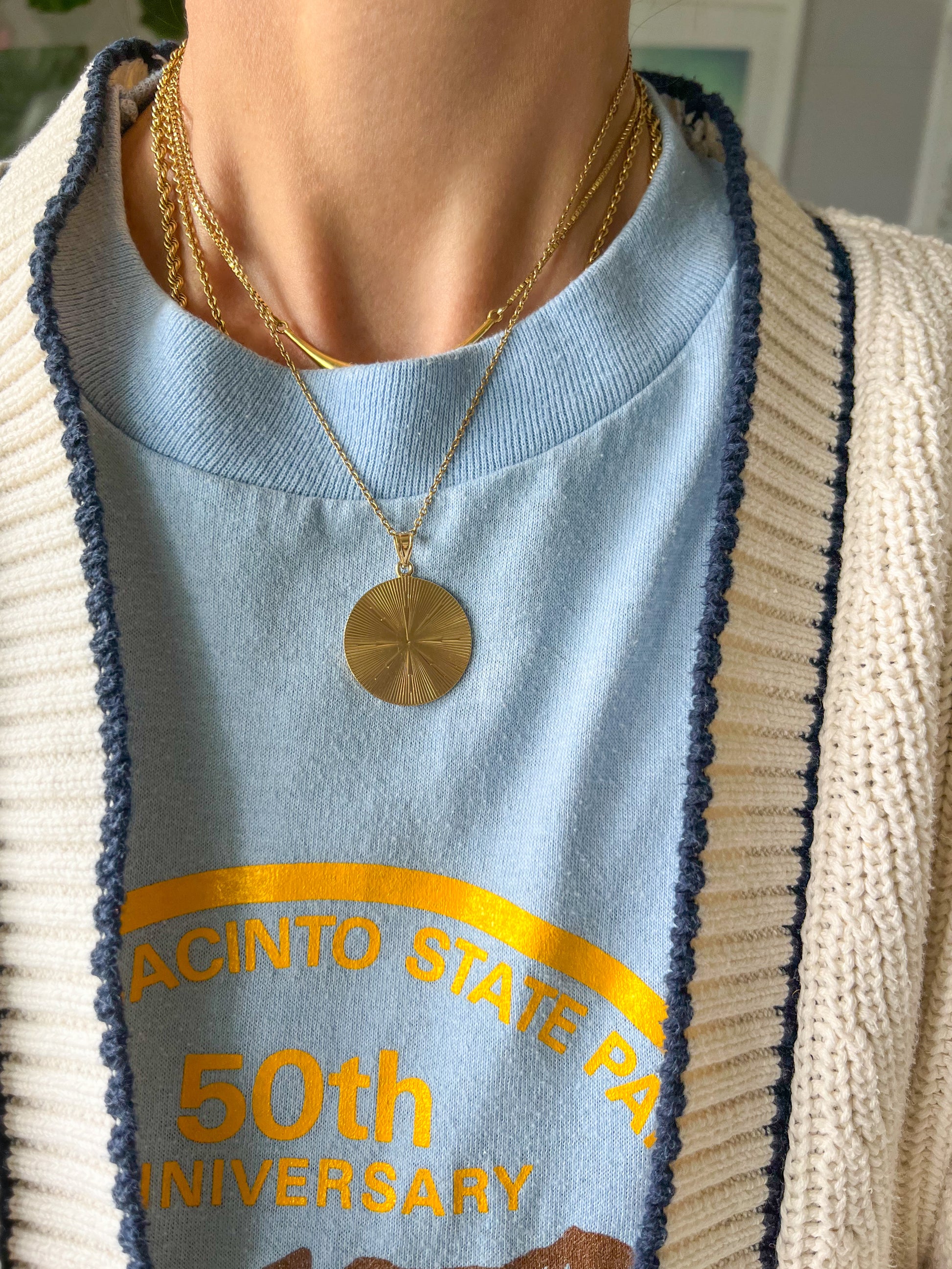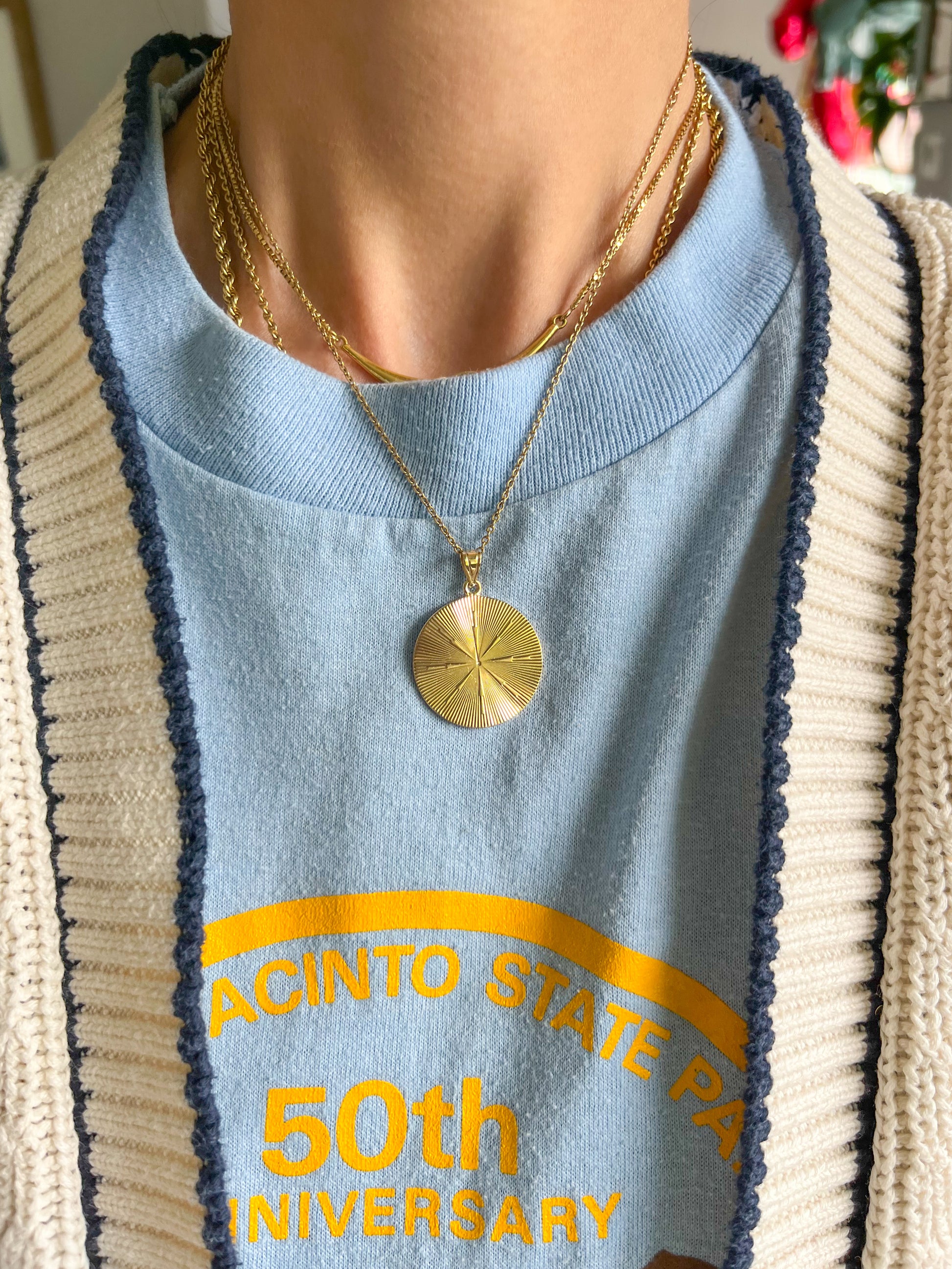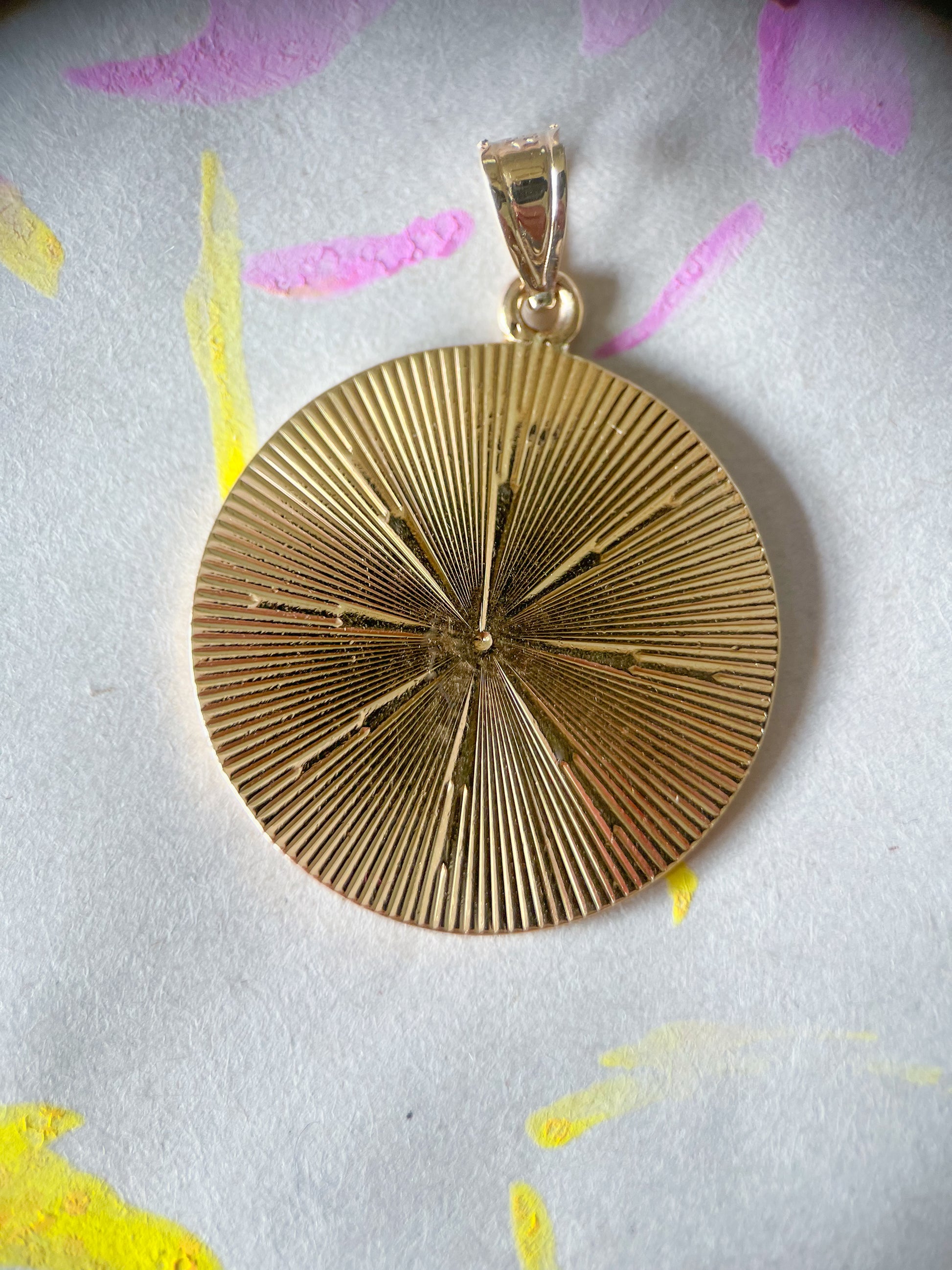 Absolutely insane, 14k yellow gold engine turned disk charm. Perfect as is, or great for engraving. The back currently is engraved with 1950-1955. Chain not included.