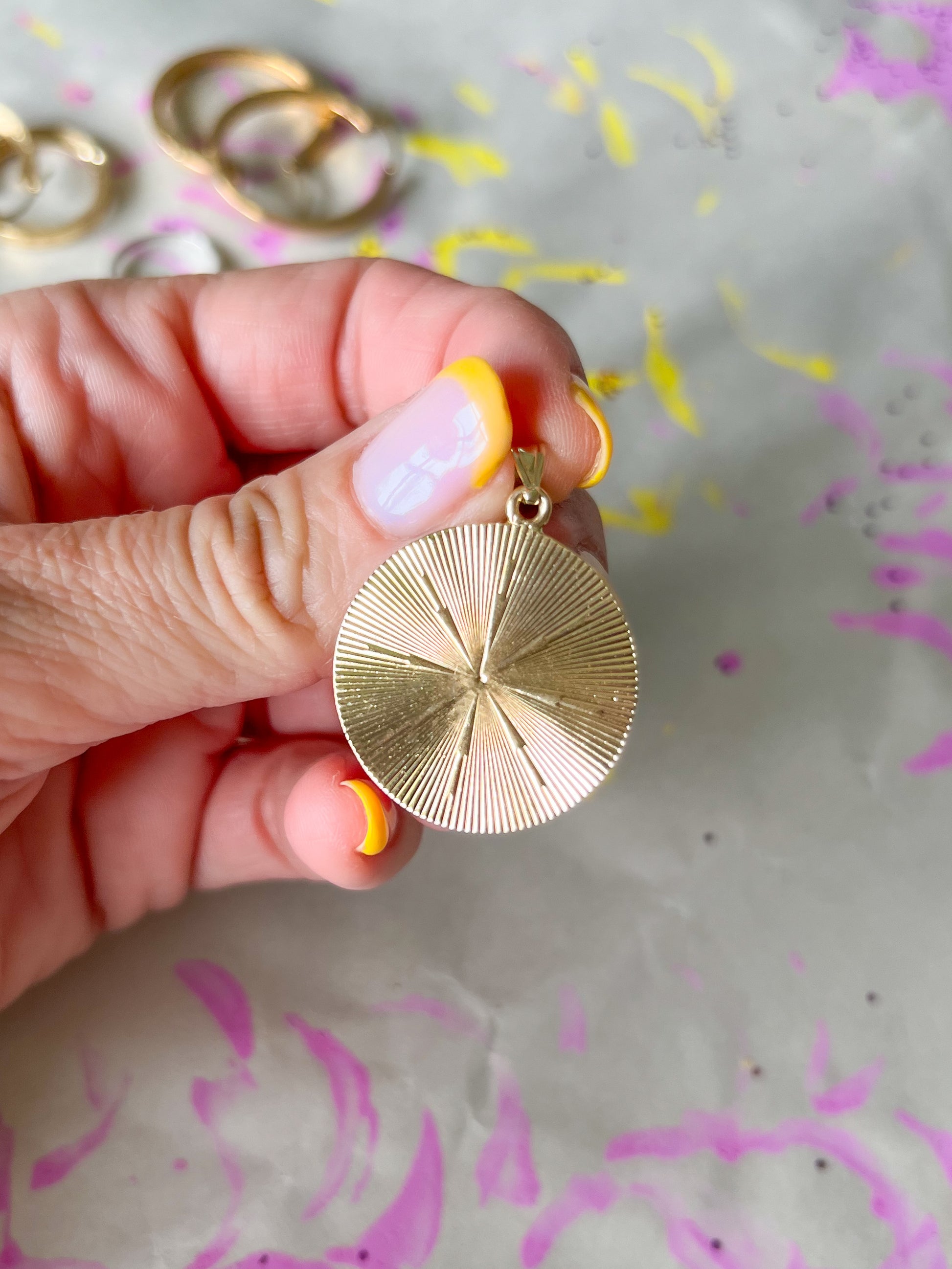 Vintage Engine Turned Disk 14k Yellow Gold Charm - Perfect as is or for Engraving