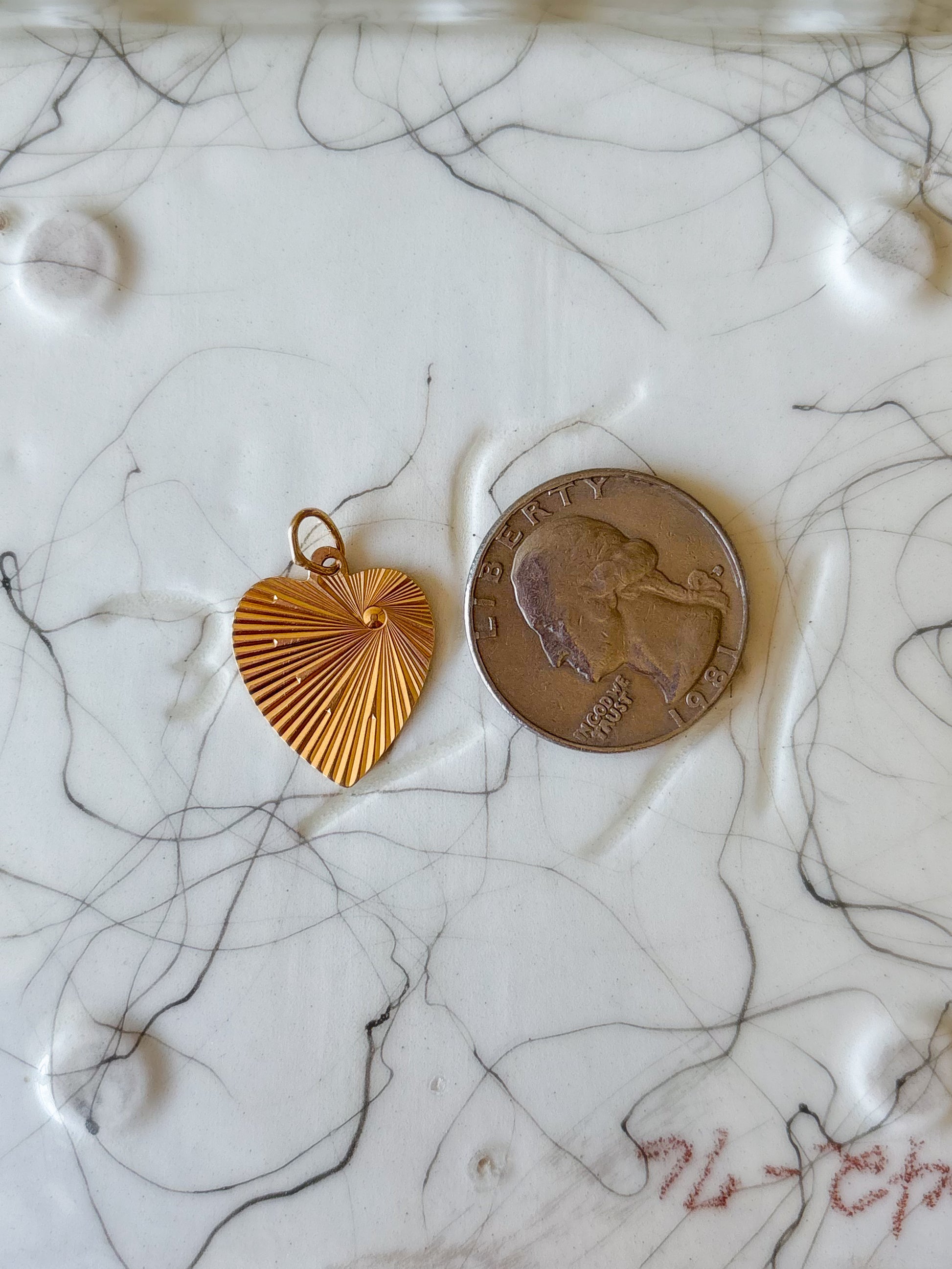 Vintage Engine Turned Heart 14k Yellow Gold Charm, Engraved: "Honor Thy Father and Thy Mother"