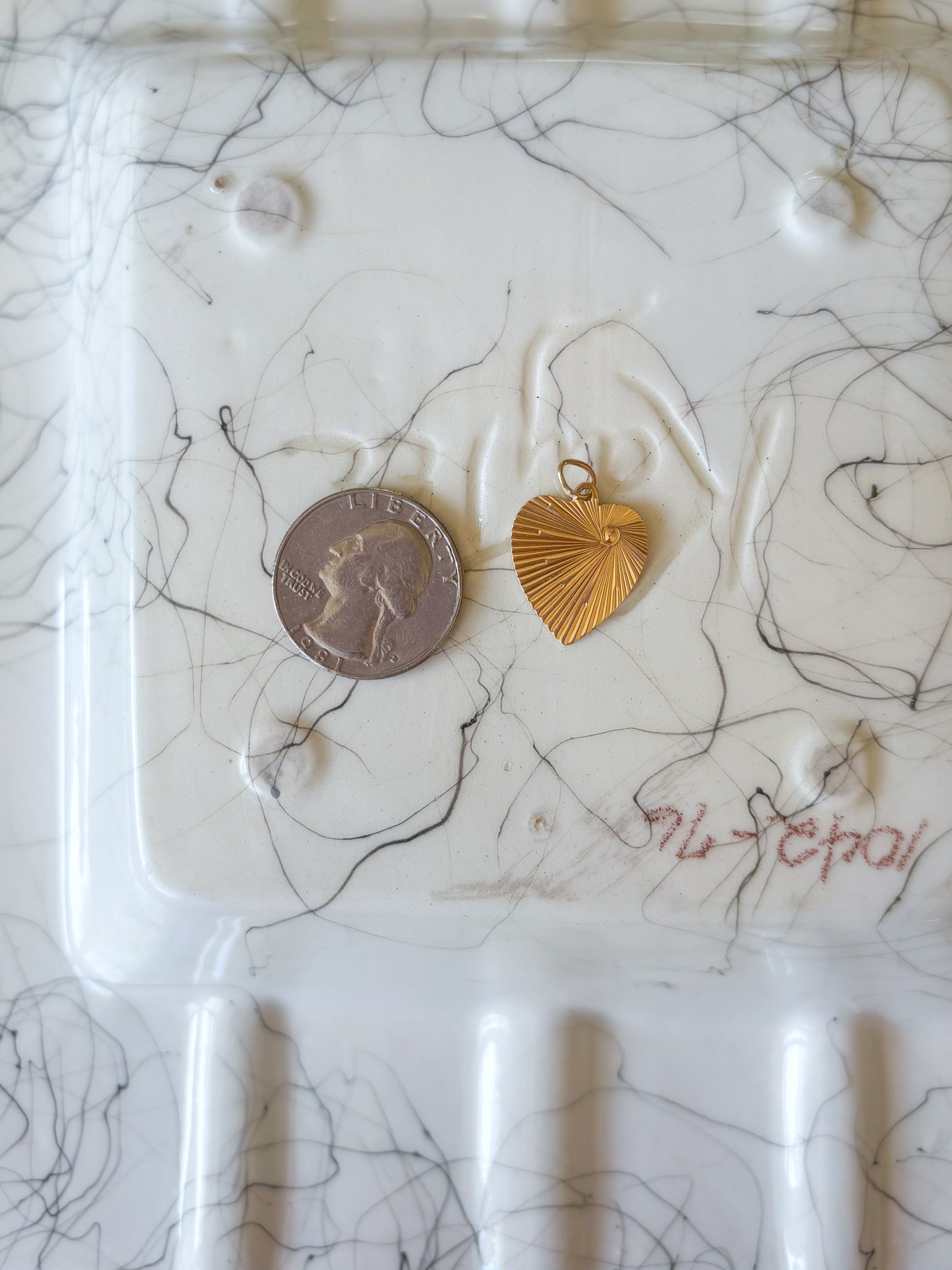 Vintage Engine Turned Heart 14k Yellow Gold Charm, Engraved: "Thou Shall Not Bear False Witness Against Thy Neighbor"