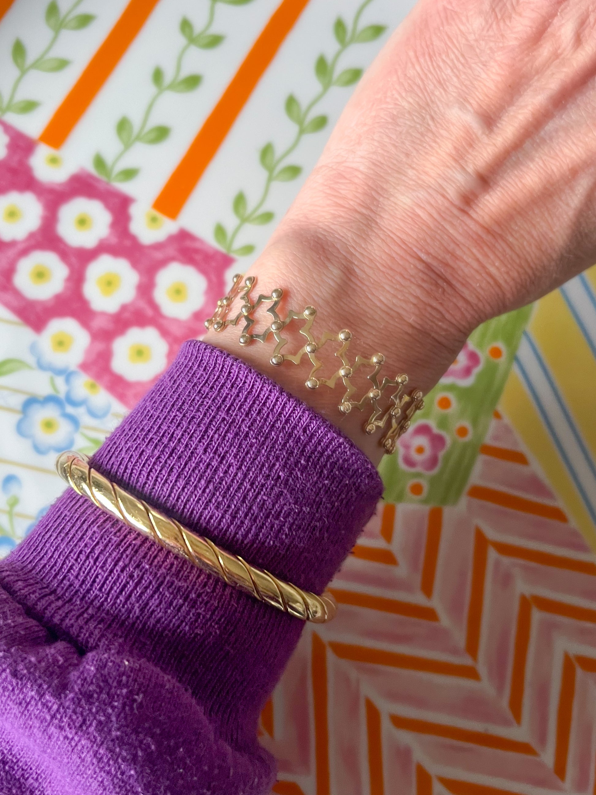 Super cool, vintage, 14k yellow gold flex bracelet. You can wear it tight on your wrist or loose. This is a really unique and original piece.