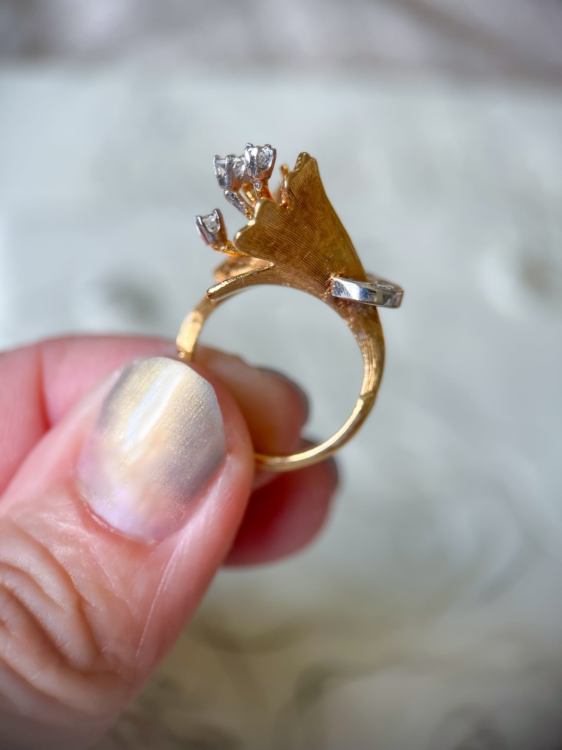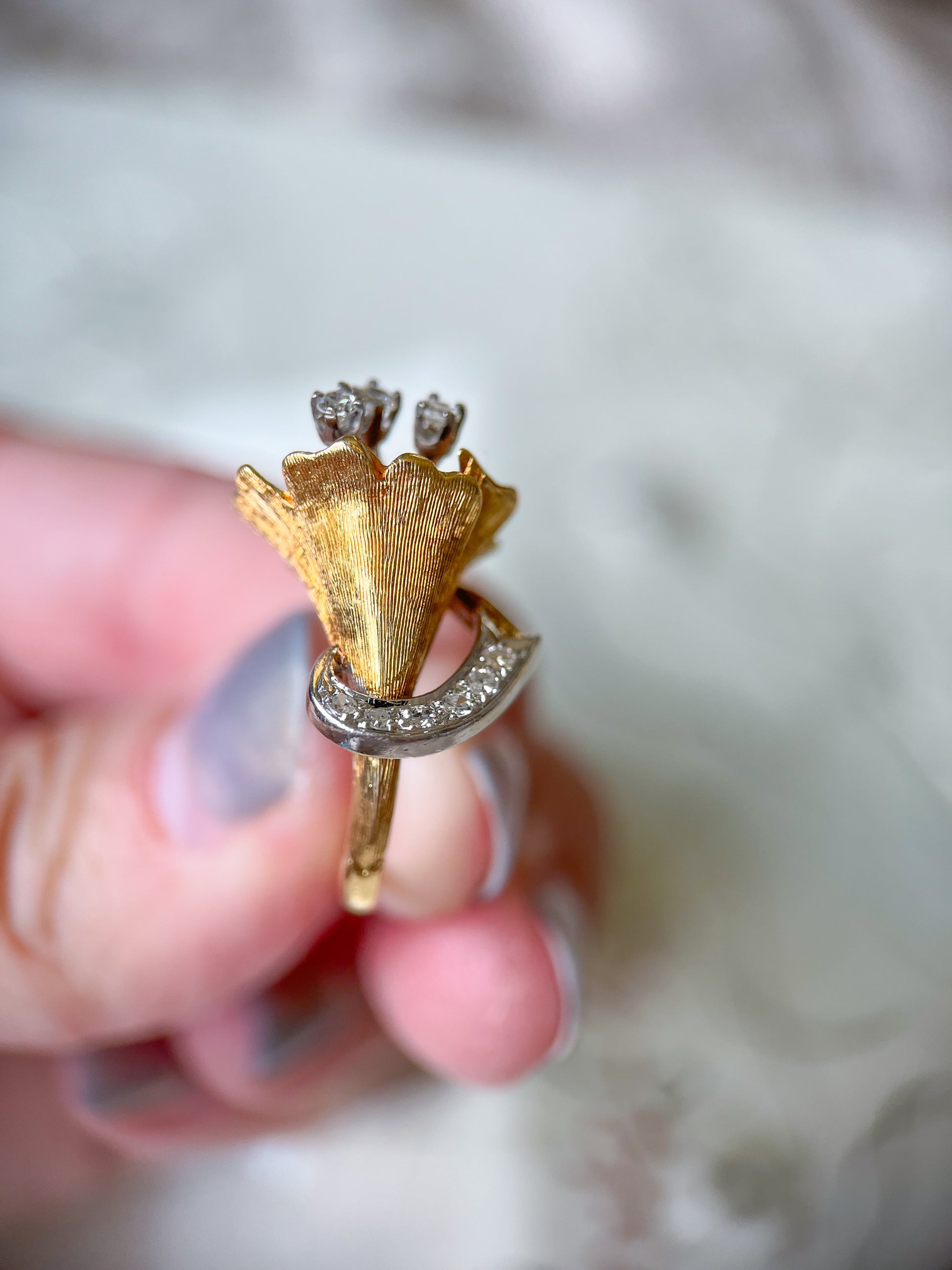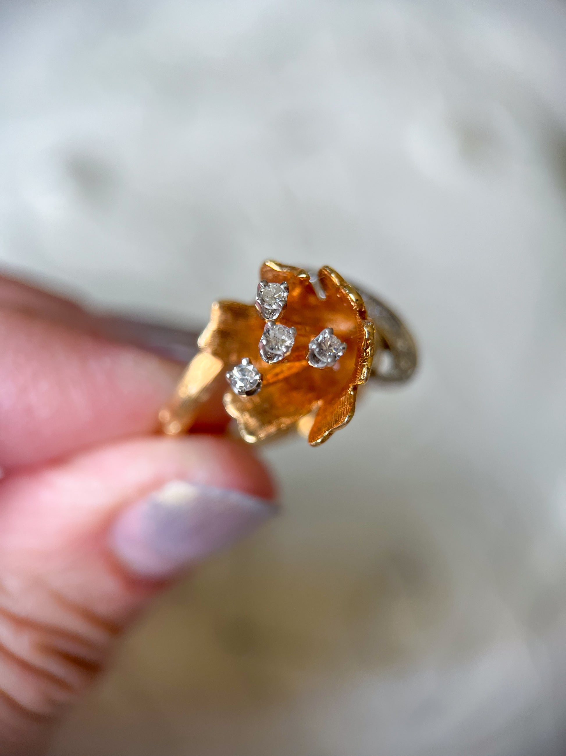 Vintage Flower Natural Diamond Rings in 18k Yellow Gold
