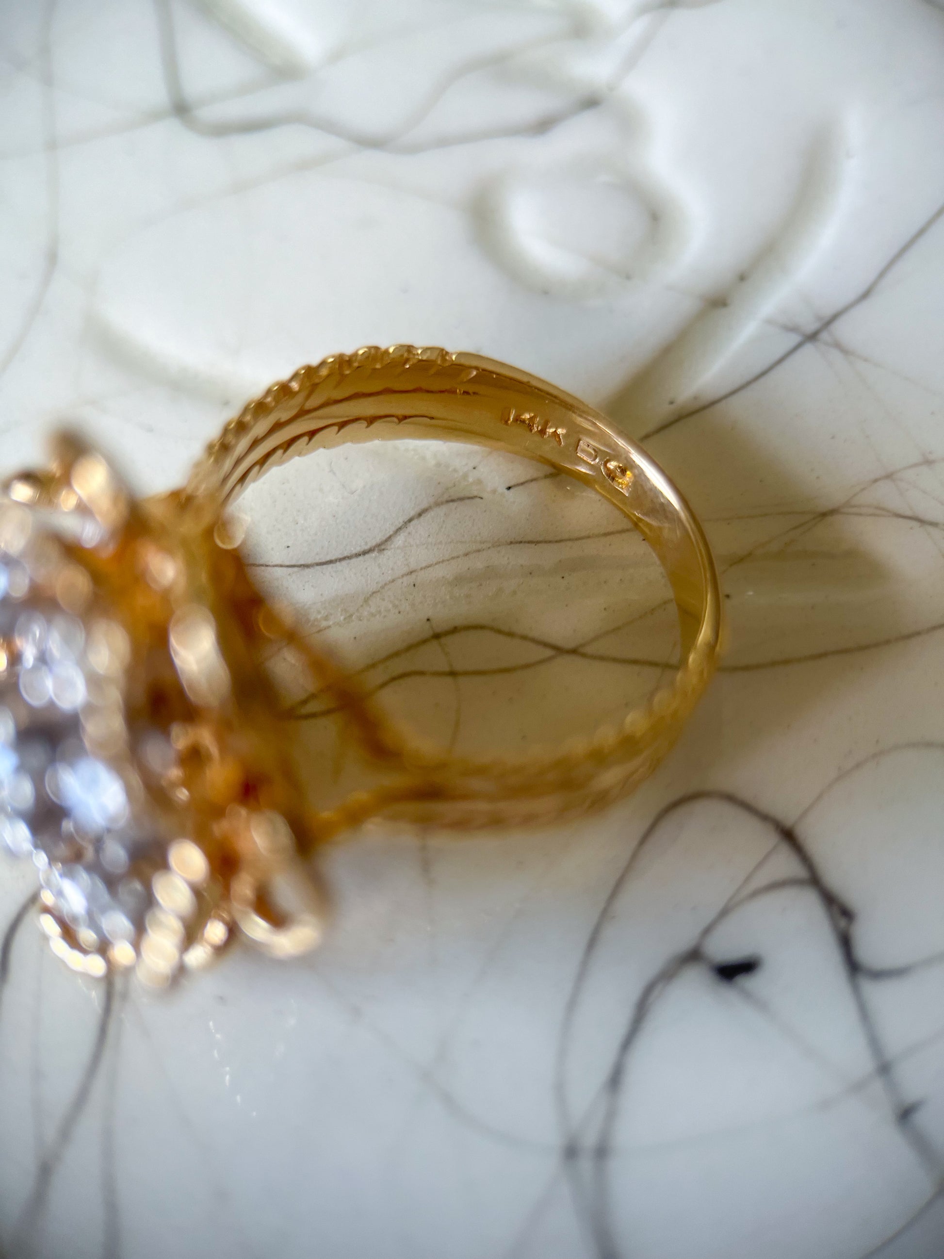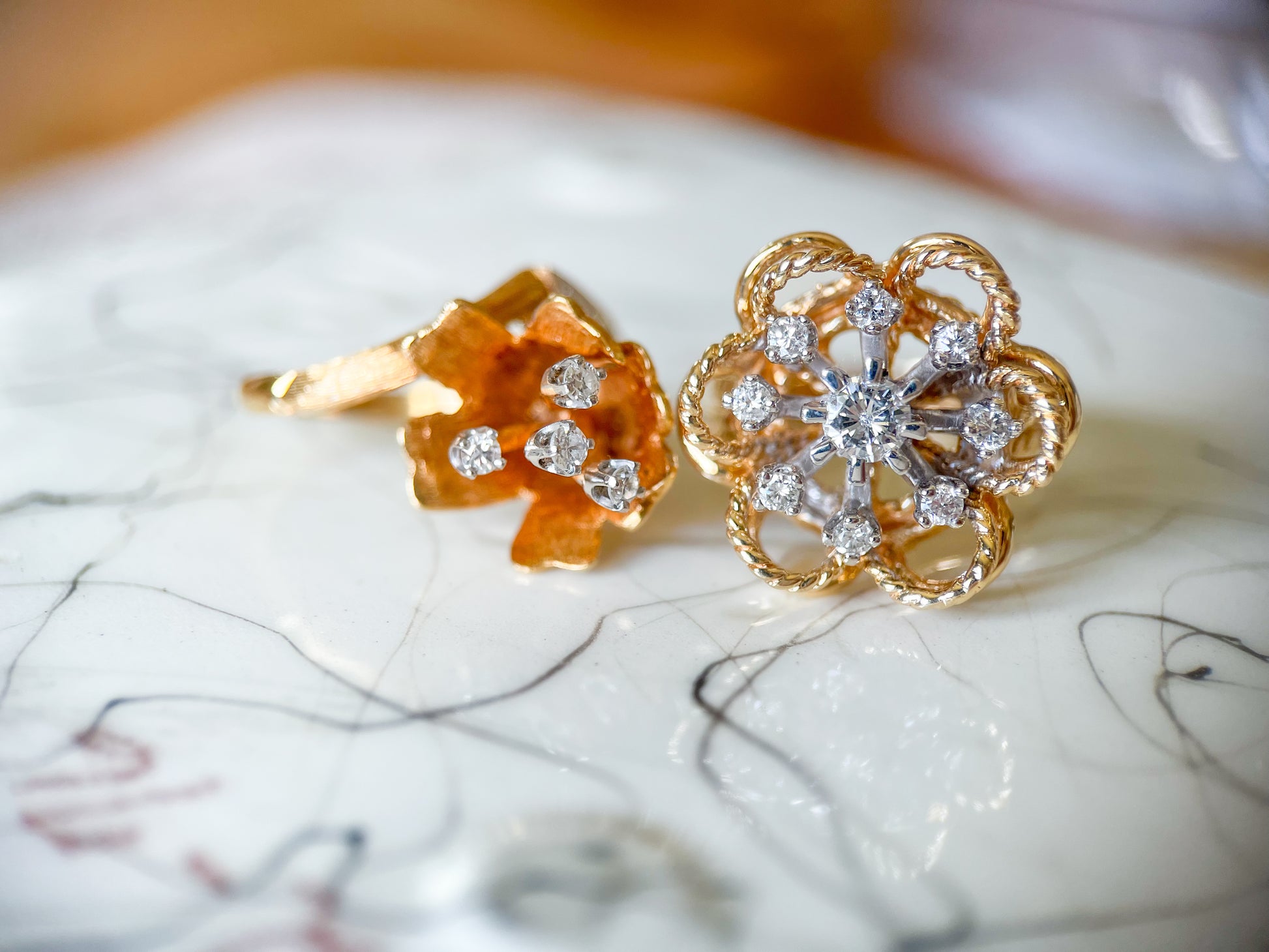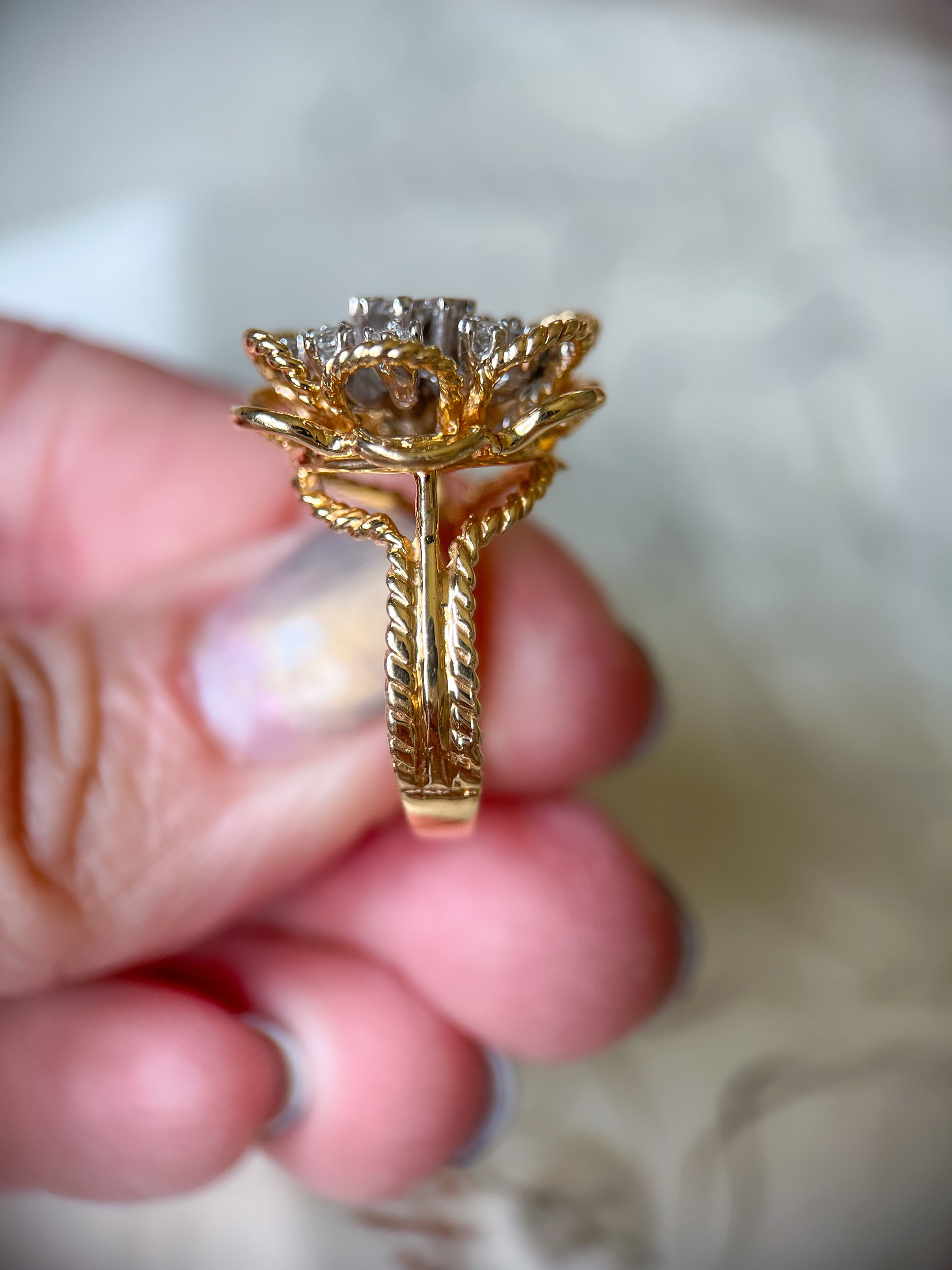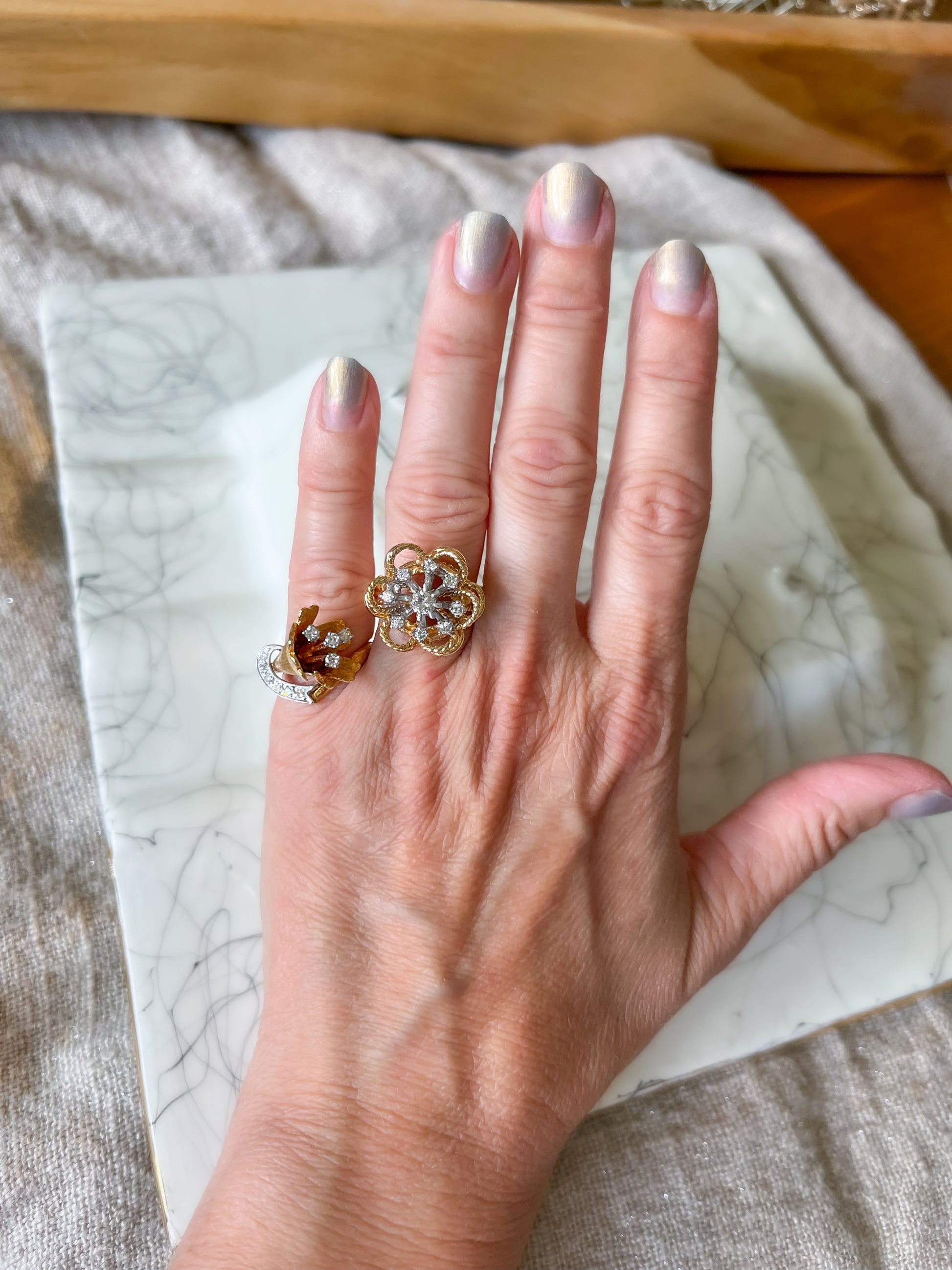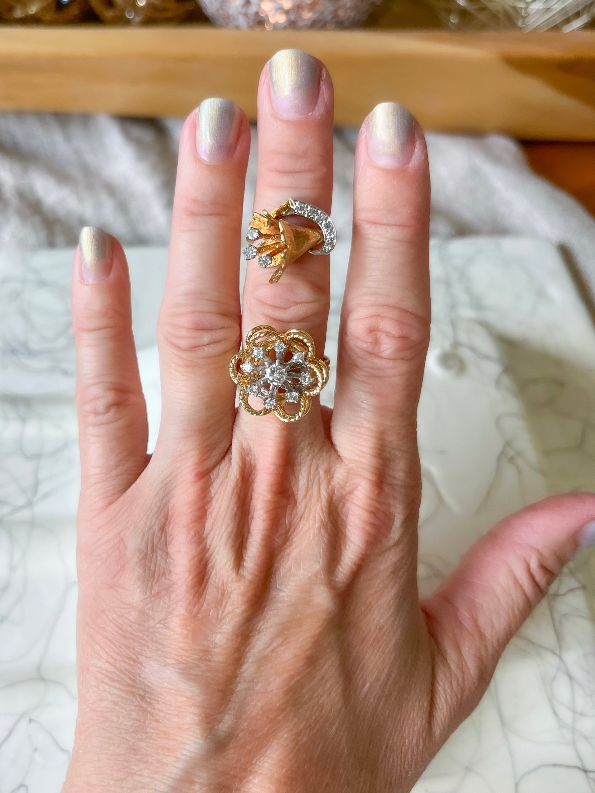 Vintage Flower Natural Diamond Rings in 14k Yellow Gold