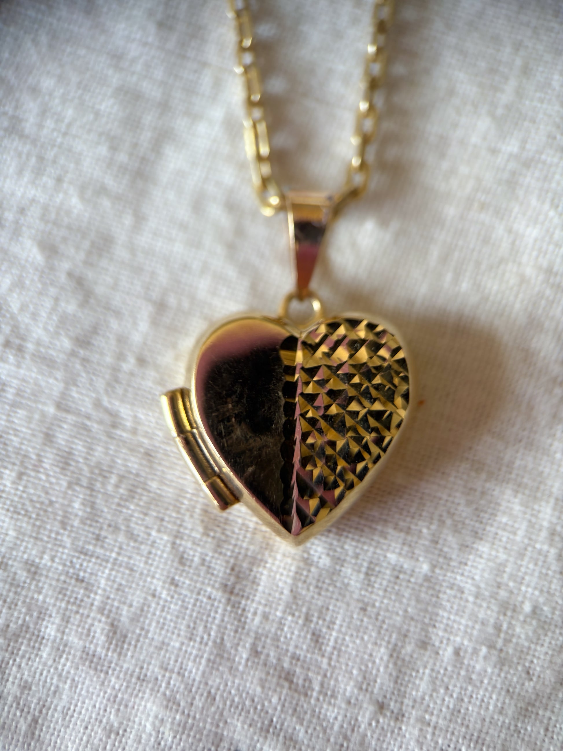 Very sweet, 10k yellow gold heart locket. Chain not included.