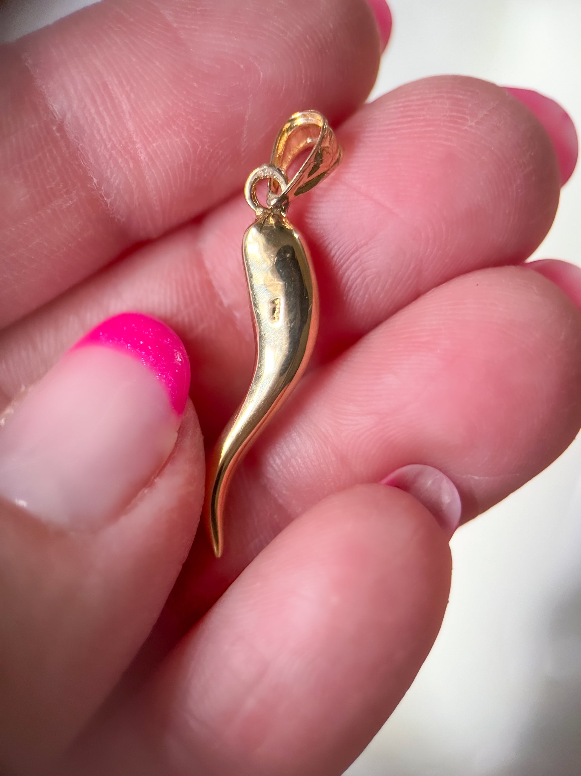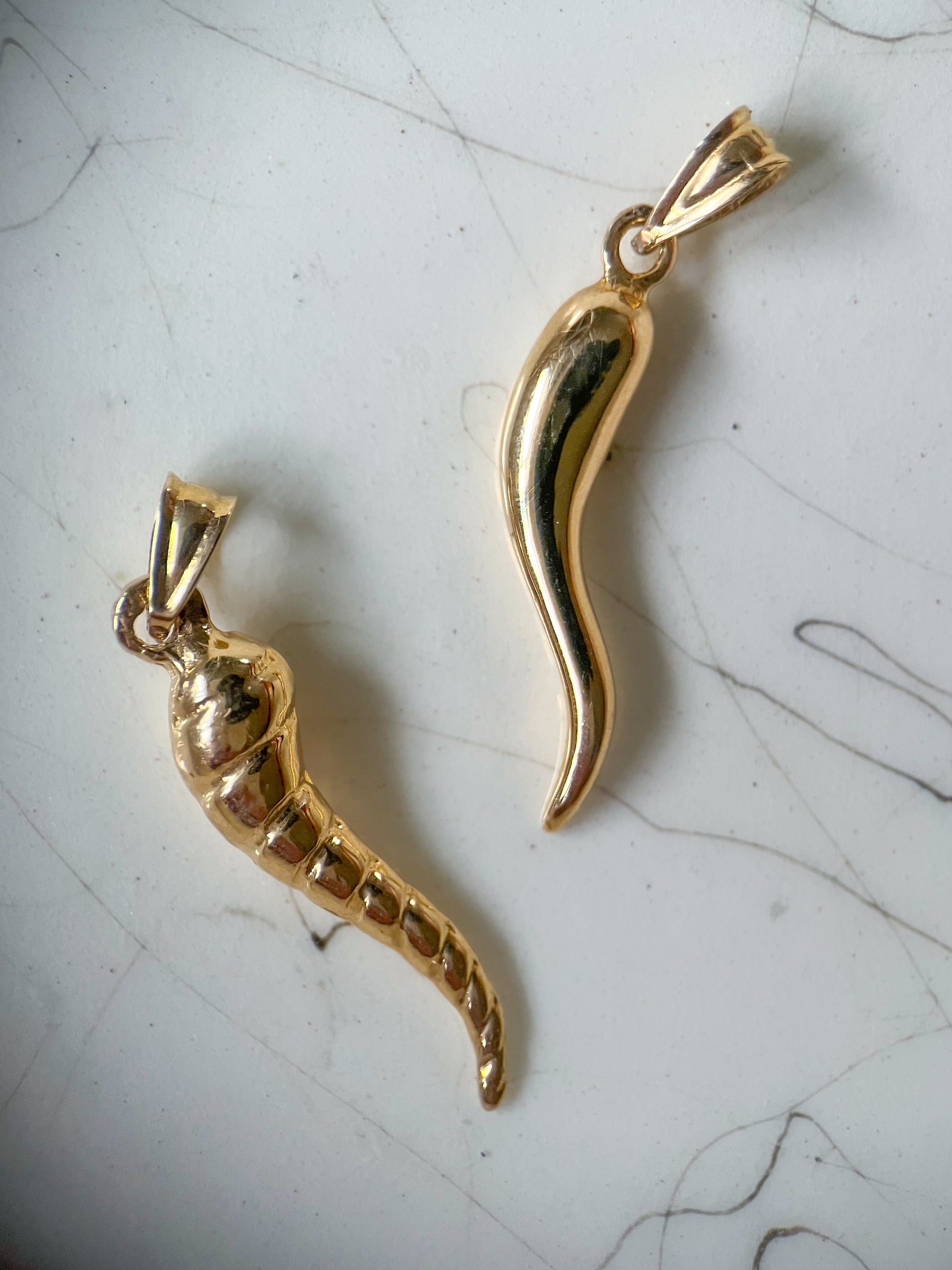 Two vintage italian horn charms! Both 14k yellow gold. Chains not included.