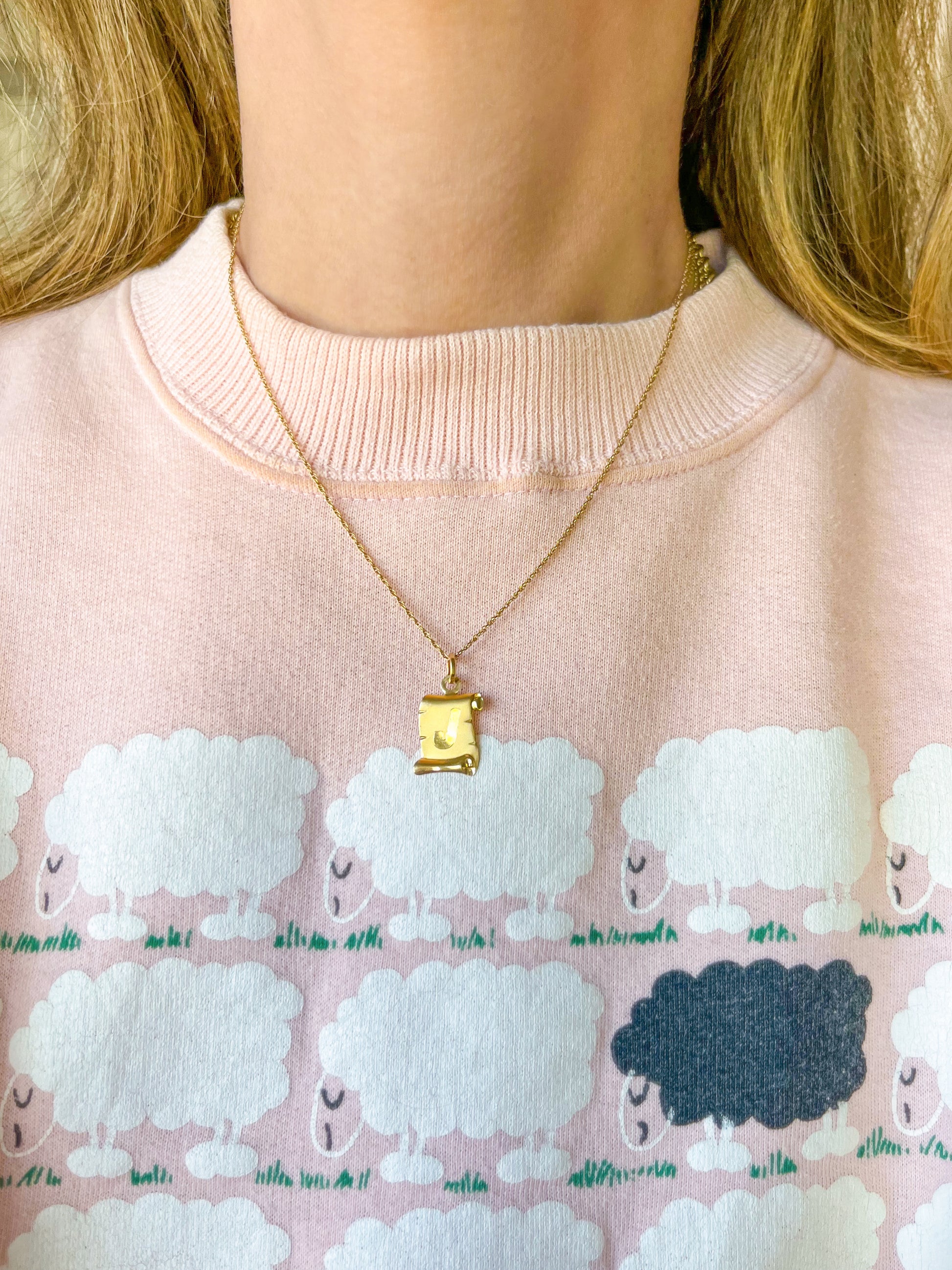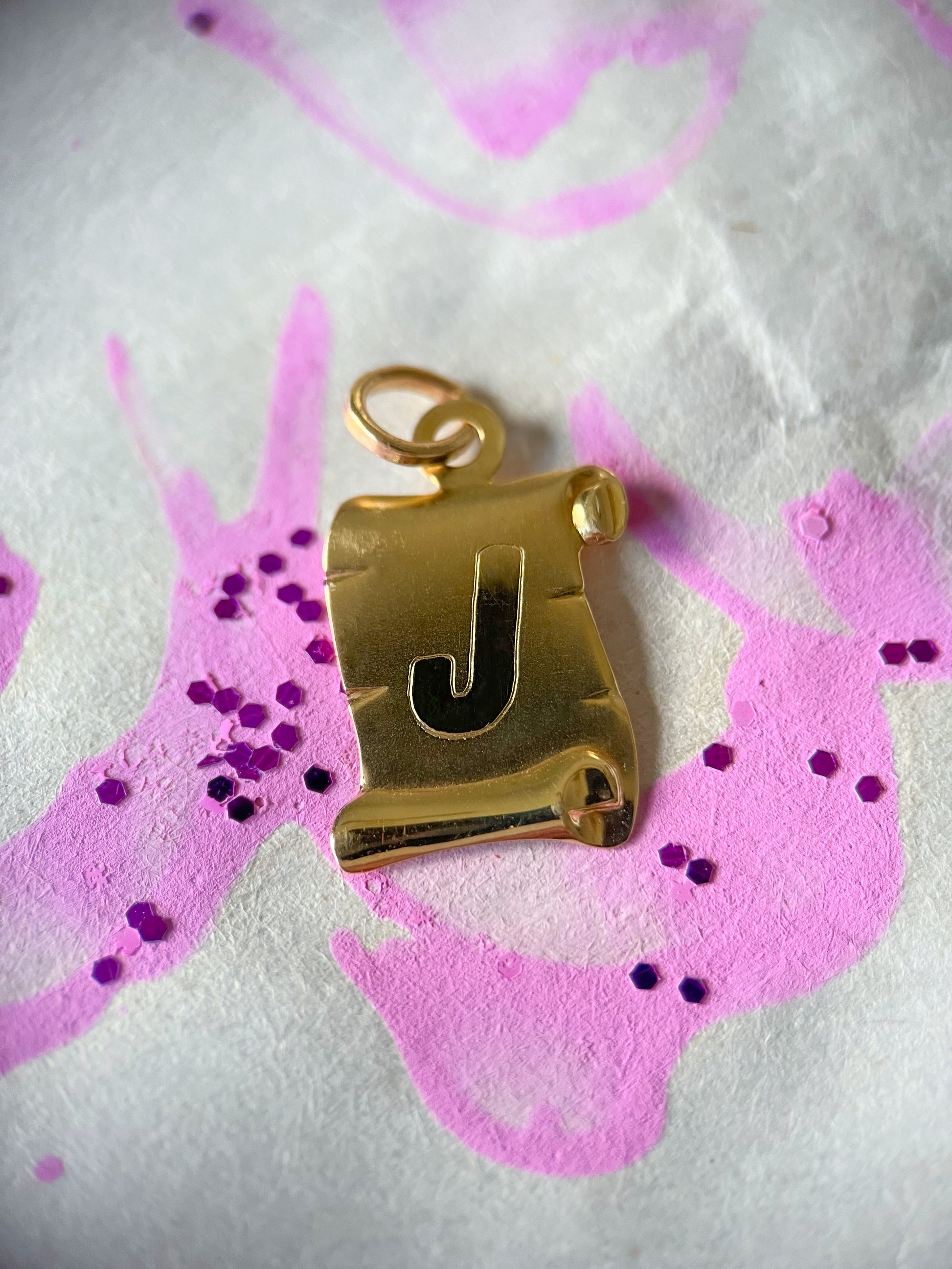 Vintage "J" on a Scroll 14k Yellow Gold Initial Charms