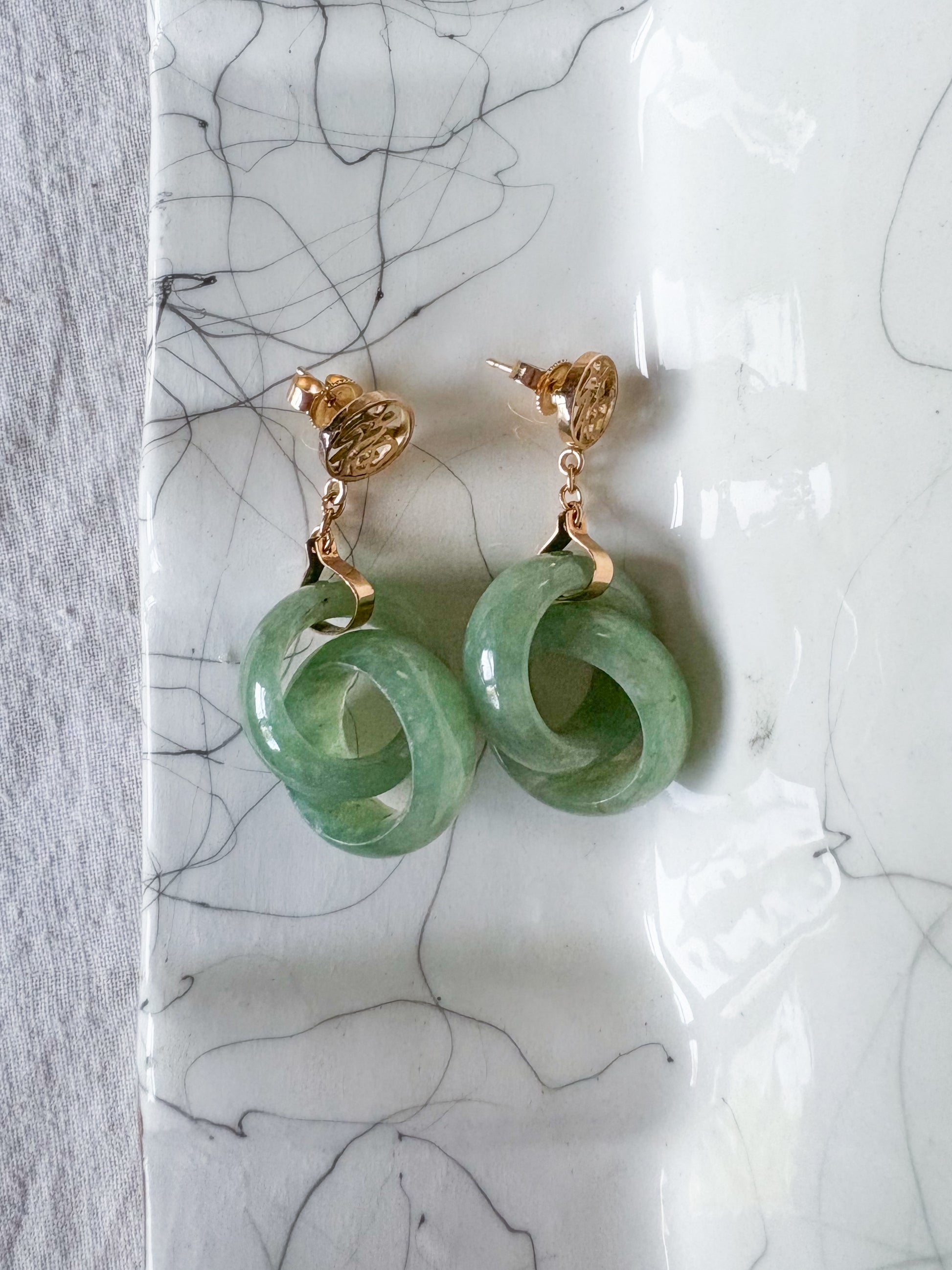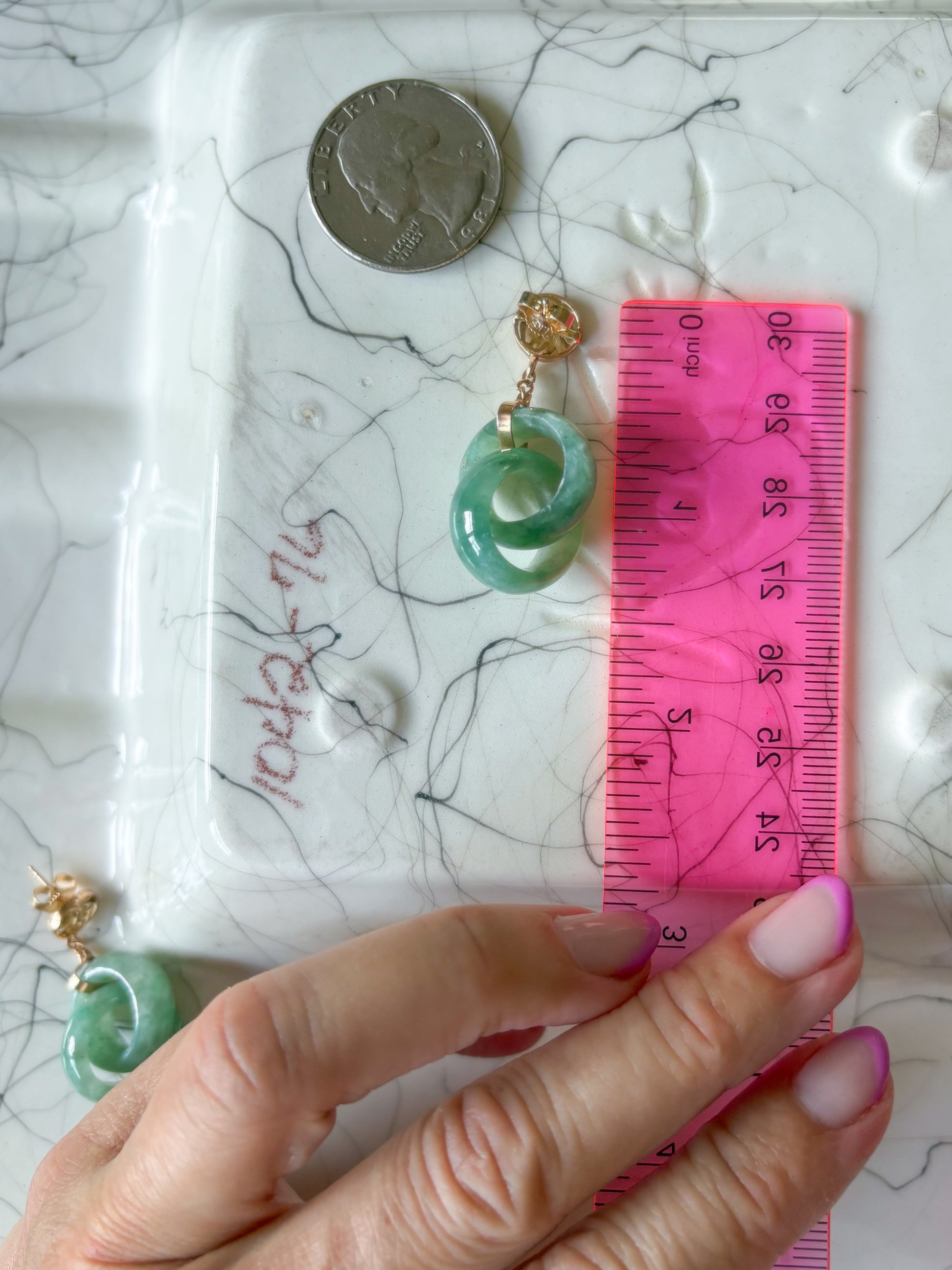 I have never seen earrings like this! These vintage, 14k yellow gold and jade drop earrings are really beautiful!