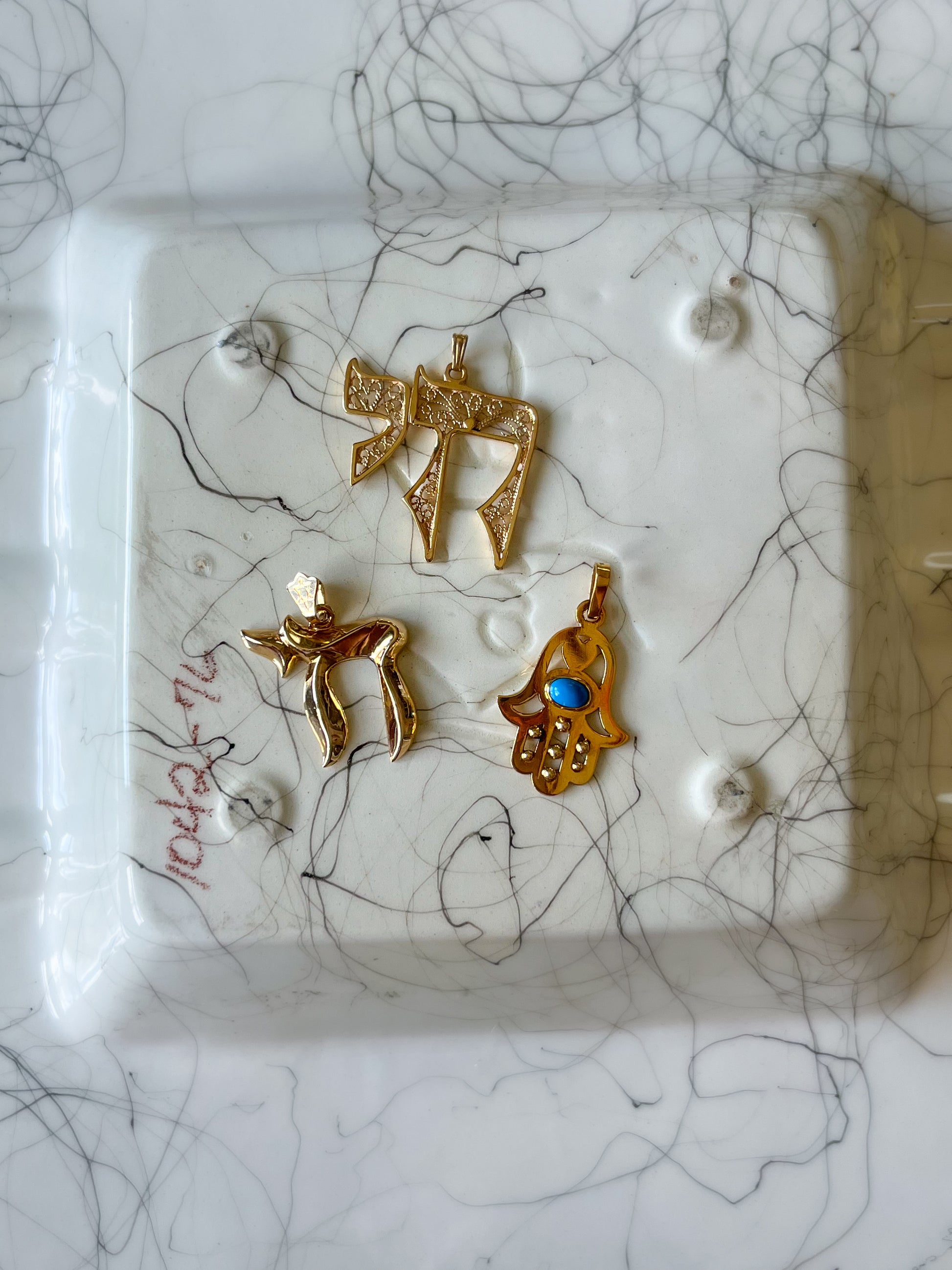 Vintage Large Filigree Chai 14k Yellow Gold Charm