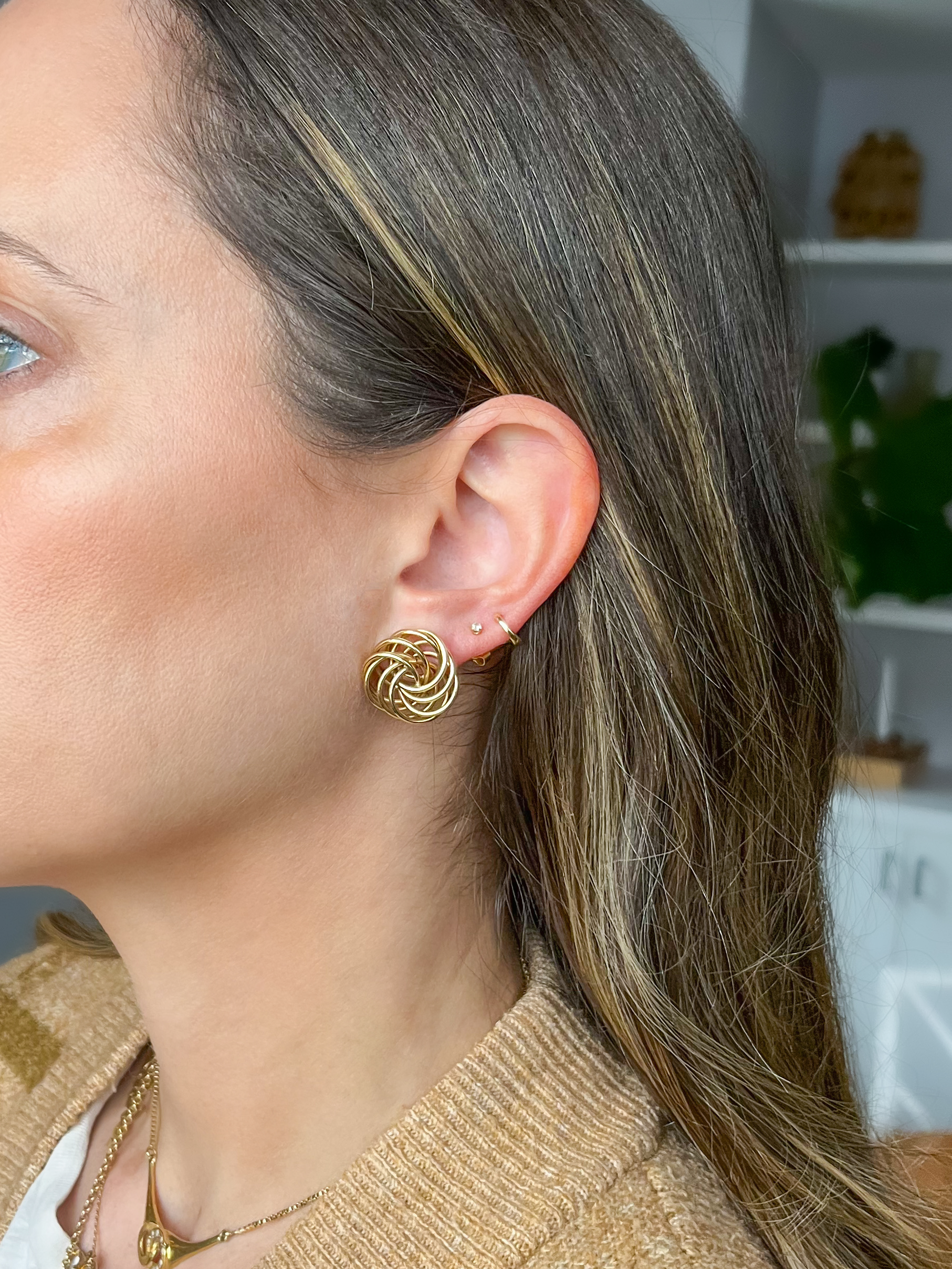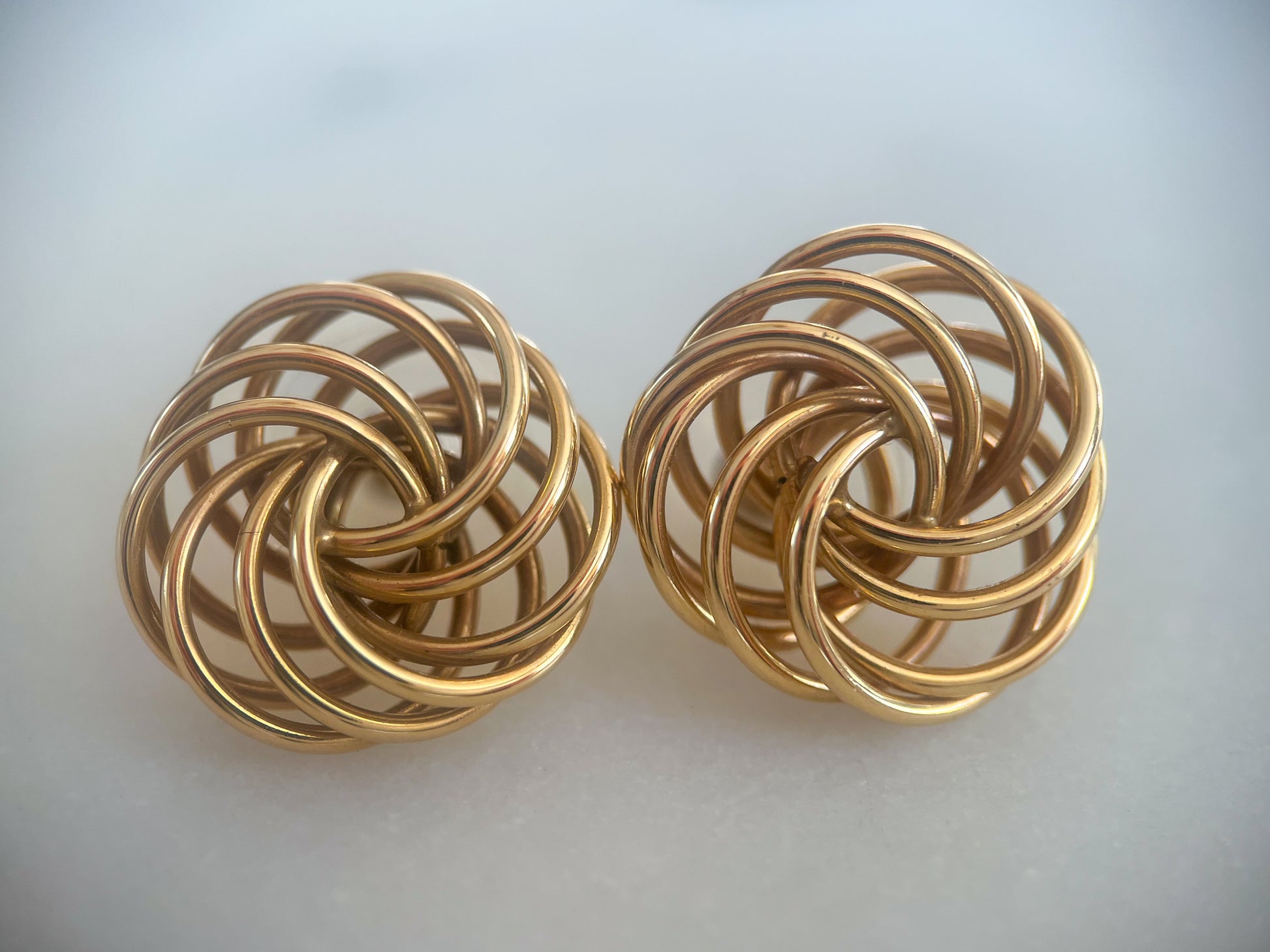 Vintage Large Knot 14k Yellow Gold Stud Earrings, circa 1980s