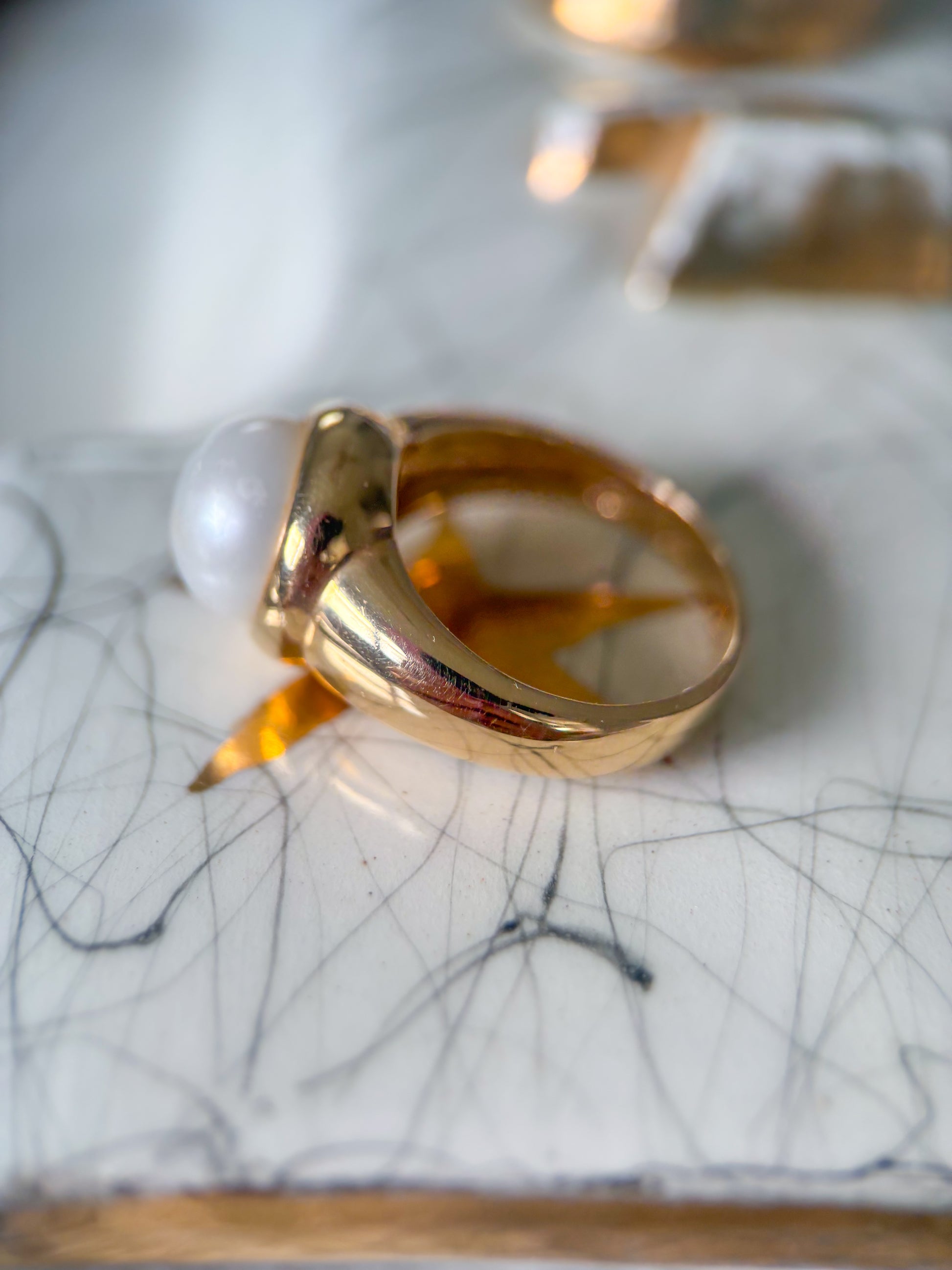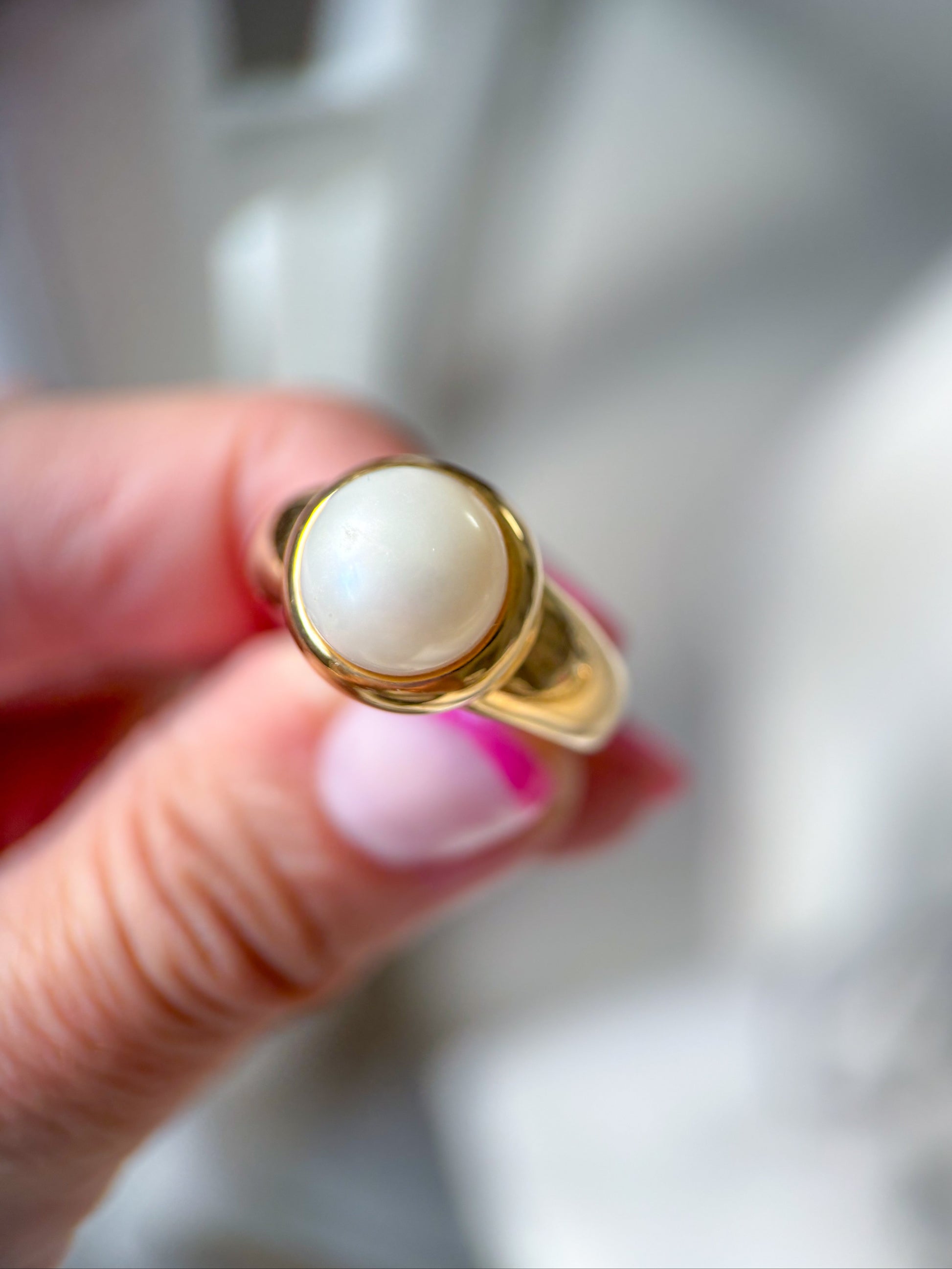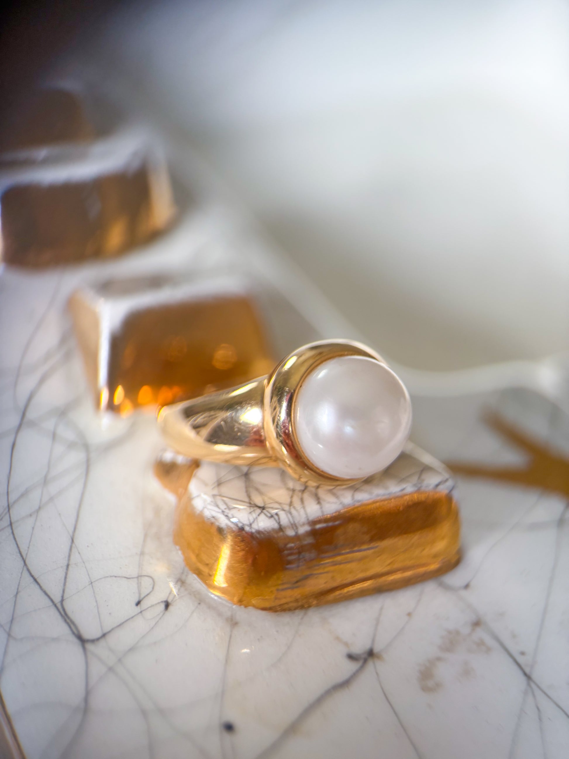 Vintage Large Natural Pearl 14k Yellow Gold Ring
