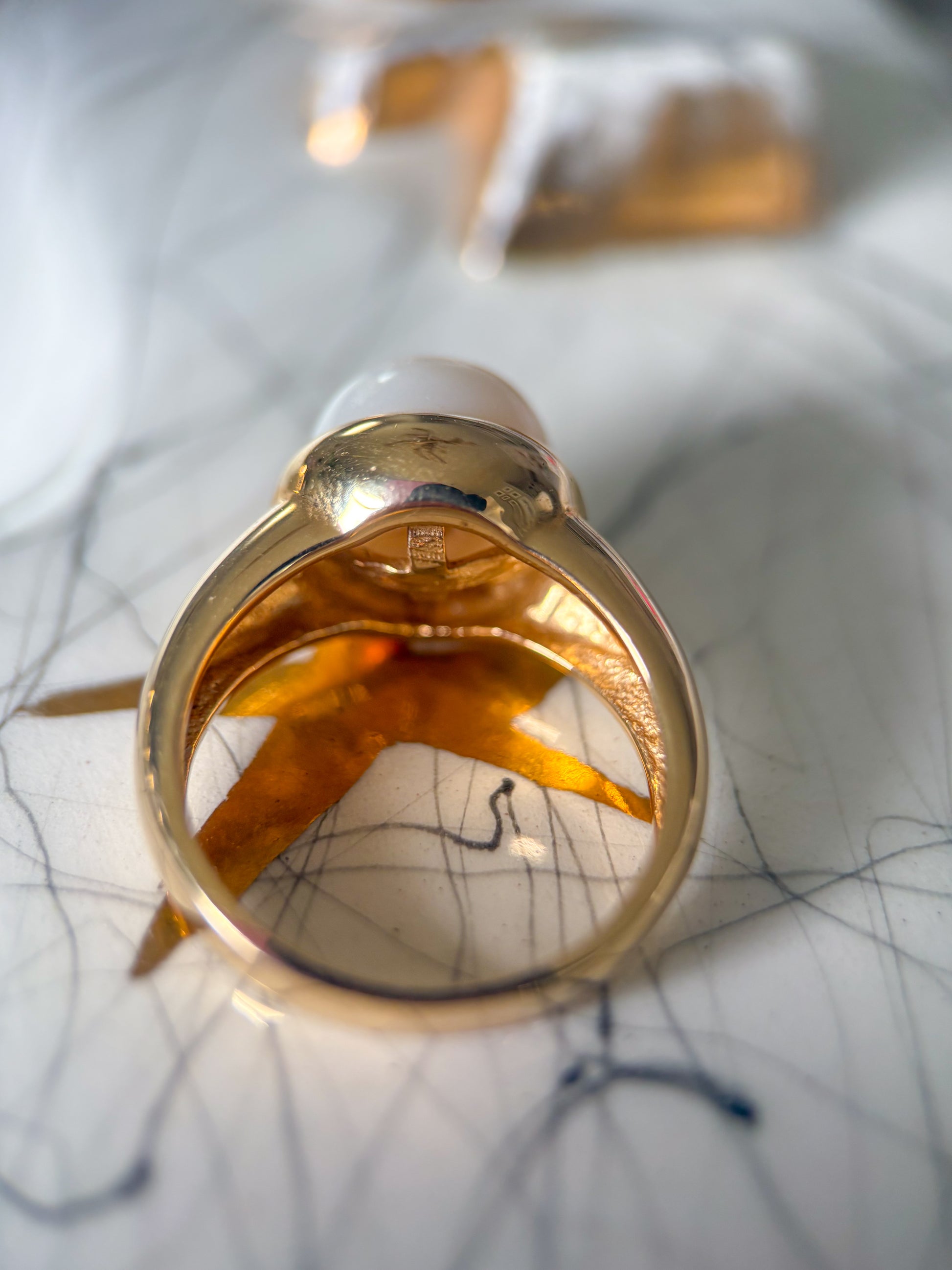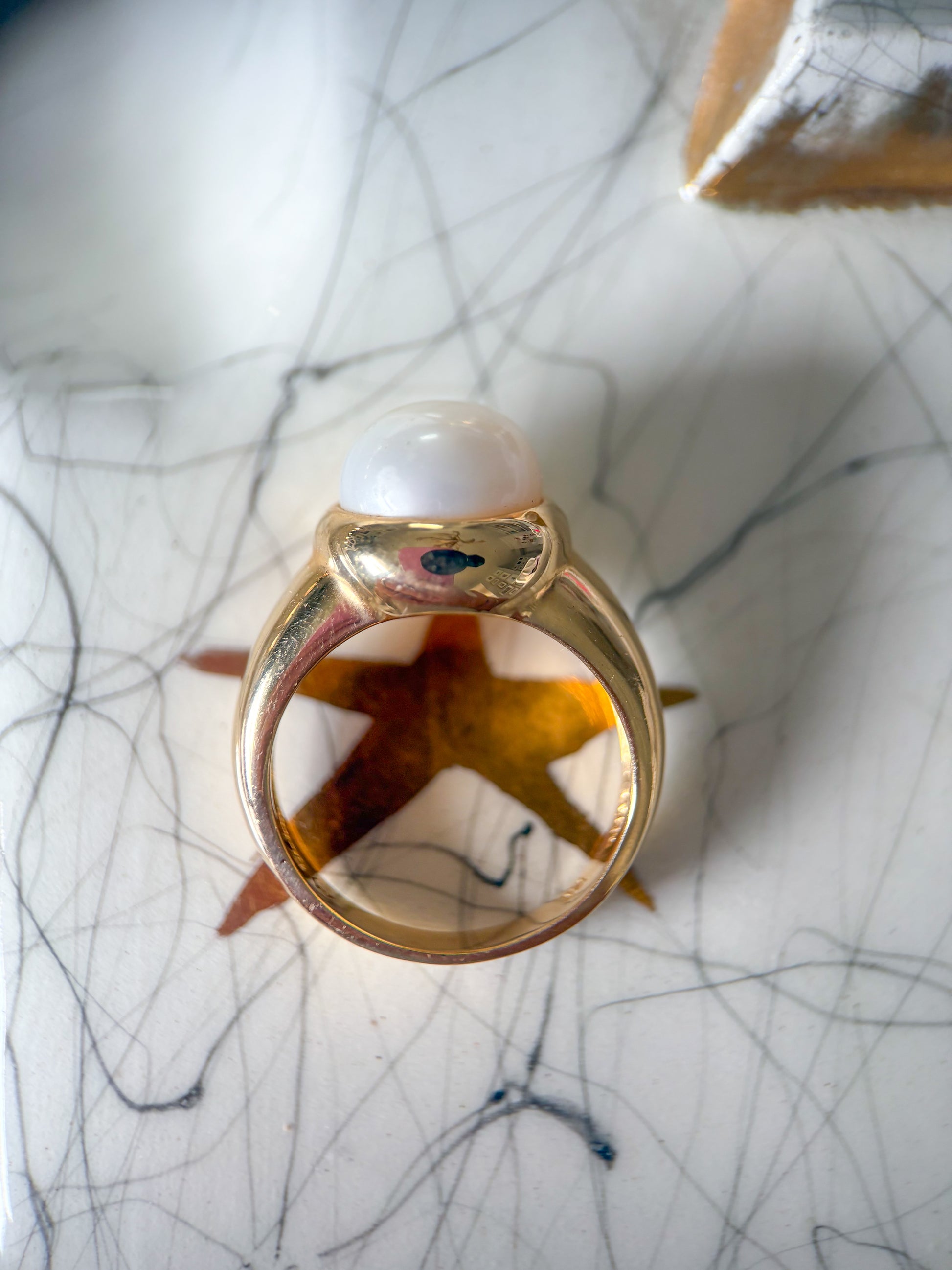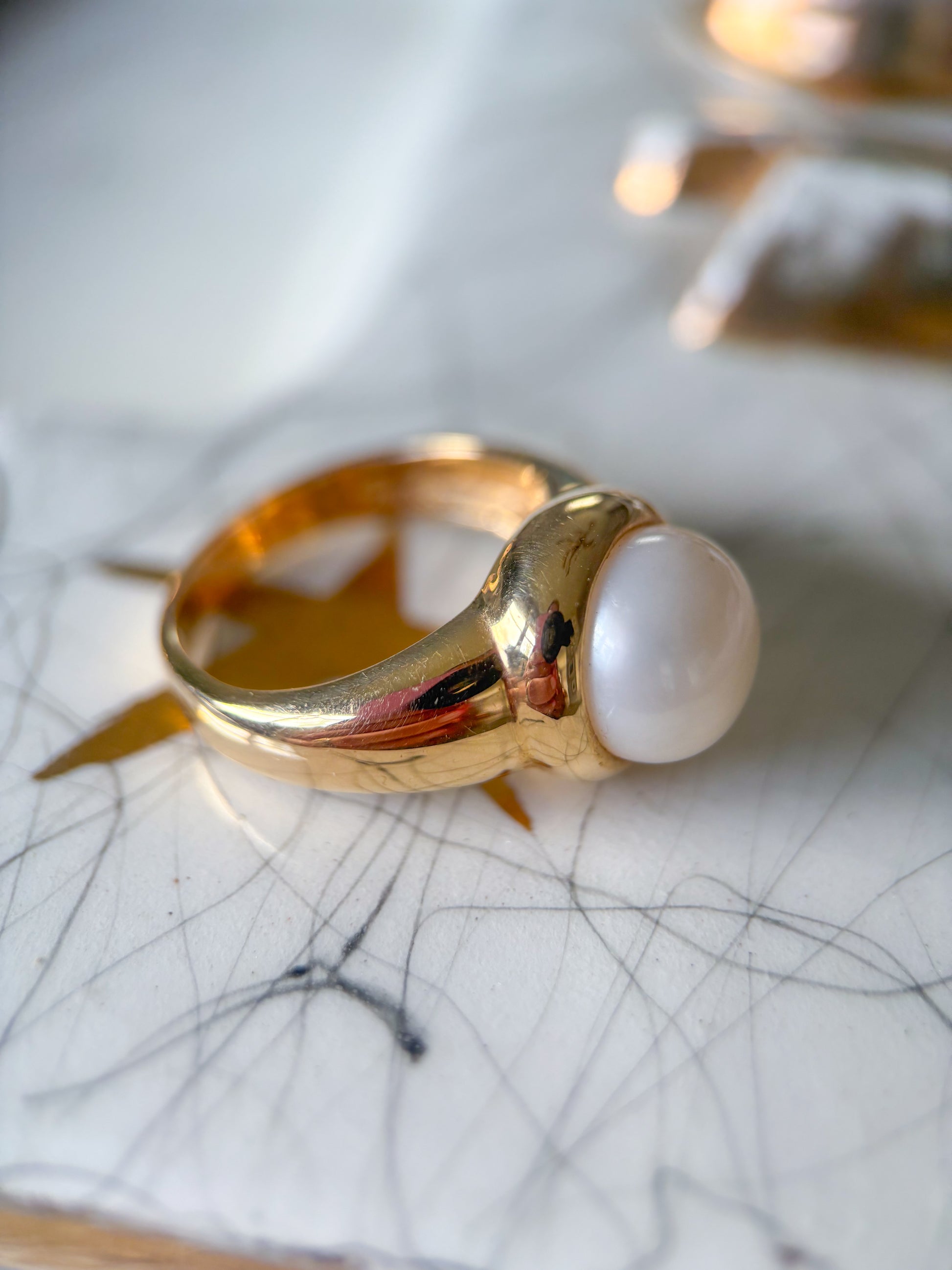 Vintage Large Natural Pearl 14k Yellow Gold Ring