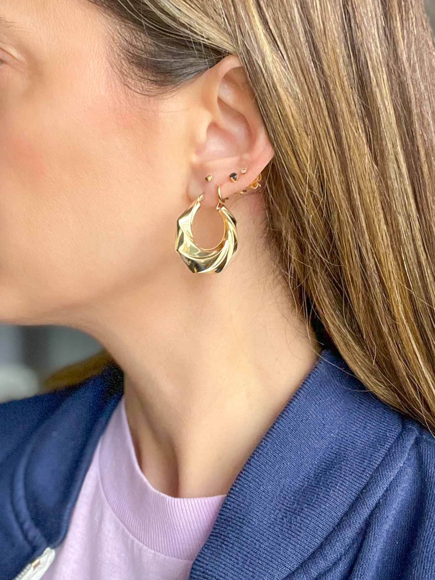 Vintage Large Twist 10k Yellow Gold Hoop Earrings