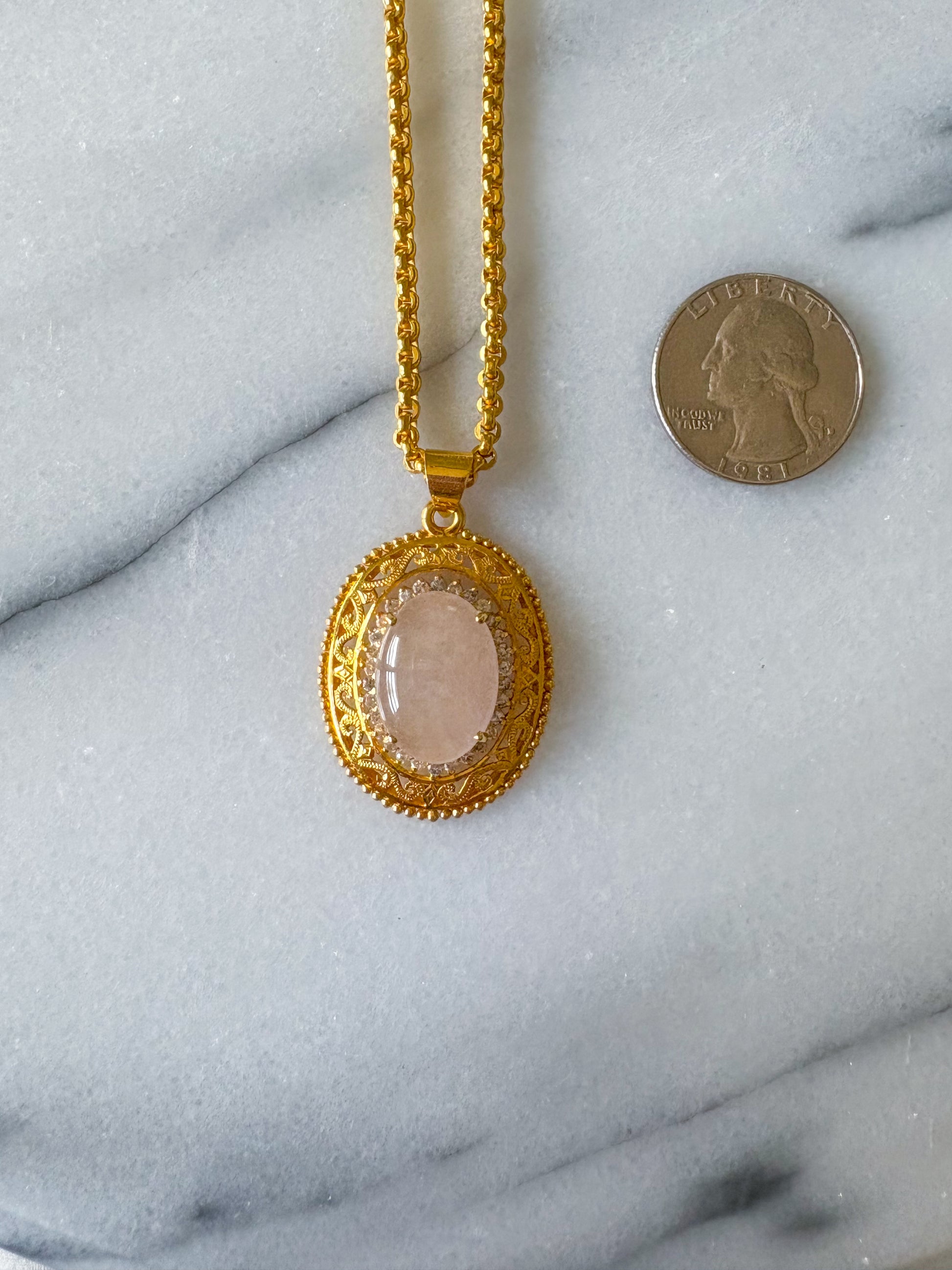 Stunning, large, vintage charm made with a large oval white jade and natural diamonds. This charm is truly stunning. Chain not included.