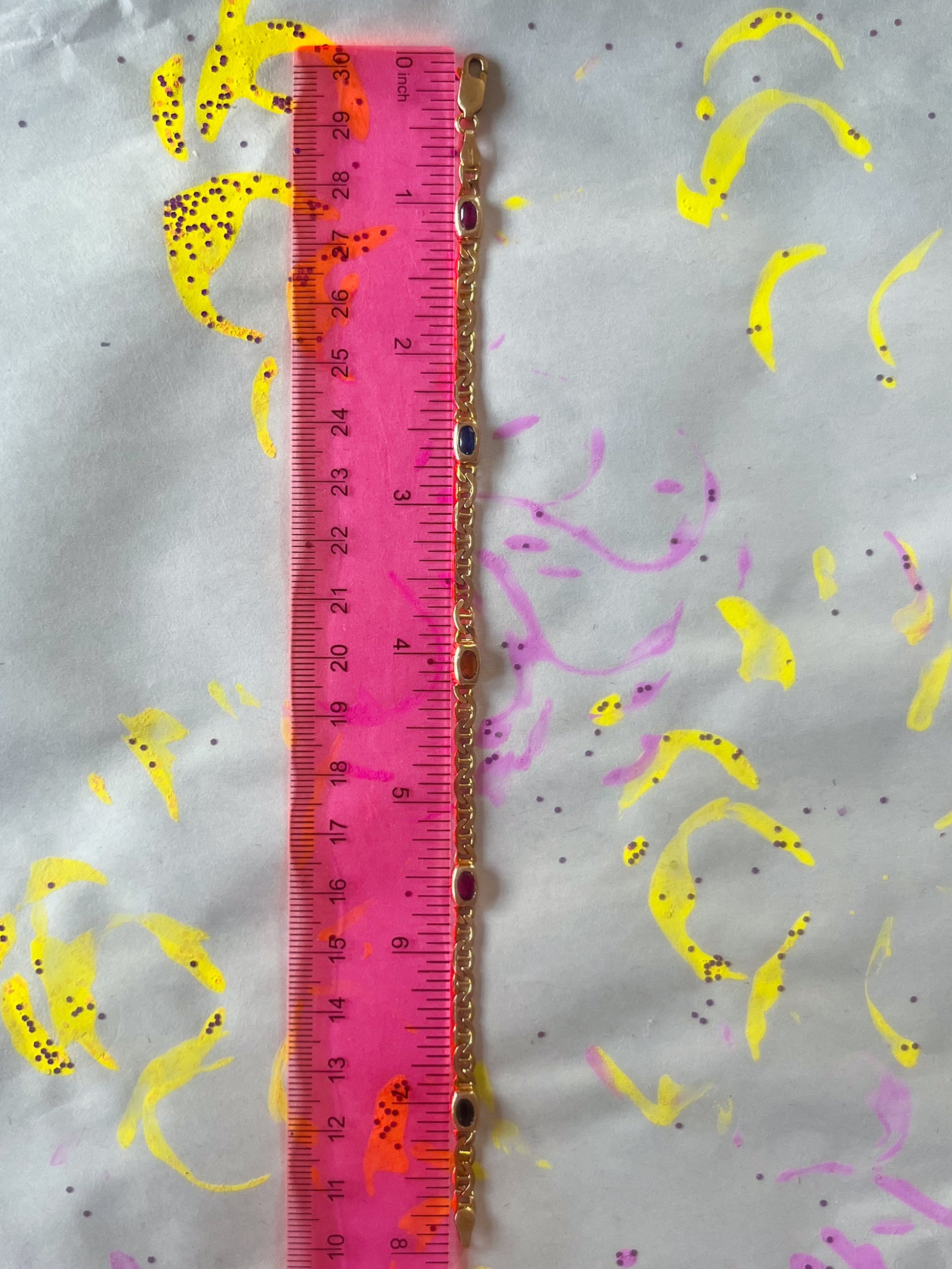 Vintage Multi Gemstone (Synthetic) 14k Yellow Gold Mariner Chain 8 Inch Bracelet