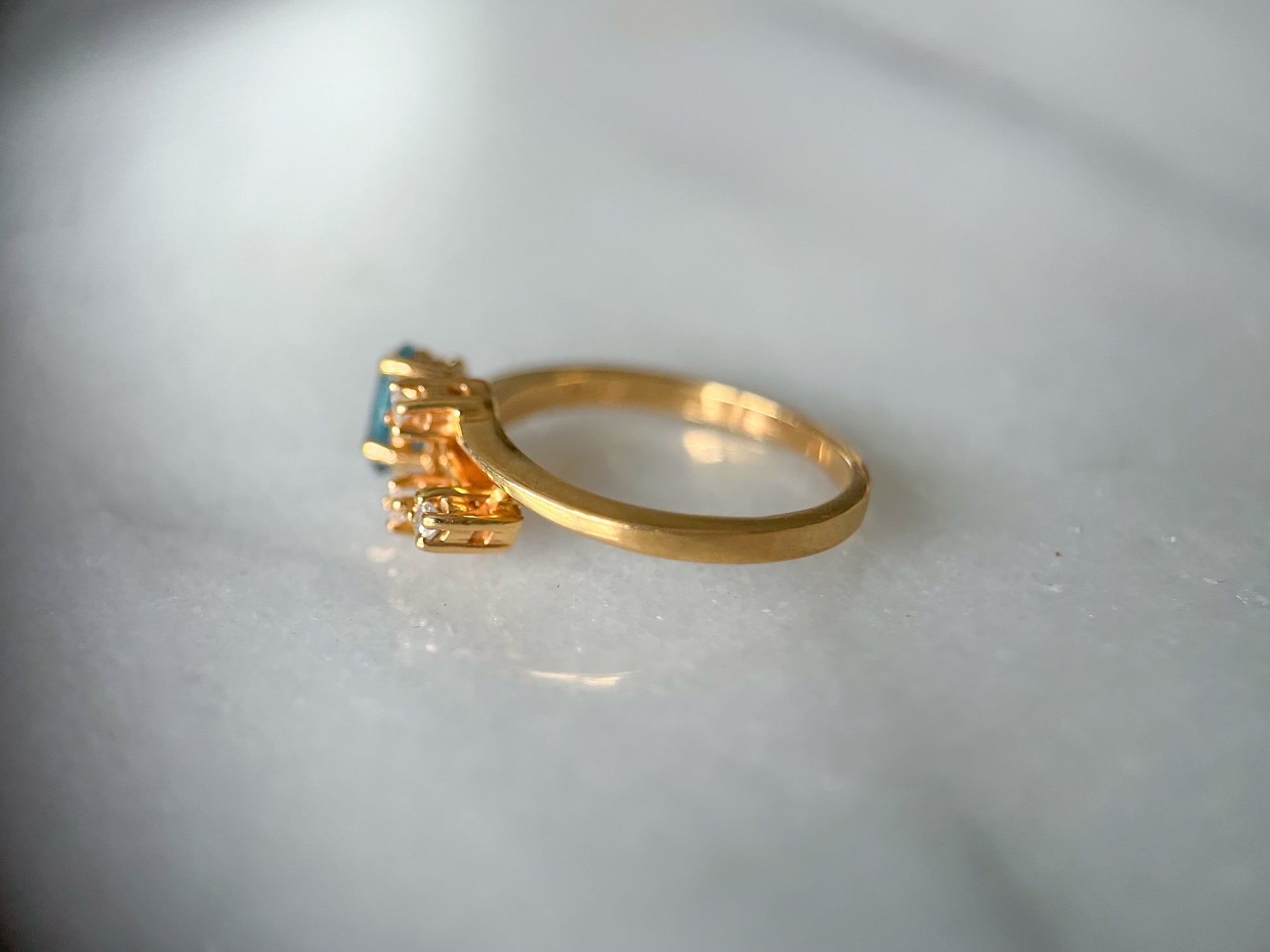 Really sweet, vintage, 14k yellow gold ring featuring an oval aquamarine and 3 natural round diamonds.
