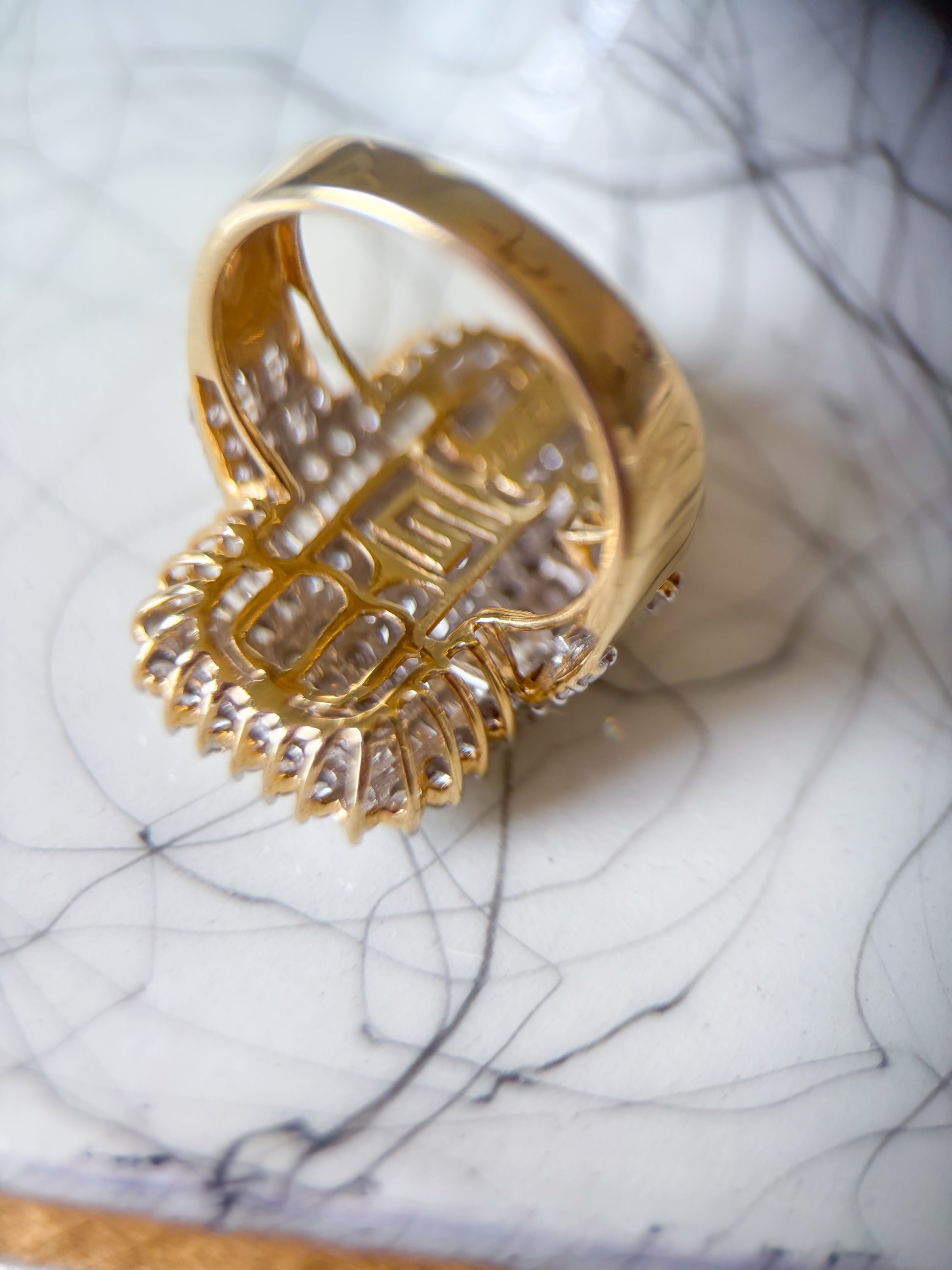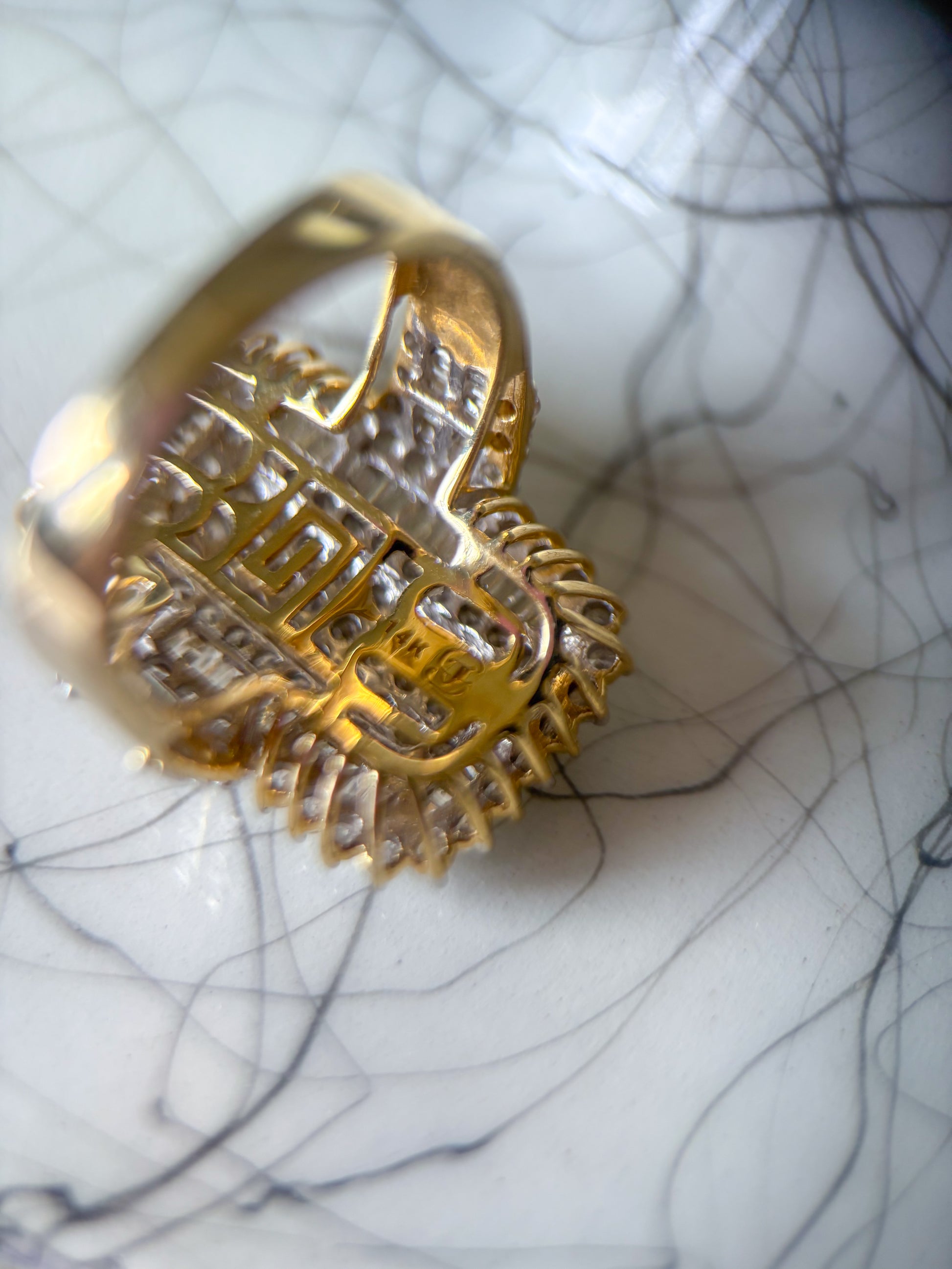 Vintage Natural Diamond 14k Yellow Gold Statement Ring
