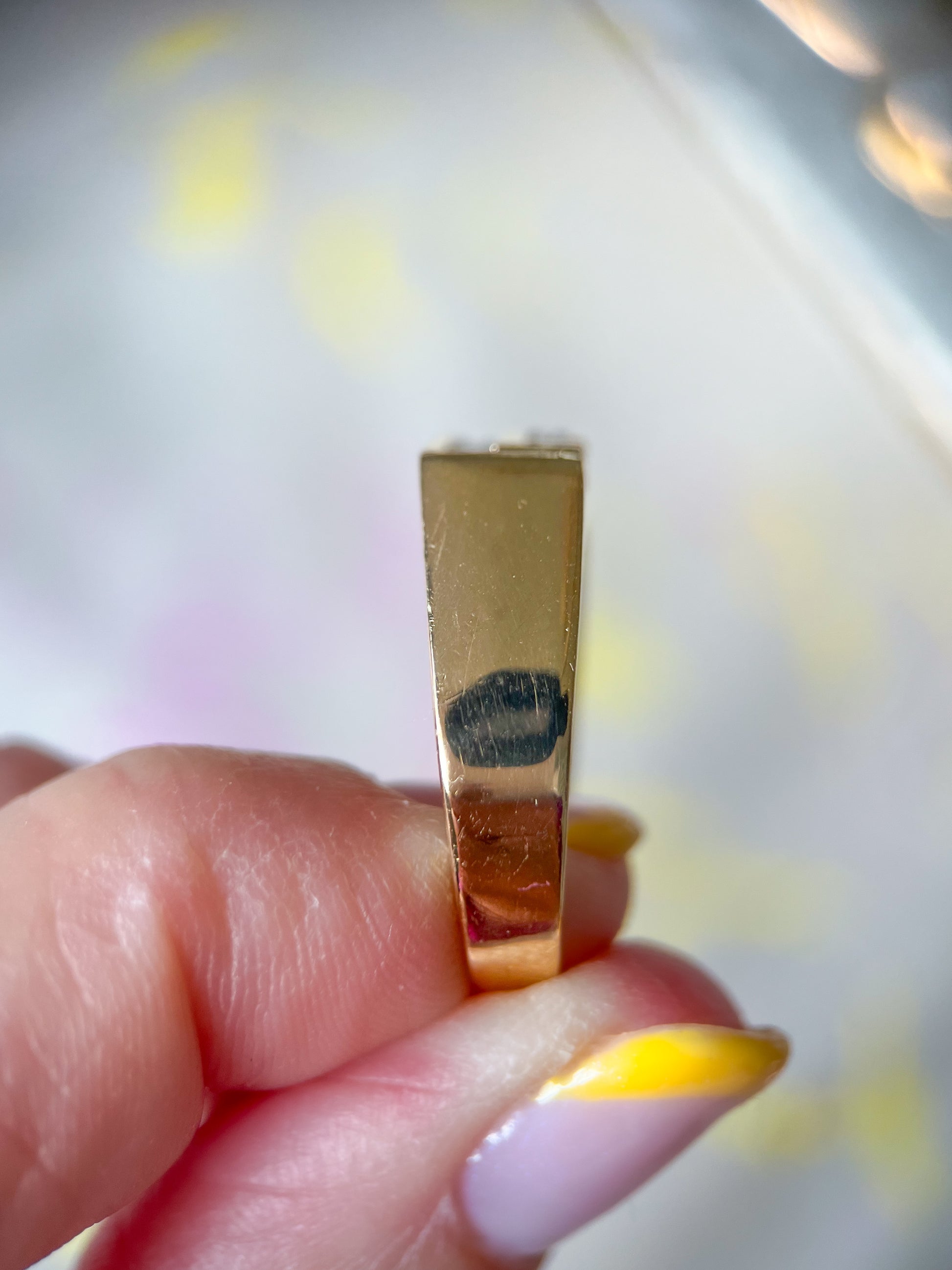 Super cool, 14k yellow gold vintage, diamond ring! Can be resized at your local jeweler.