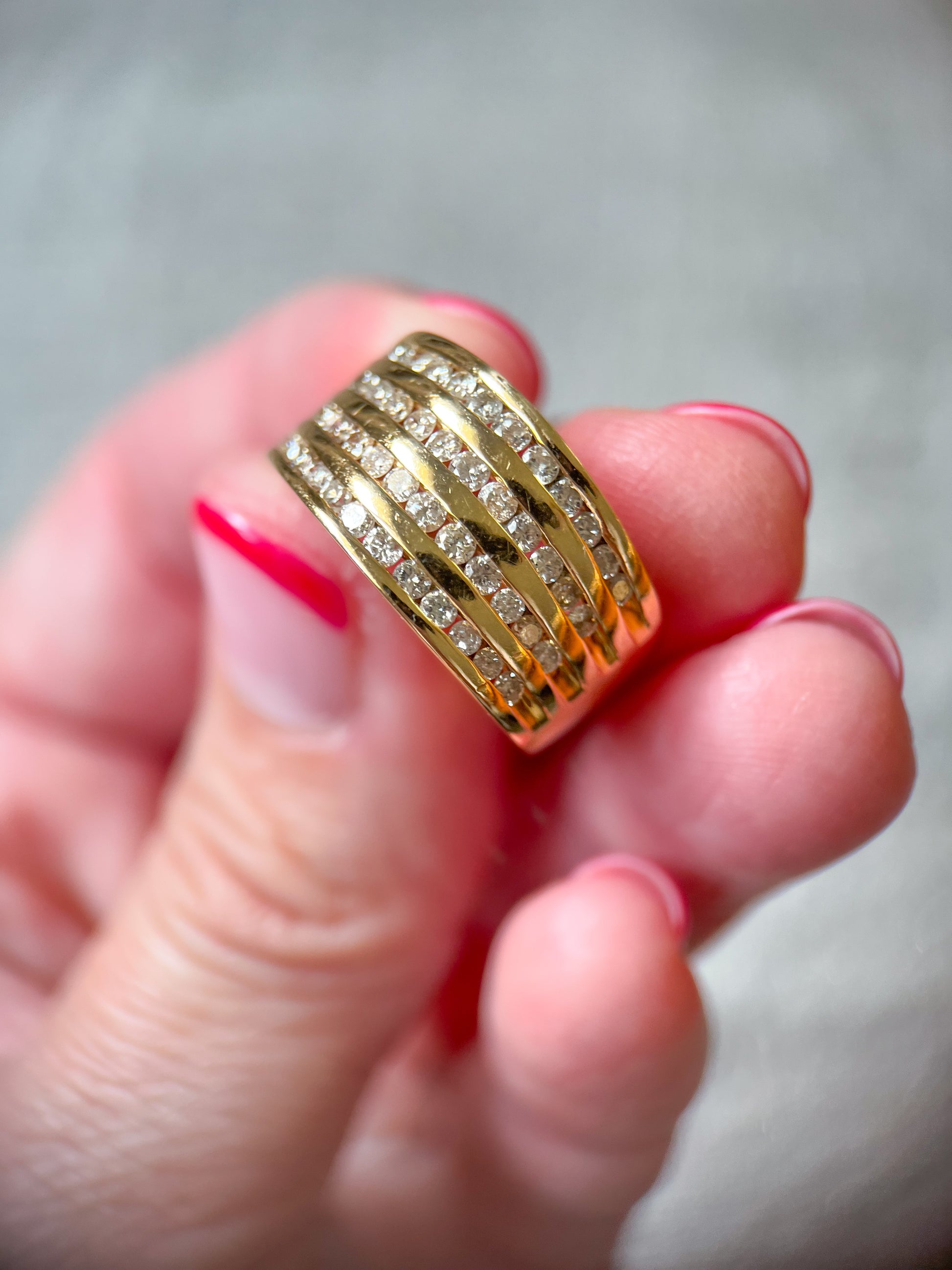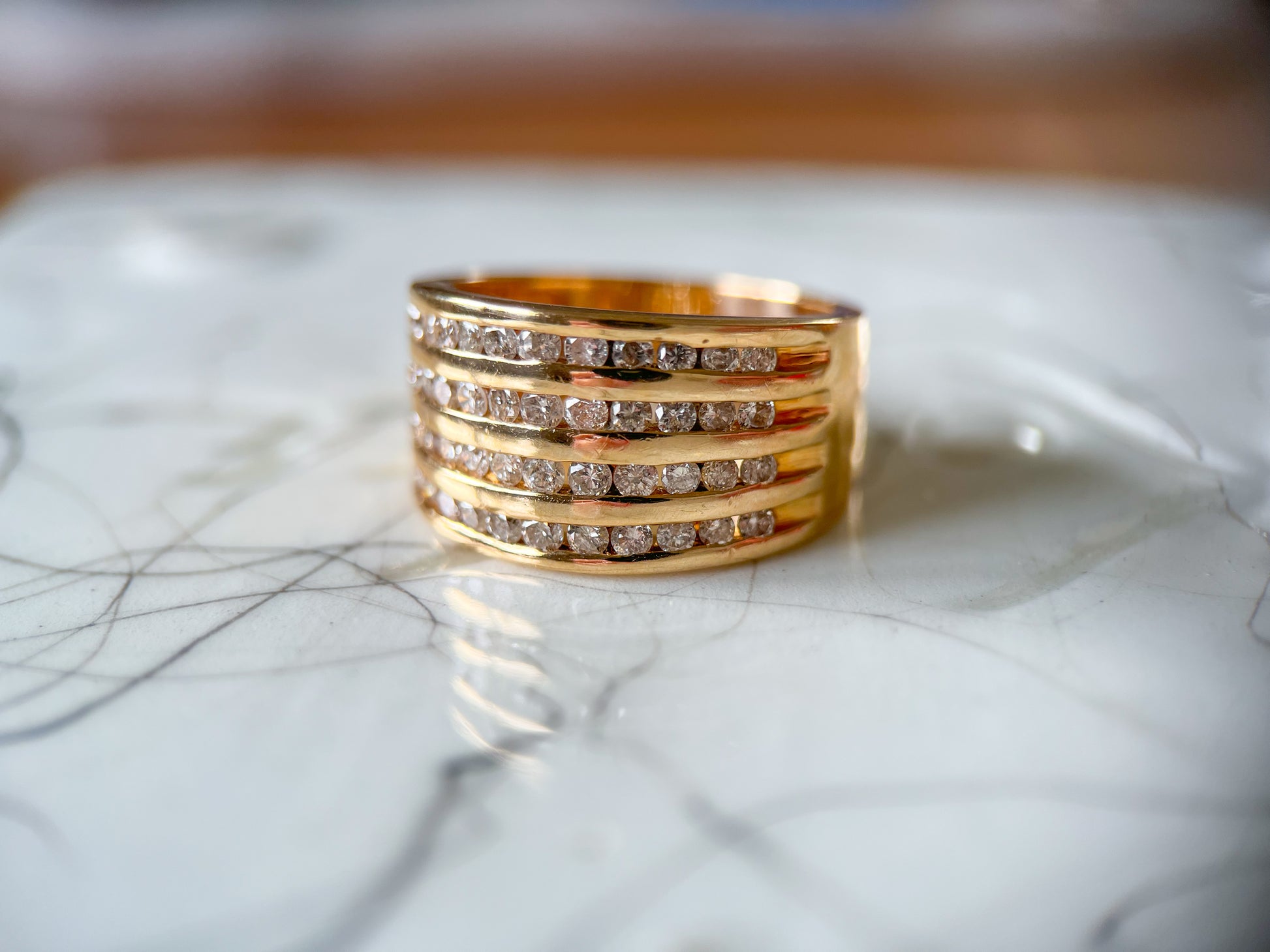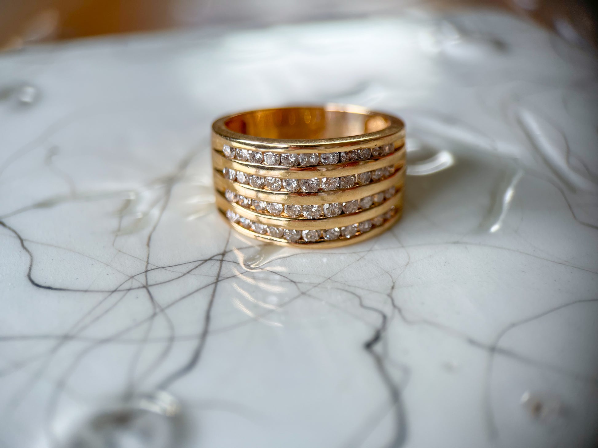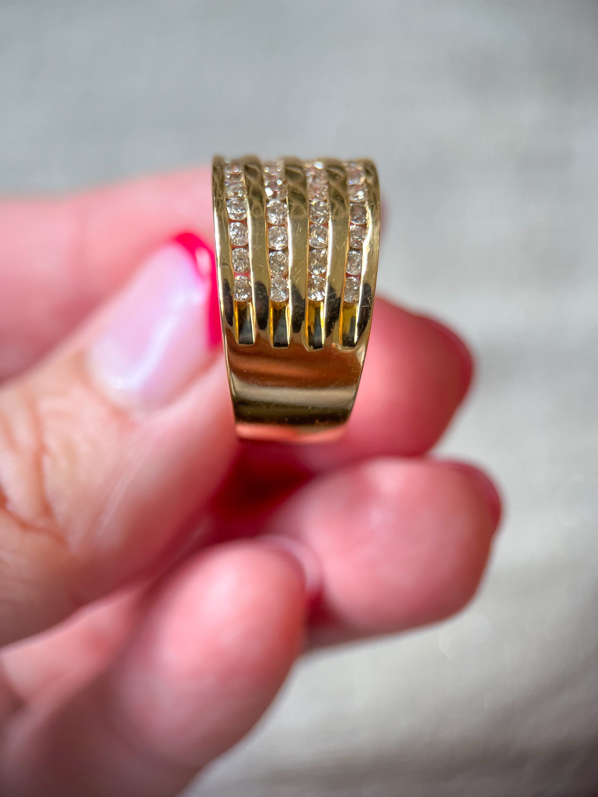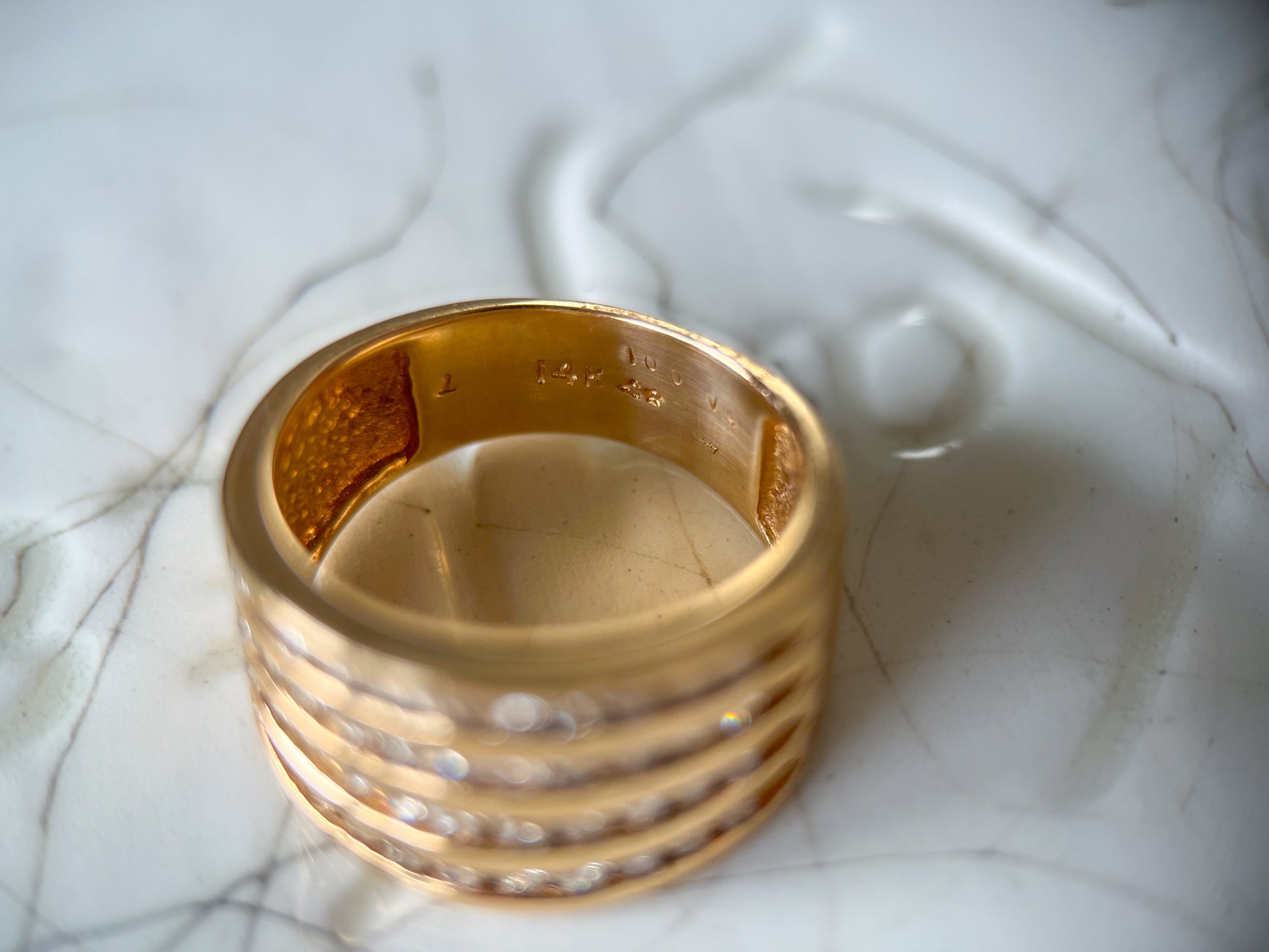 Vintage Natural Diamond 14k Yellow Gold Thick Ring