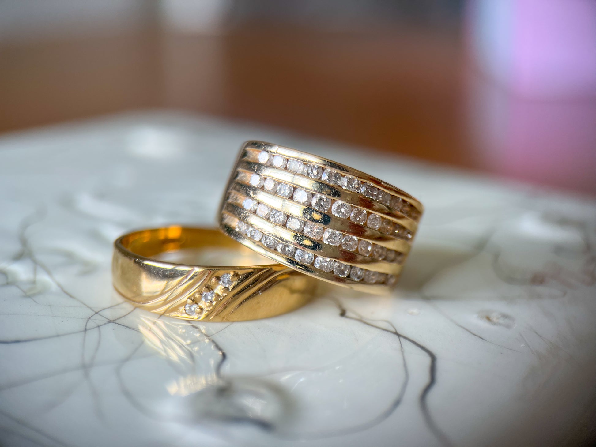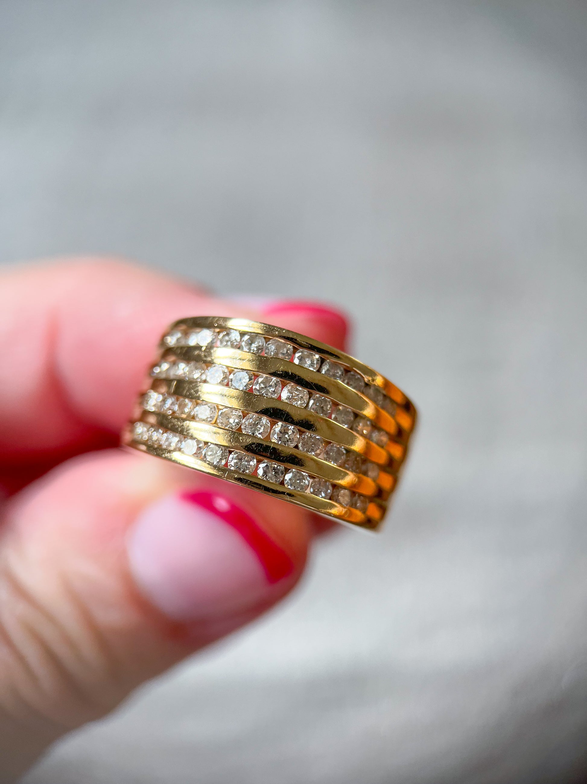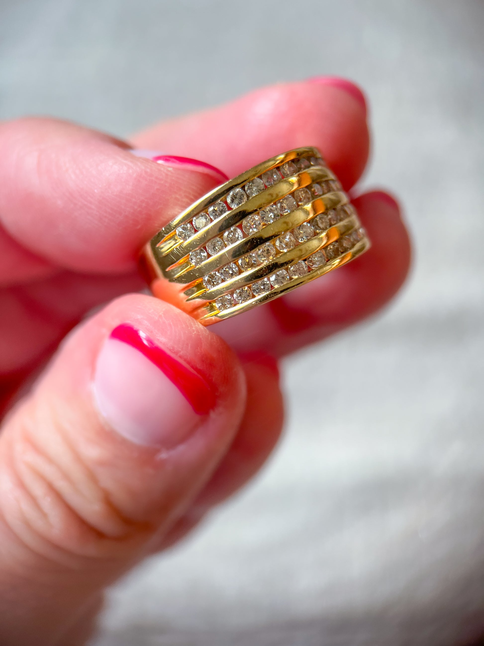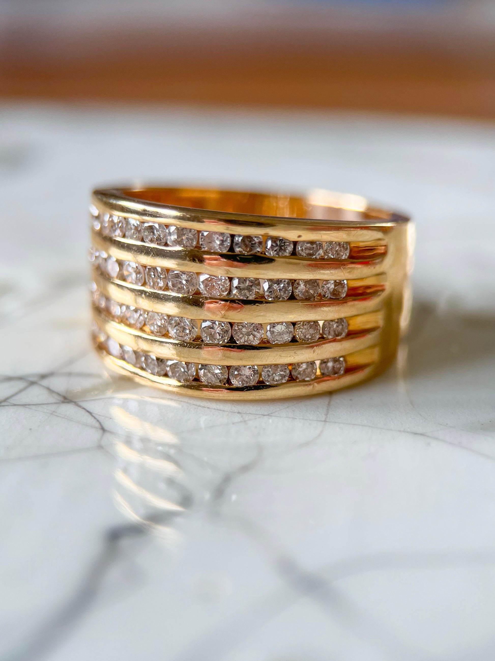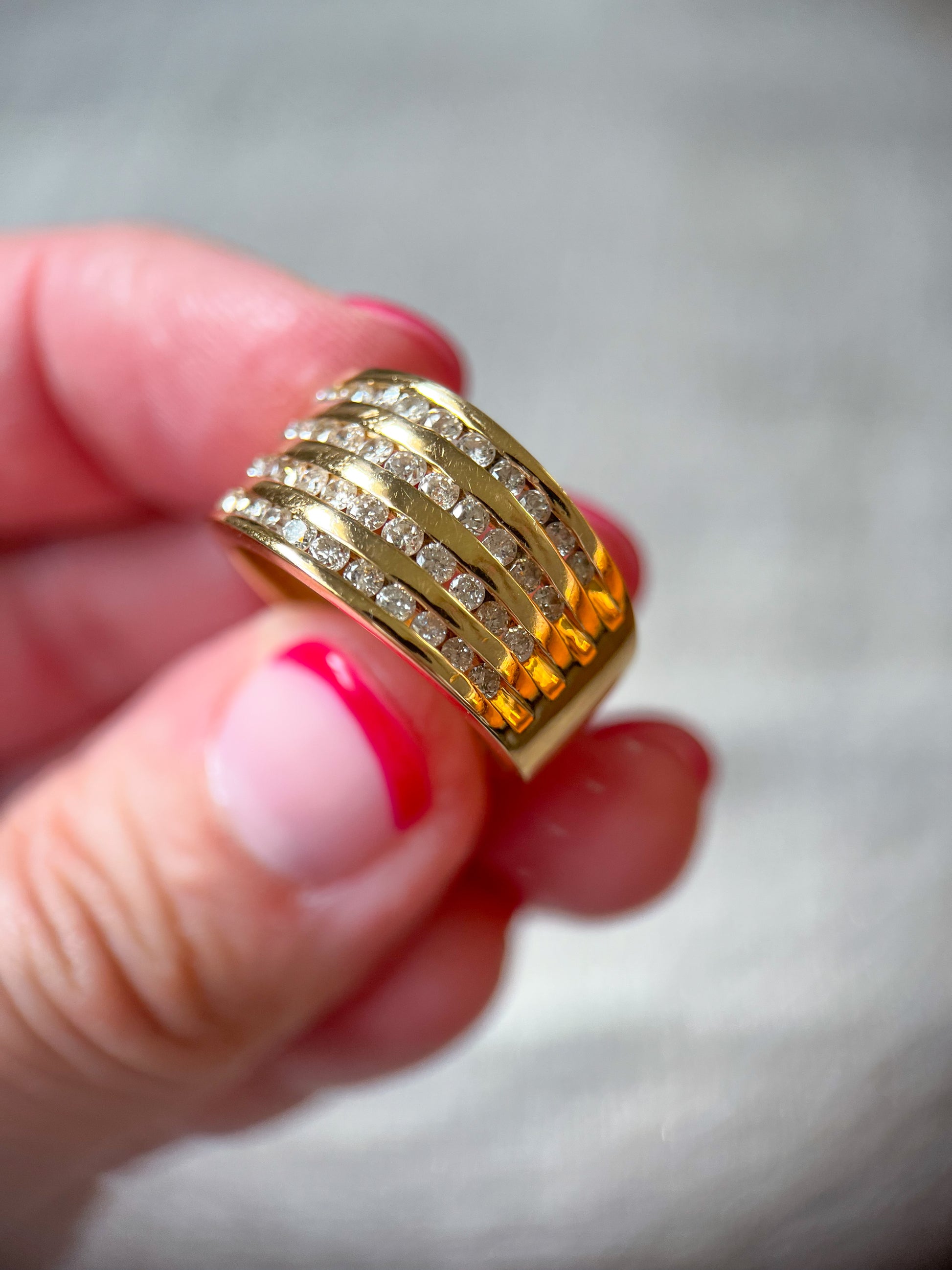 Vintage Natural Diamond 14k Yellow Gold Thick Ring